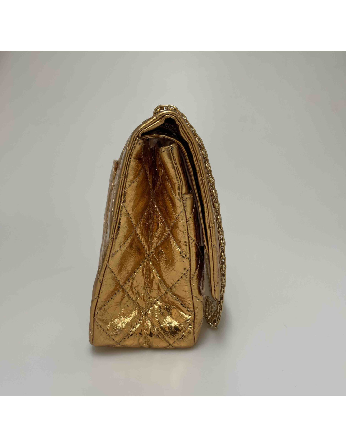 CHANEL Maxi 2.55 bag in gold quilted leather