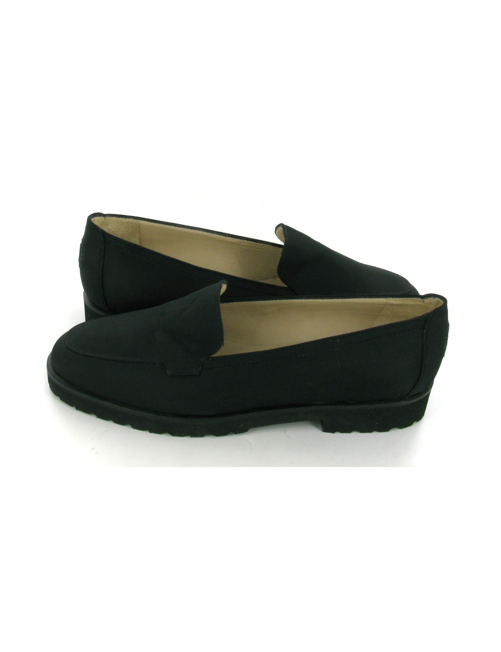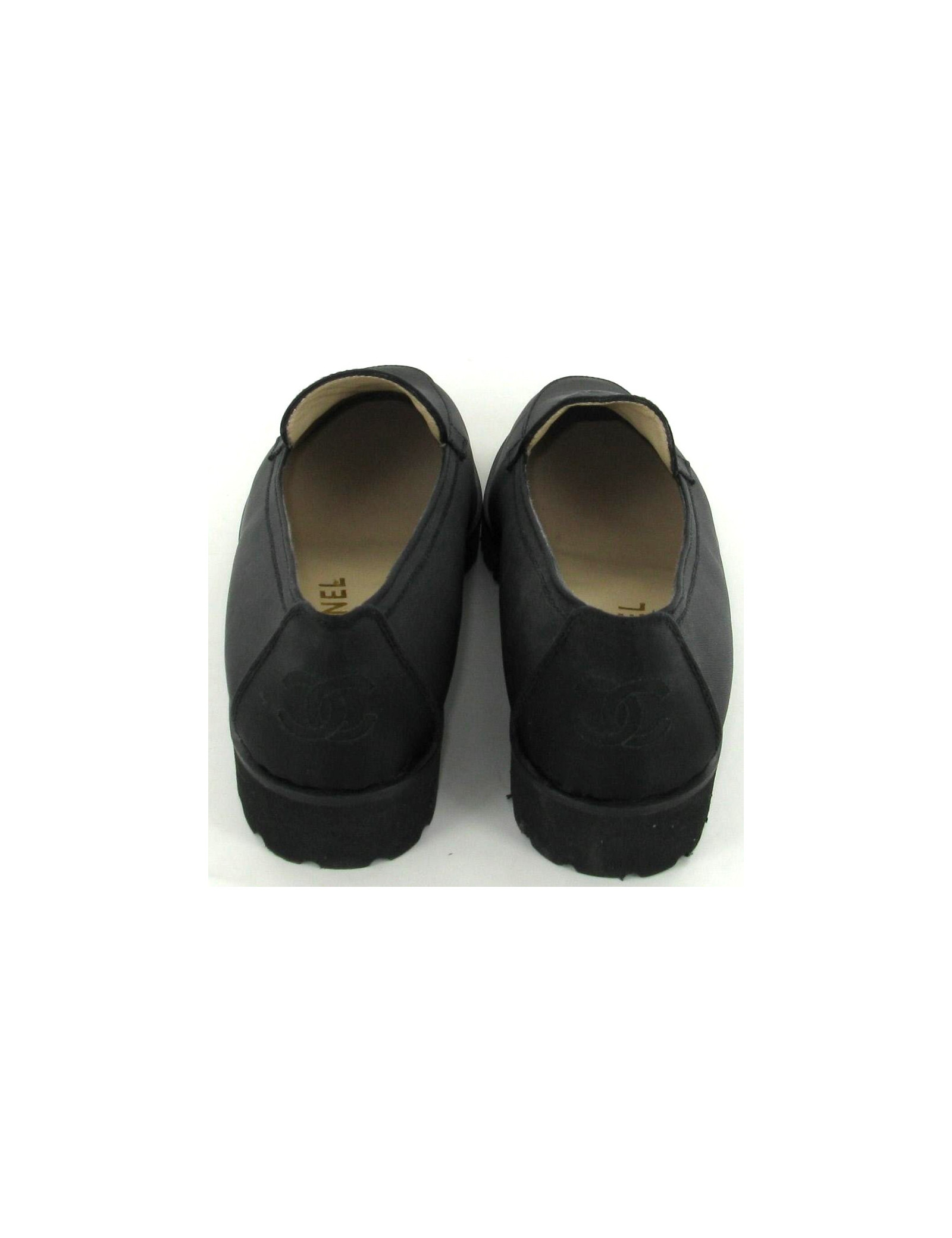 Moccasins CHANEL T 39.5 in black satin canvas.
