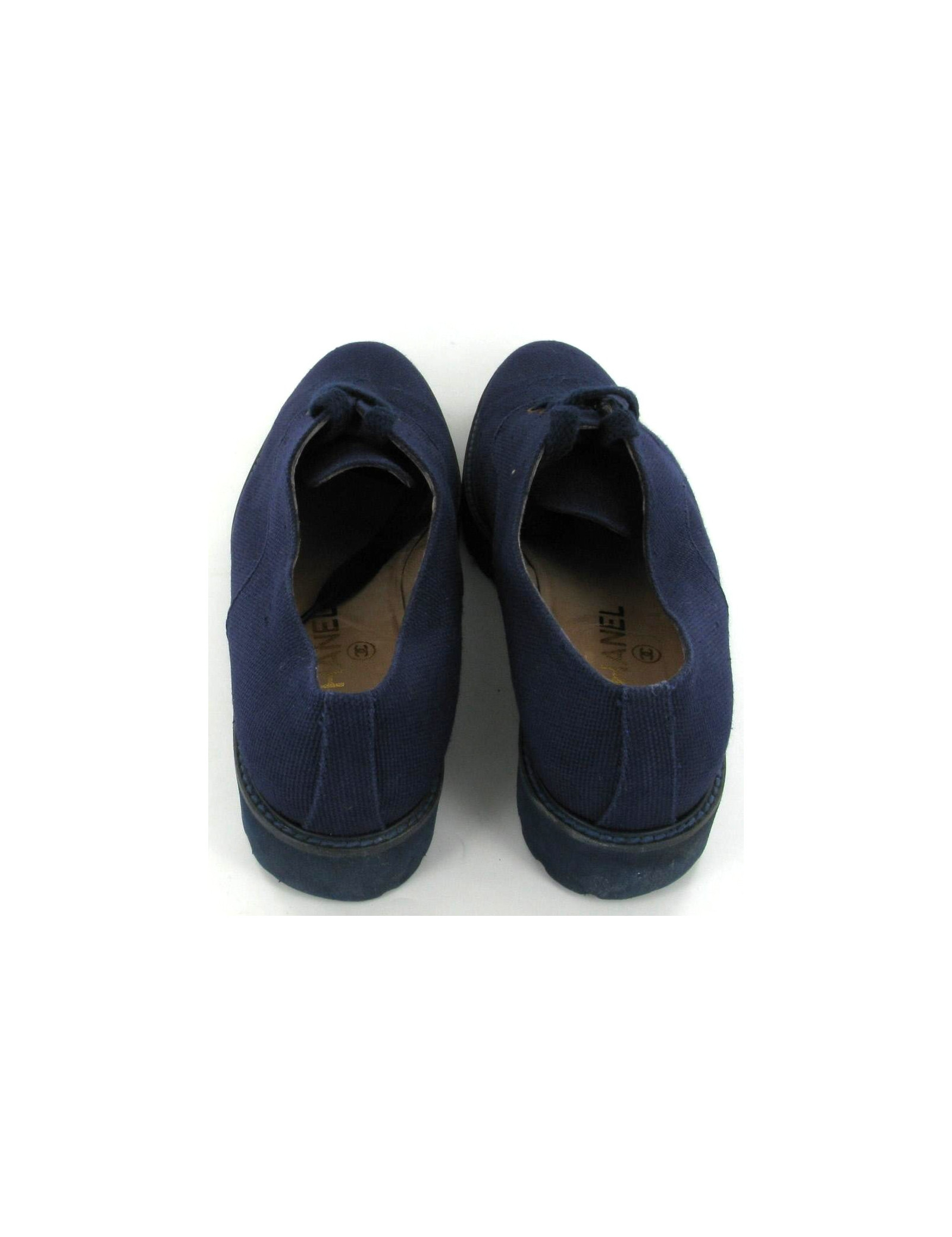 CHANEL blue canvas shoes, size 39. This pair in very good condition you will be sold in their CHANEL box. DC logo embroidered on the front of the foot. Laces rope blue marine. In the marine style, carnations have a rust effect. Leather insole. Made in Italy.