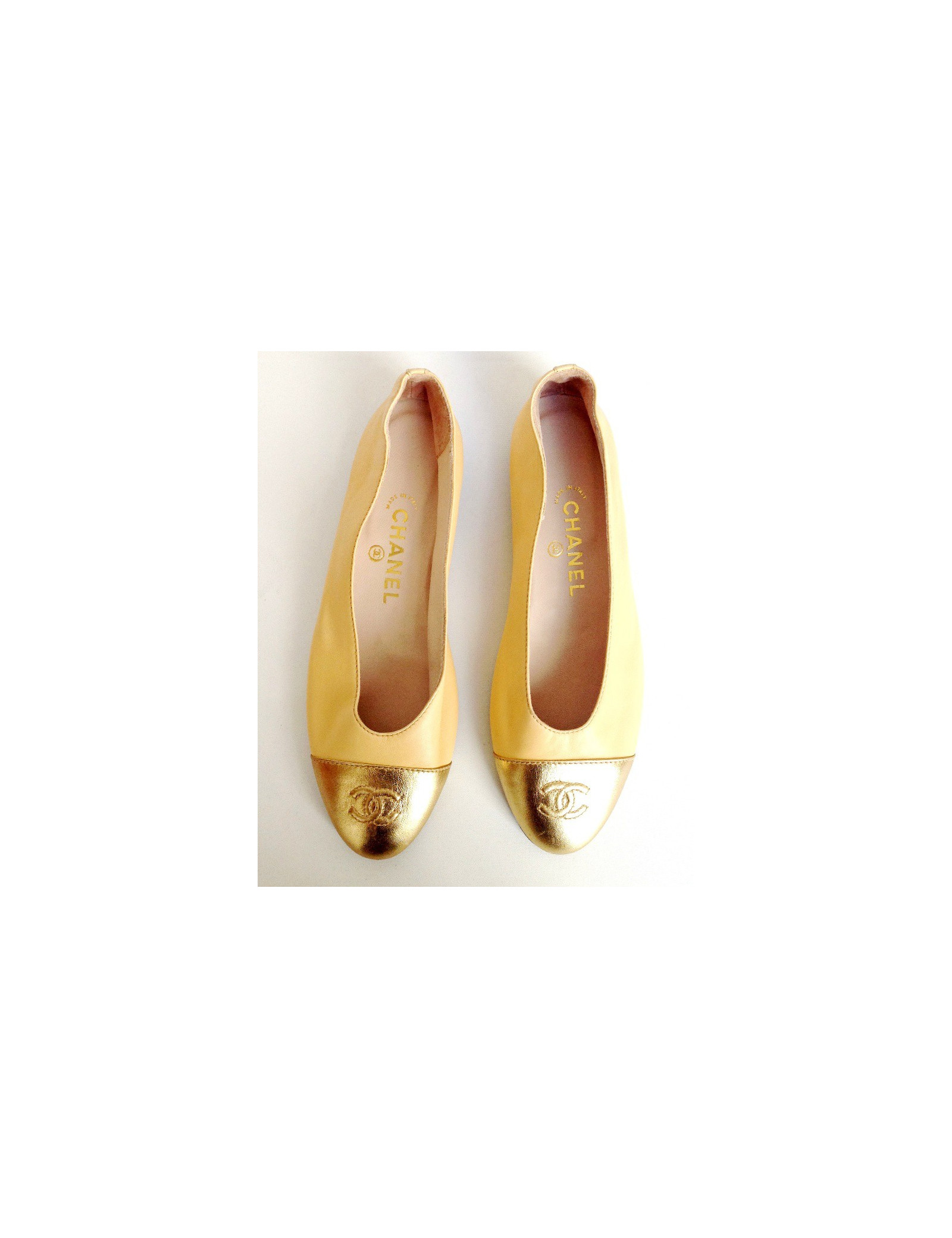 Ballerinas CHANEL T40 two-tone gold and beige