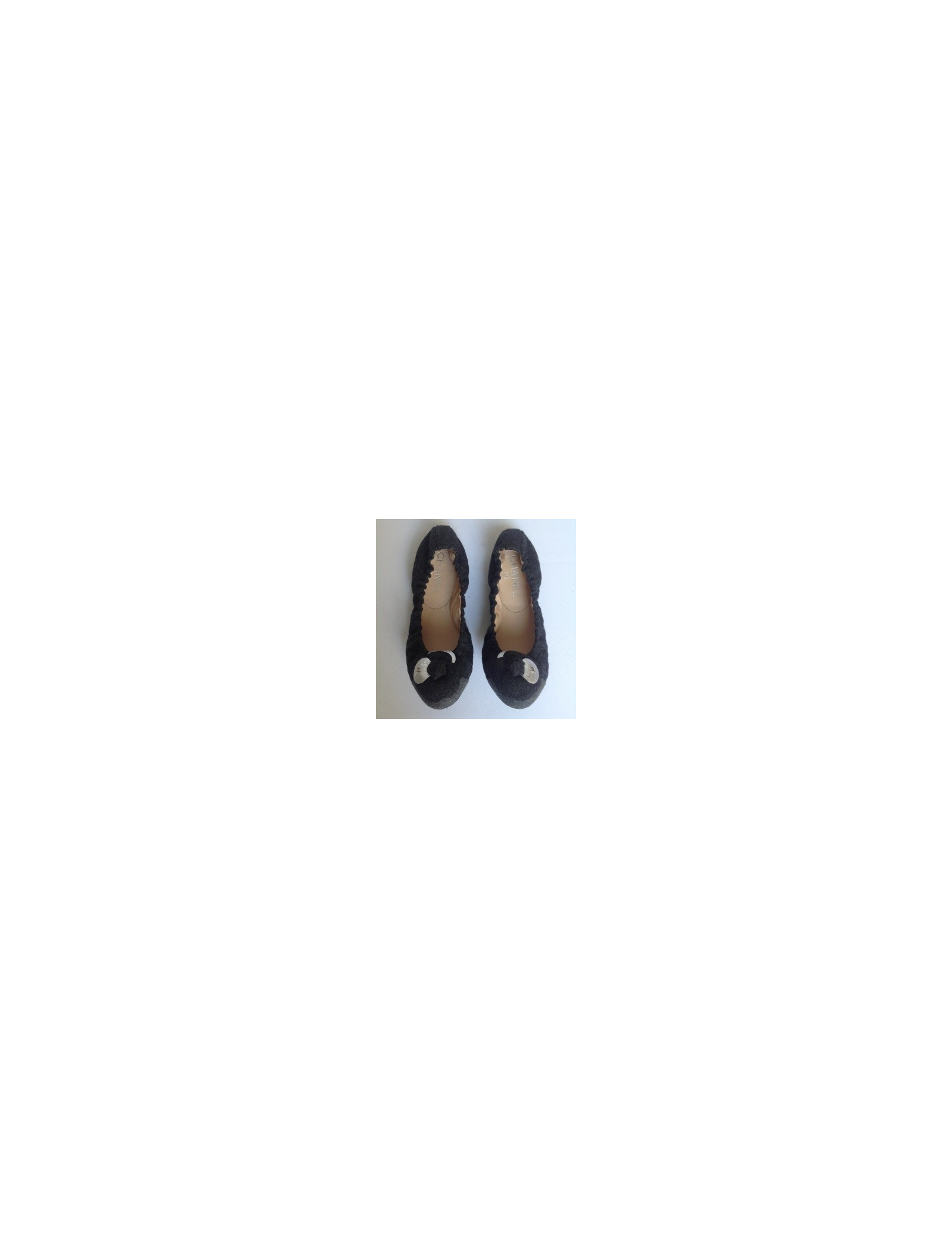 Ballerinas two-tone Chanel grey T37.5 -. At the front a Camellia in felt grey and silver with a CC metal silver -. The Interior is beige leather- In very good condition.