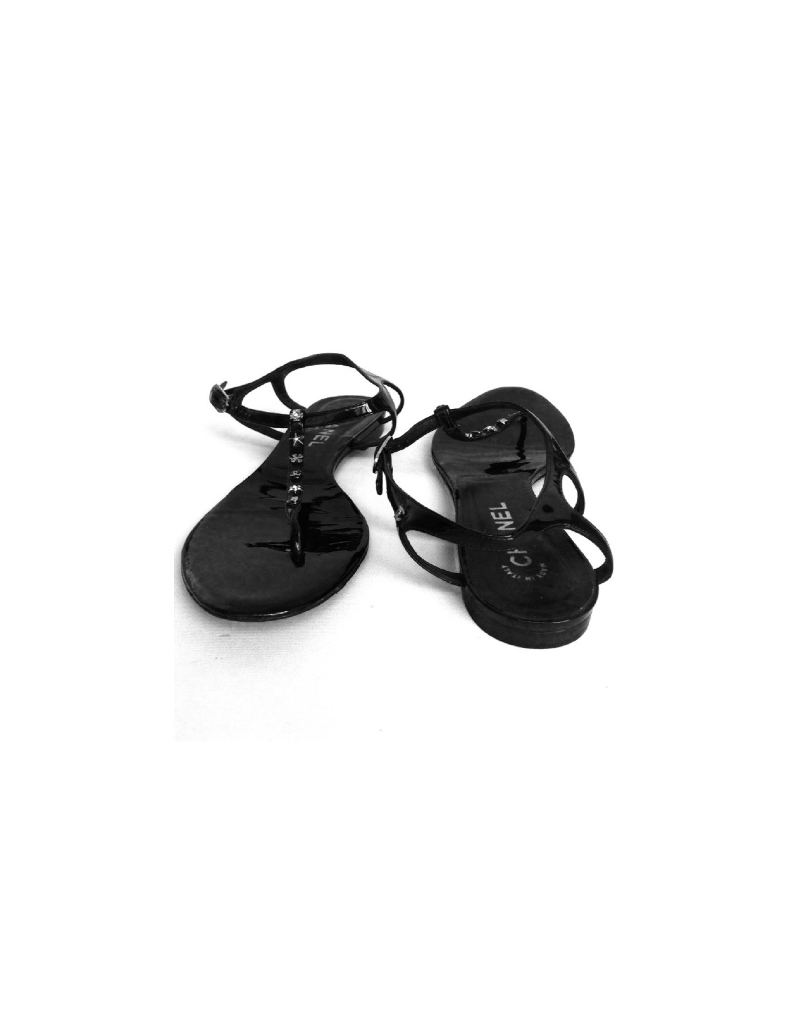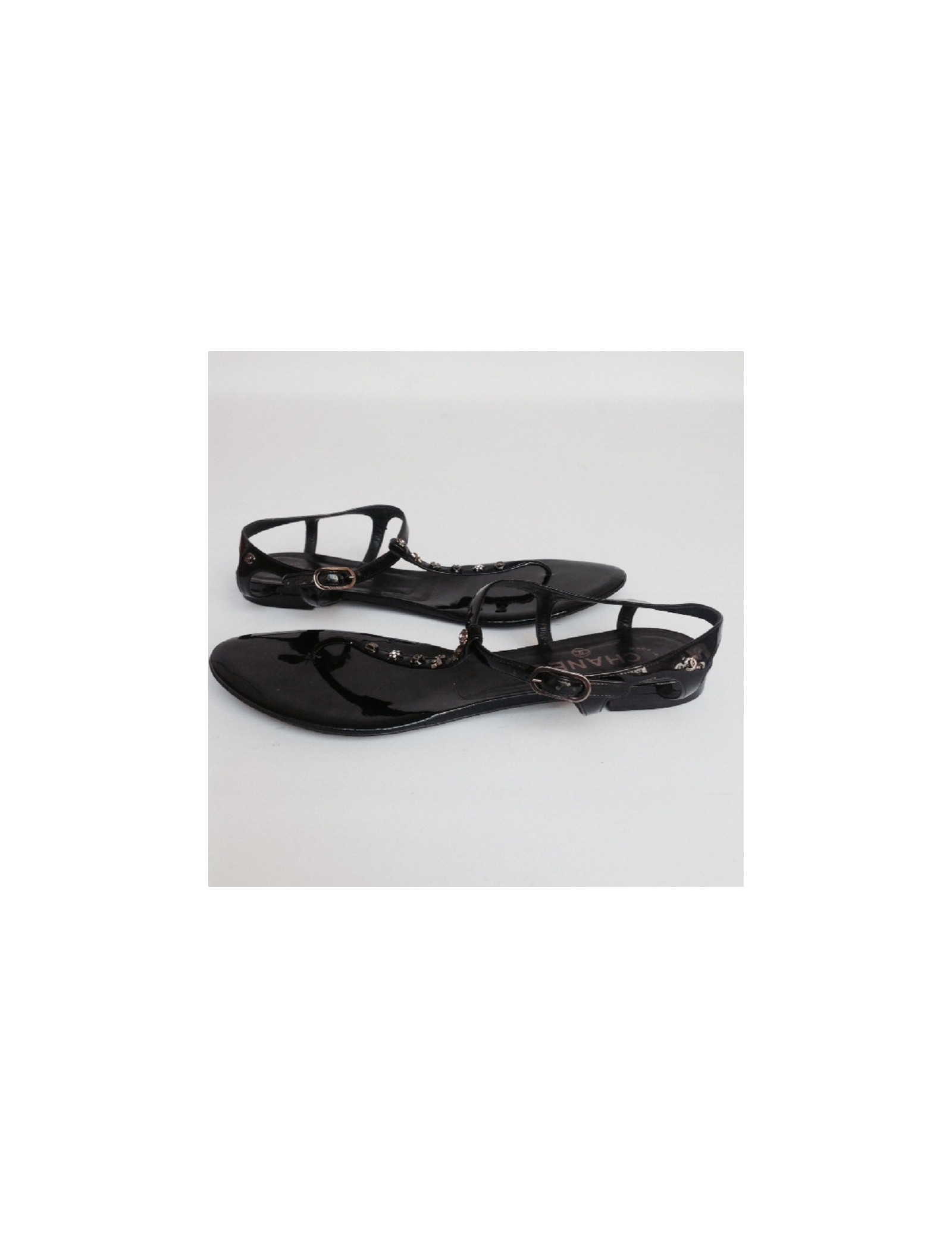 Flat Sandals Black patent leather CHANEL T39