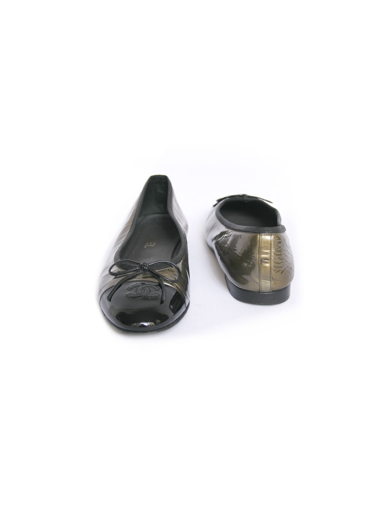 CHANEL T40 two-tone patent leather ballerinas