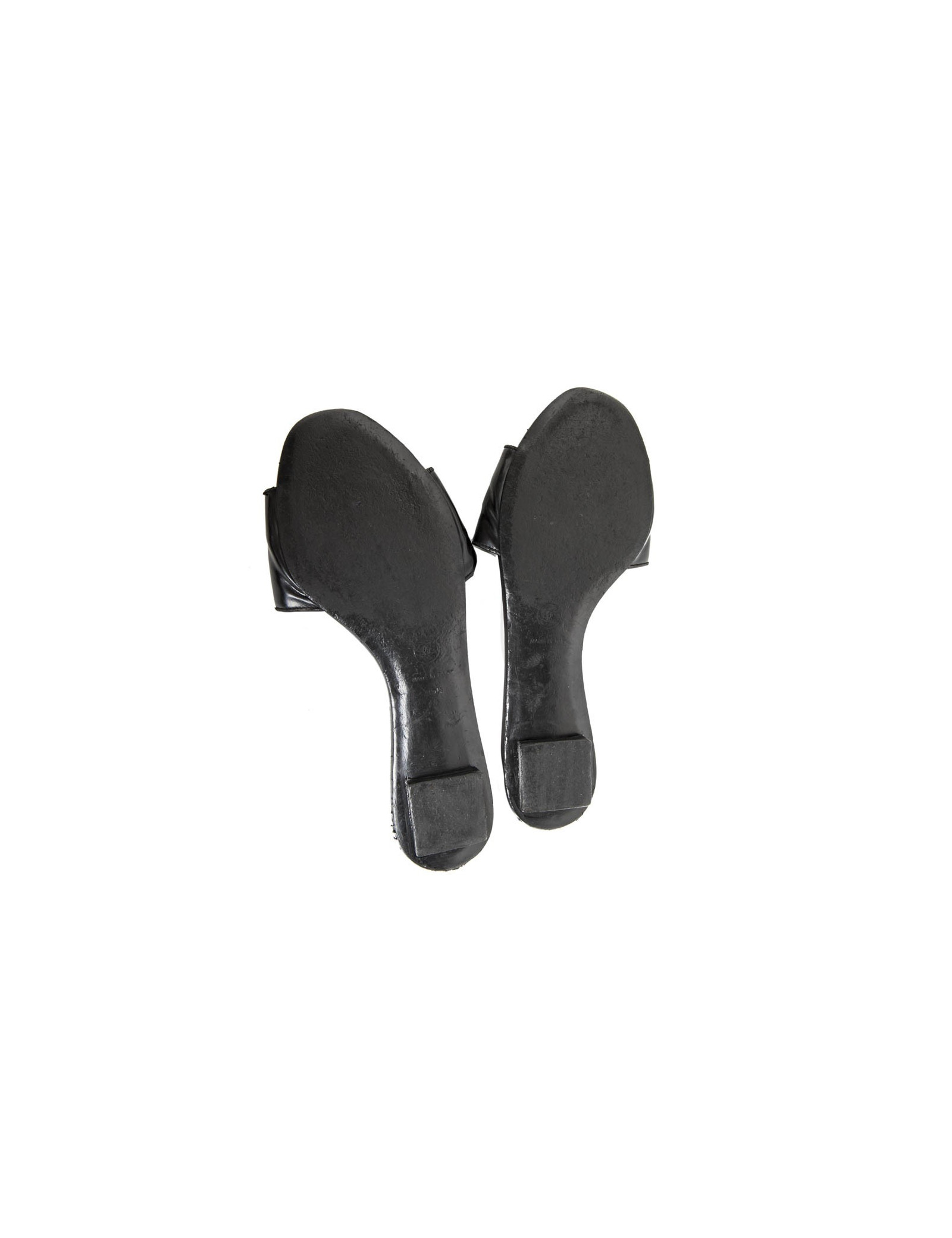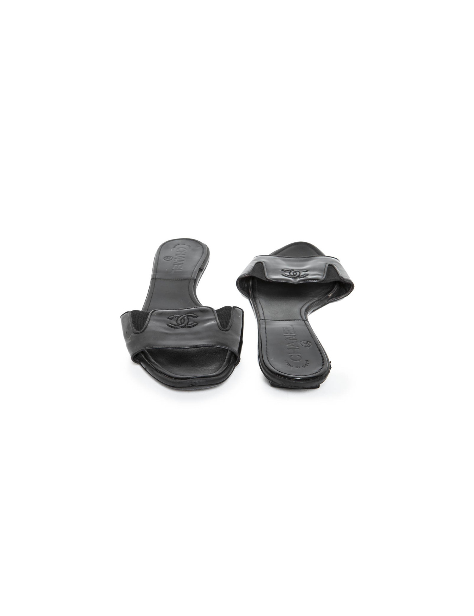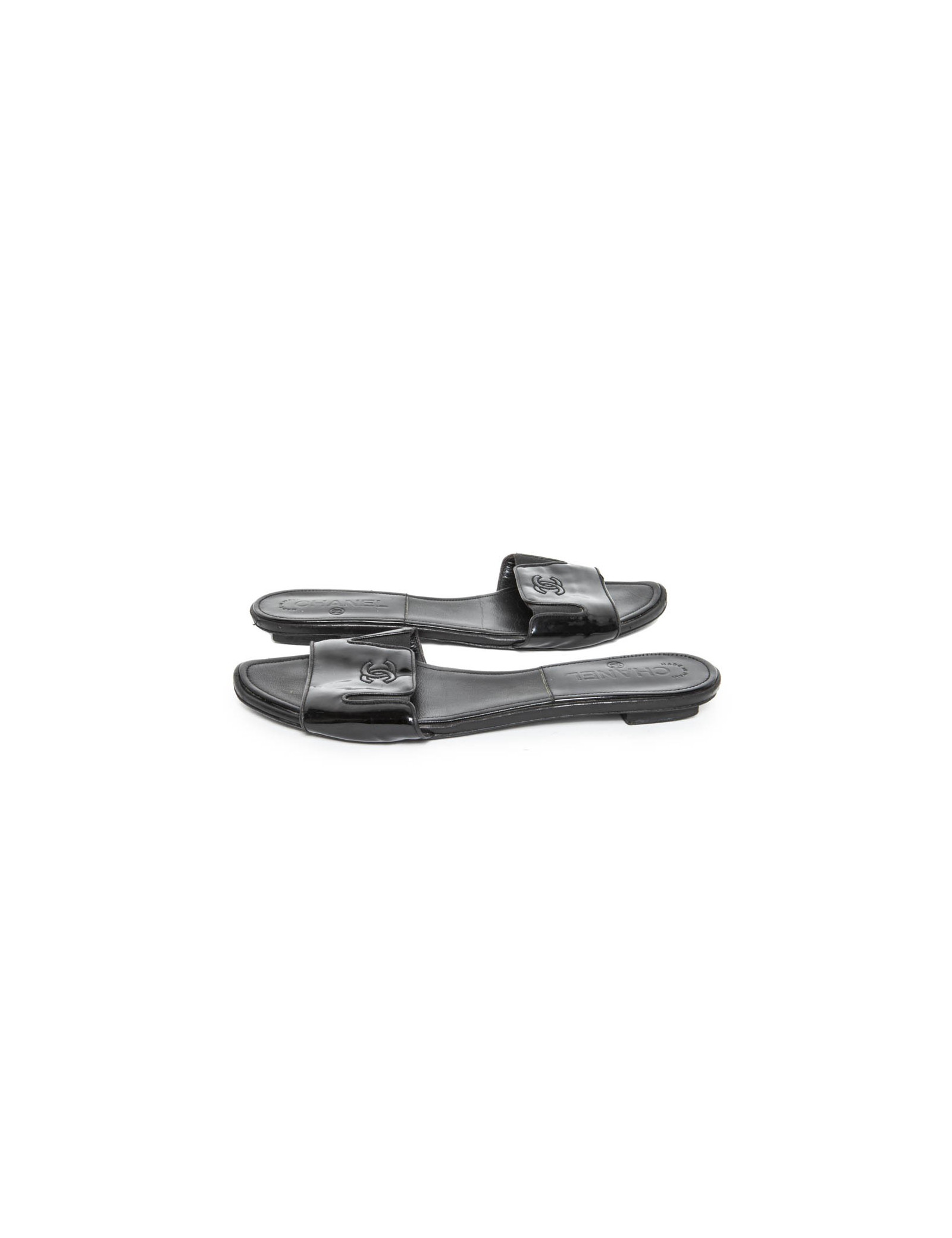 Flat mules CHANEL Black patent leather, registered CC front on leather.