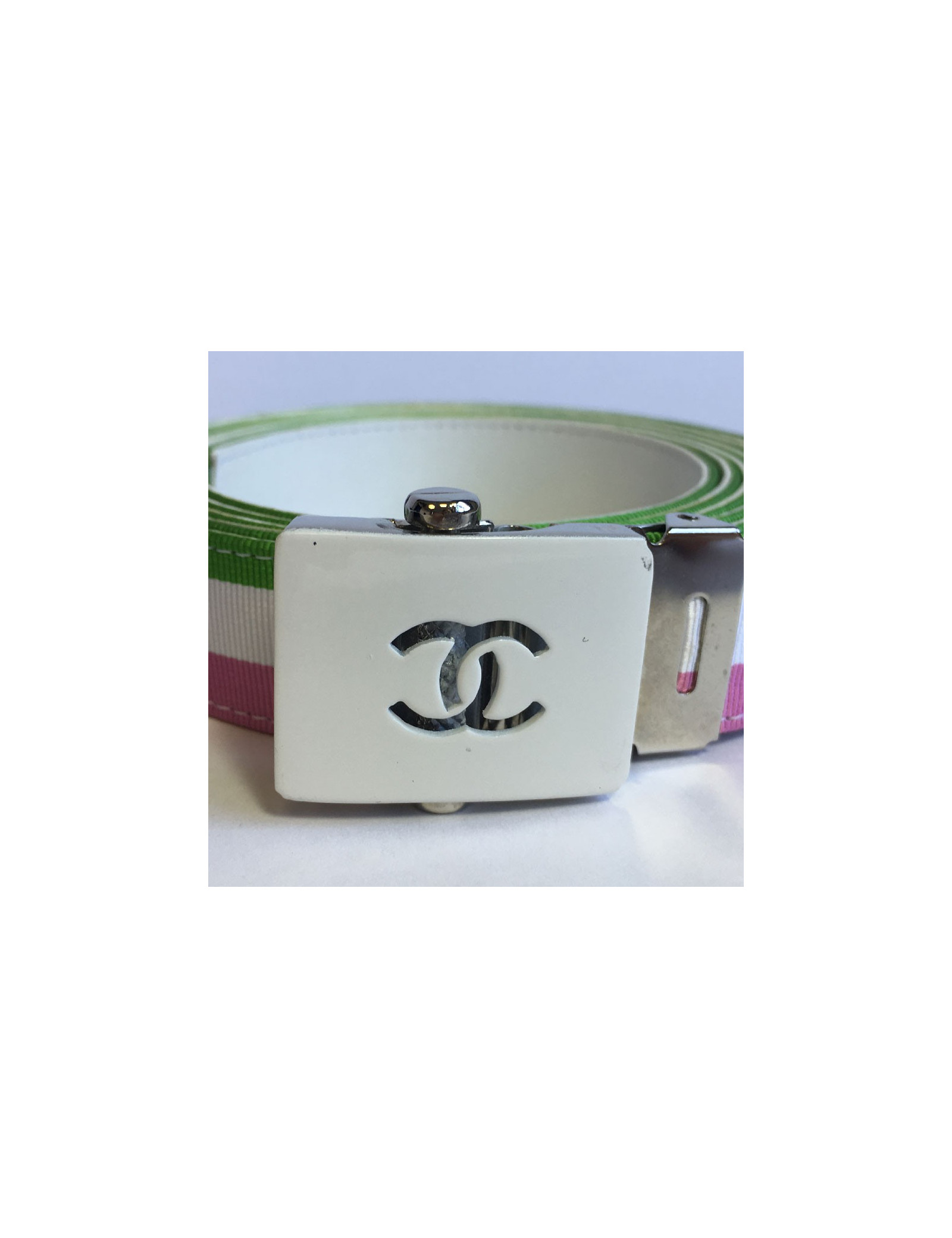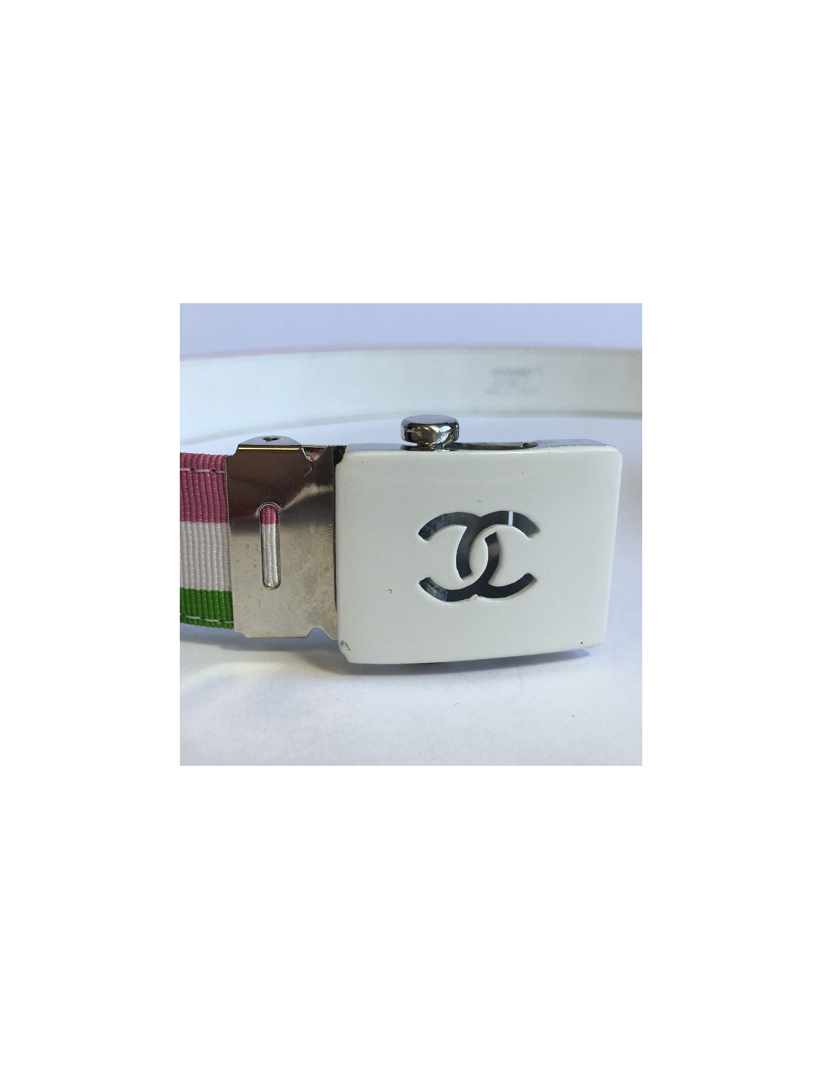 Last items in stock BELTS CHANEL Couture molten glass belt CHANEL 32686 2,570.00 € CHANEL Couture handmade belt Condition : very goodMade in FranceGender : womanMaterials : metal mesh, molten glassColors : gold, amethyst, emeraldSize: 75FRMeasurements : total length 75 cm (non-adjustable) x height 5 cm, molten glass brooch : 5 x 5 cmStamp : yesYear : 1996Hardware : gold finish metalDetails : hook clasp, large two-tone molten glass... Add to cart