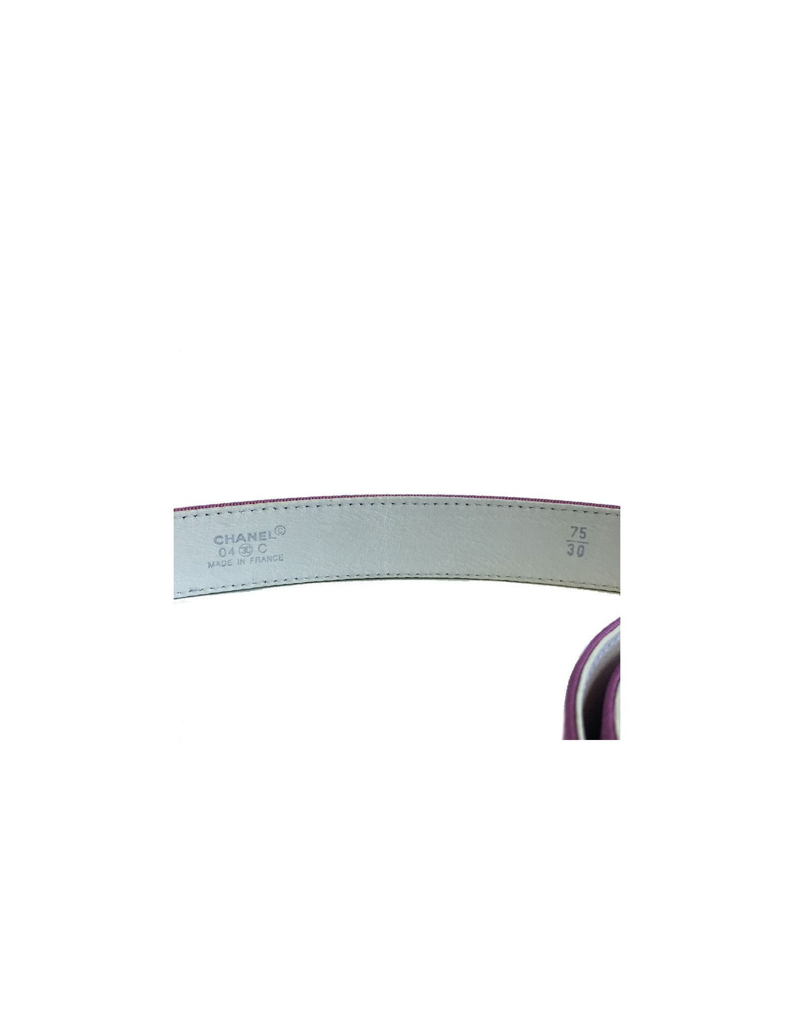 Last items in stock BELTS CHANEL Molten Glass Flower Belt CHANEL 32008 2,100.00 € CHANEL Molten Glass Flower Belt Condition: very goodMade in FranceMaterial: metal, molten glassColor: gold, amethystMeasurements: total length: 80 cmStamp: yesHardware: gold finish metalVintageWill be delivered in a pouch Add to cart