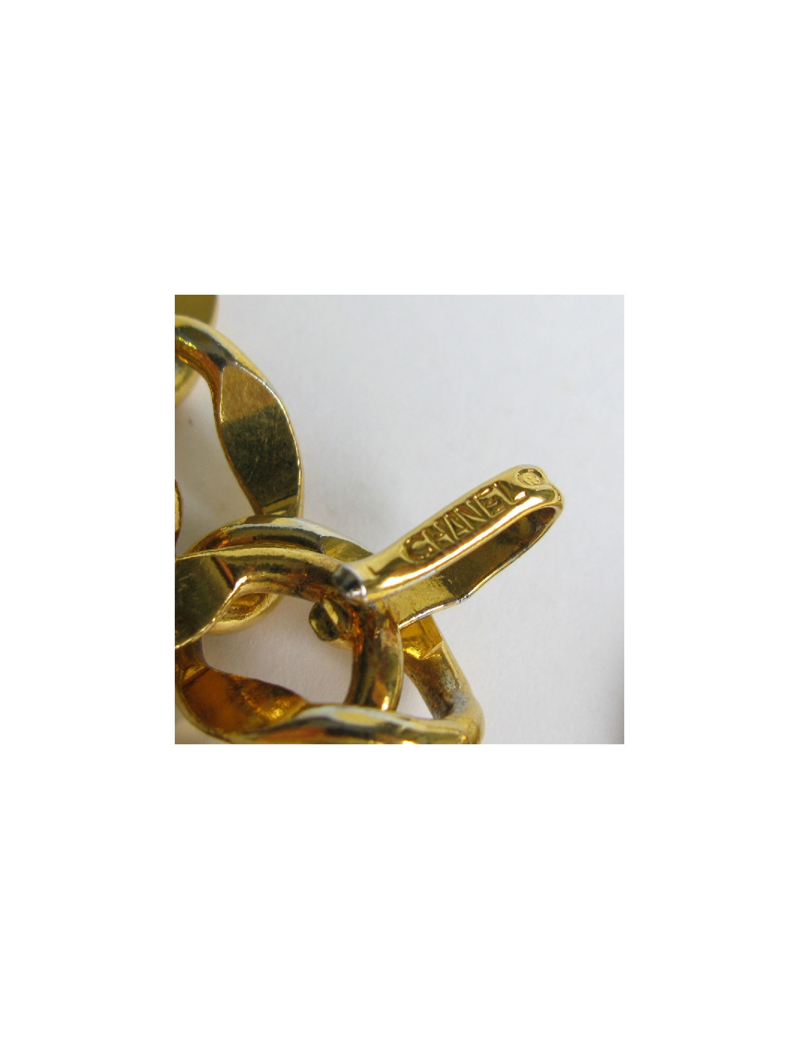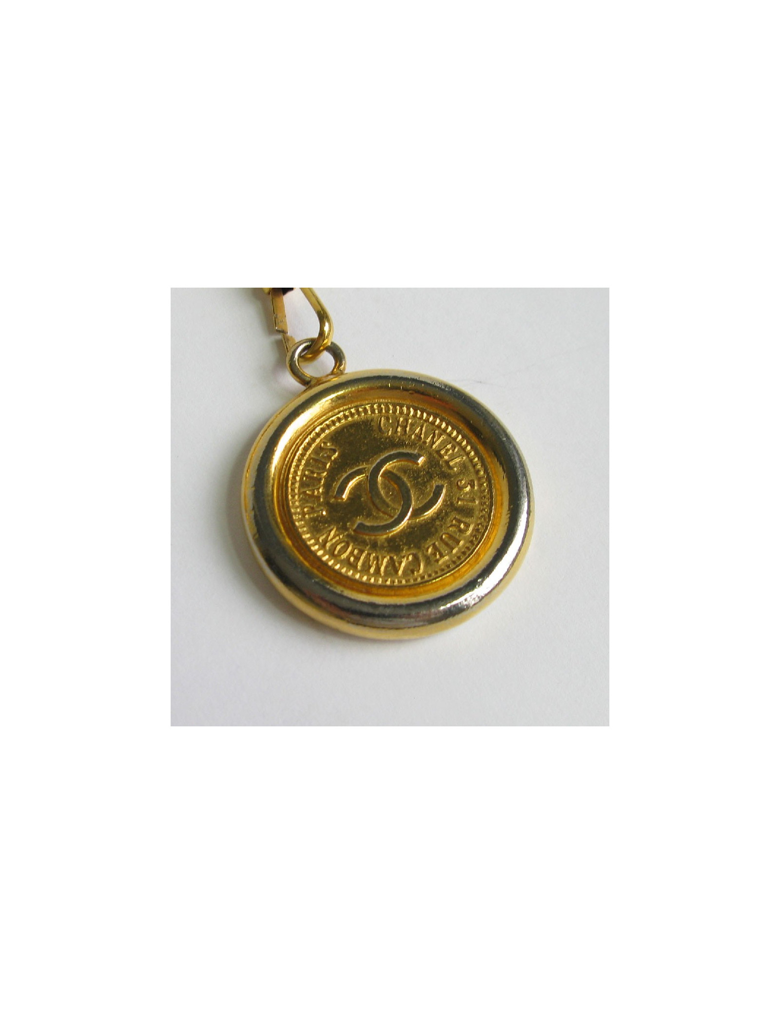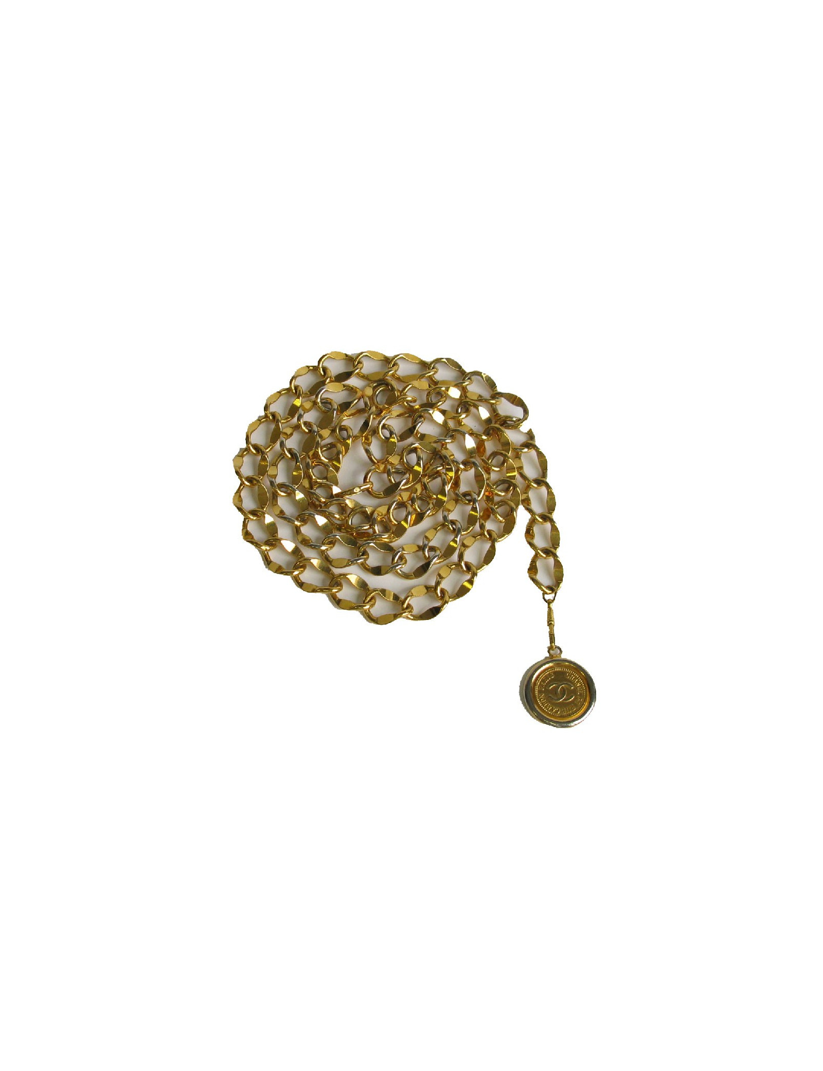 Last items in stock BELTS CHANEL COCO bottle chains belt CHANEL 32682 2,200.00 € CHANEL vintage collector belt Condition : good Made in FranceGender : womanMaterial : metalColors : gold (has darkened with age)Measurements : length 75 cm, width 2 cm, chain 13 cm, pendant 2,5 x 4 cmStamp : yesYear: circa ‘80Details : vintage, Chanel logo engraved on the clasp, "Coco Chanel" pendant in the shape of a perfume bottle. Collector's item. Add to cart