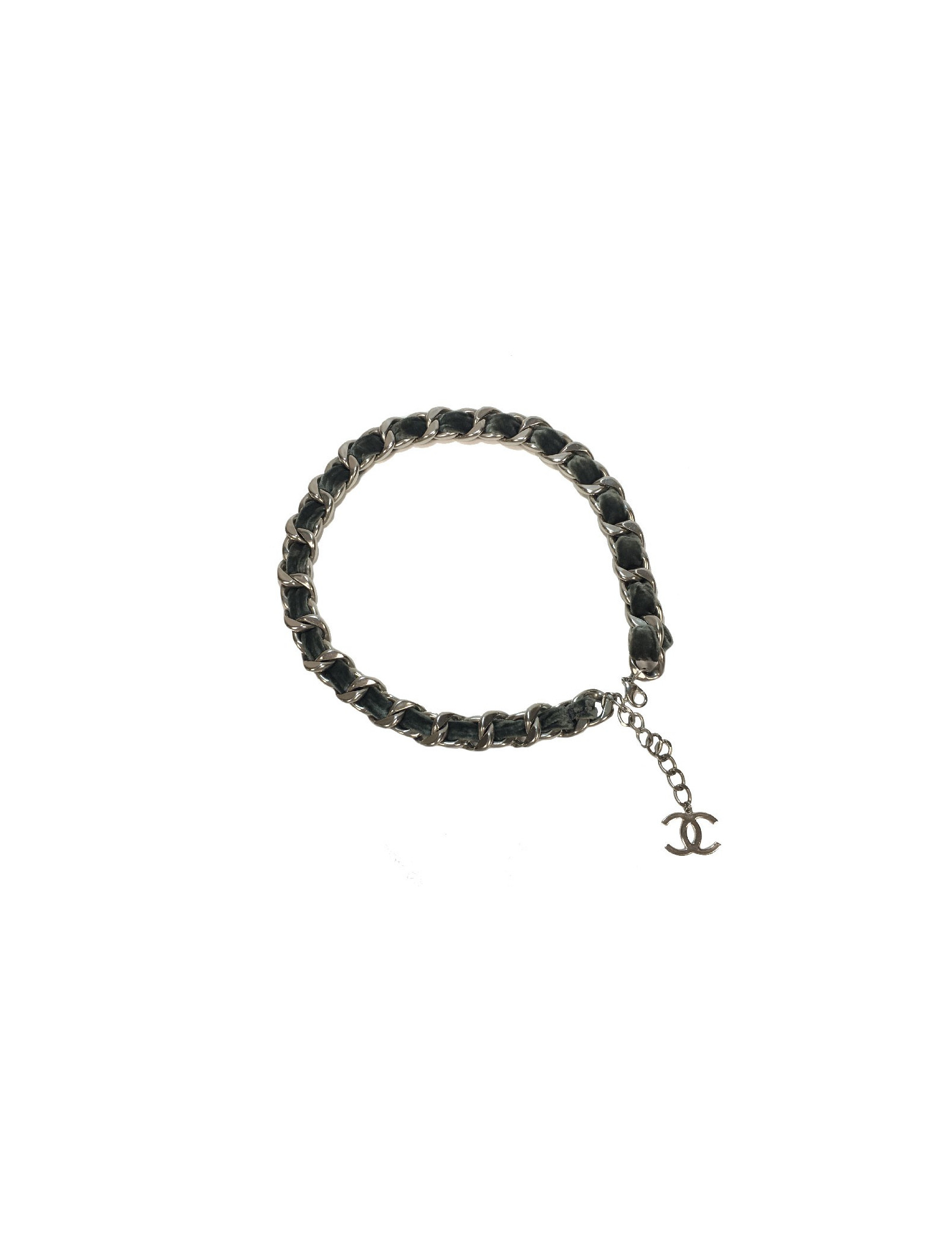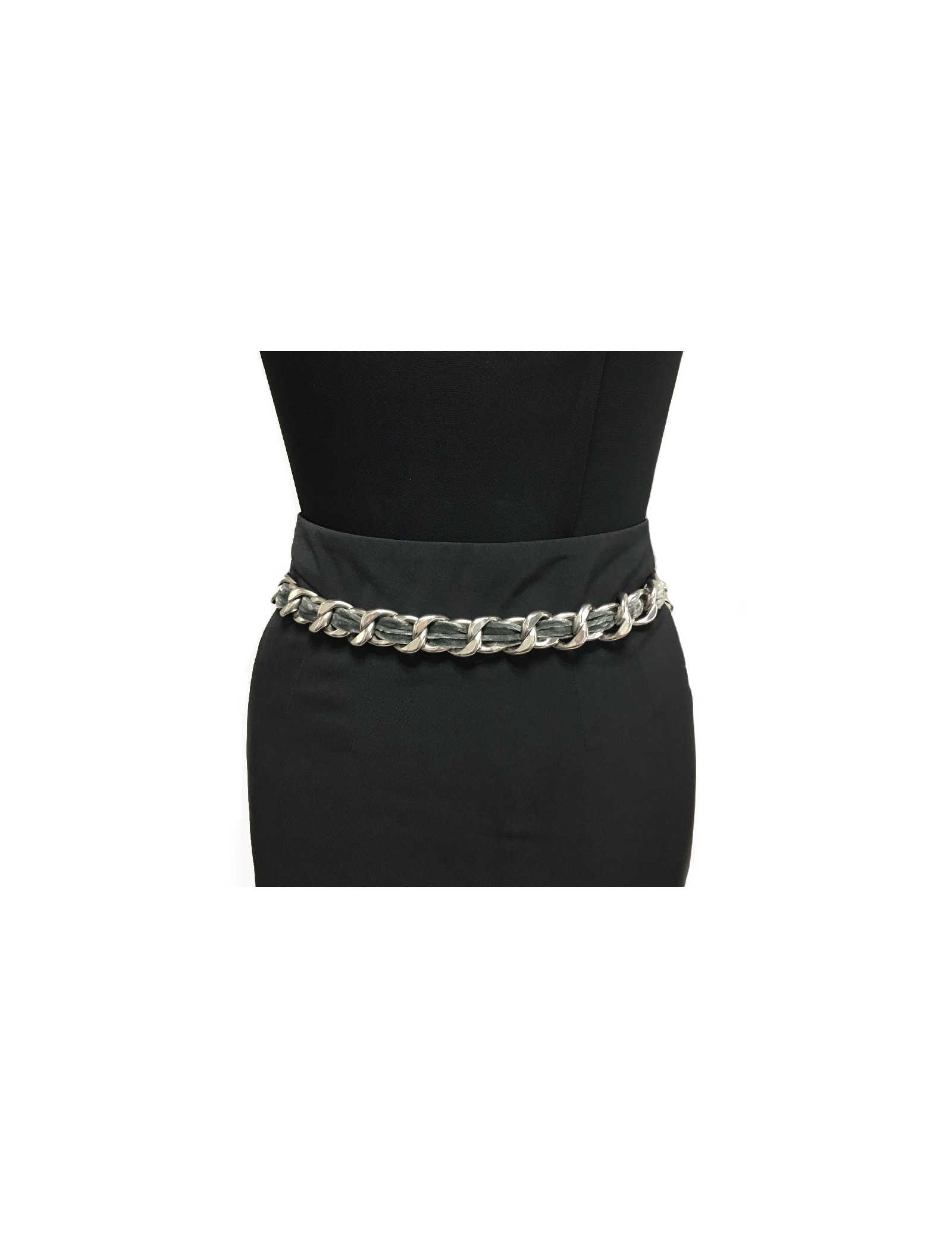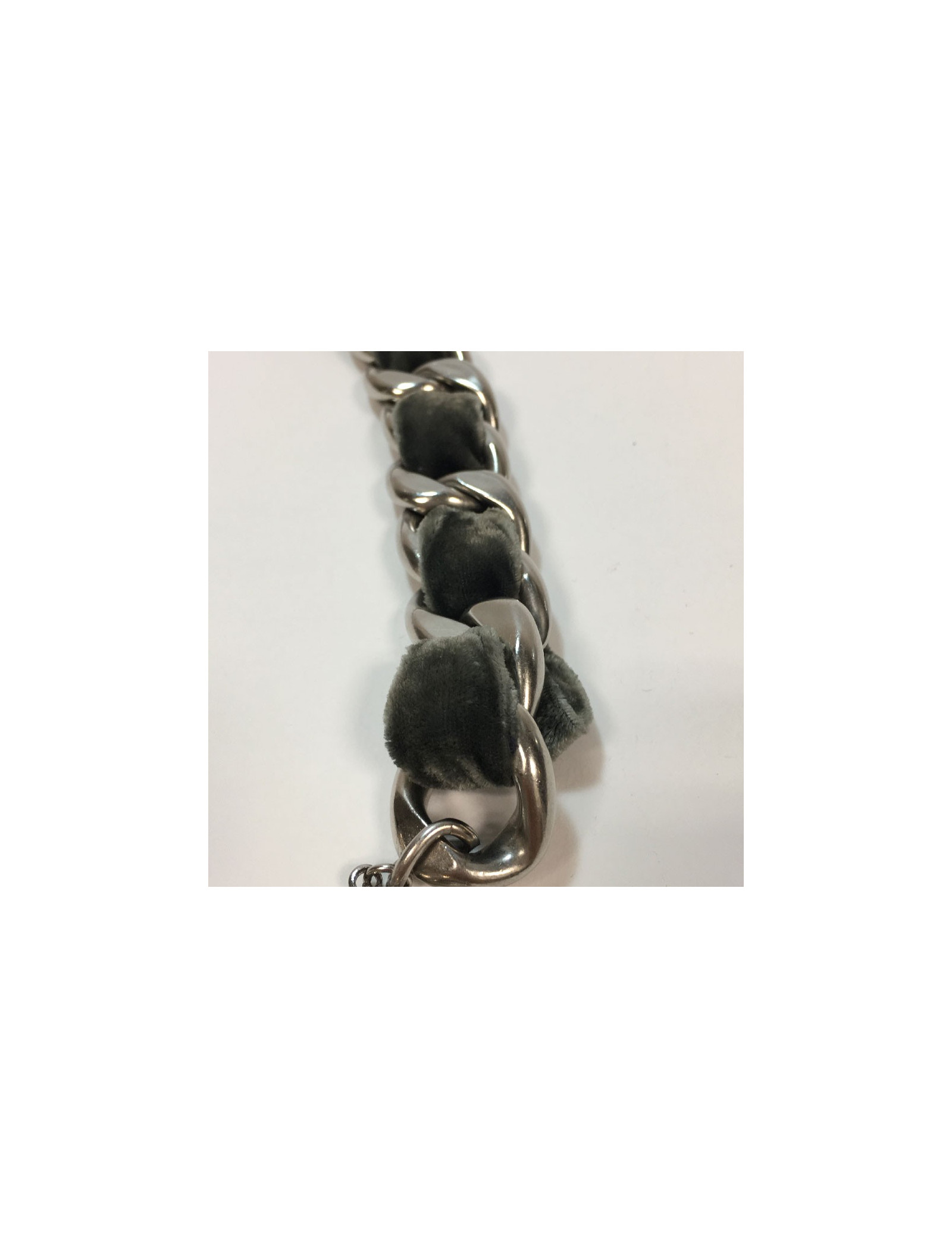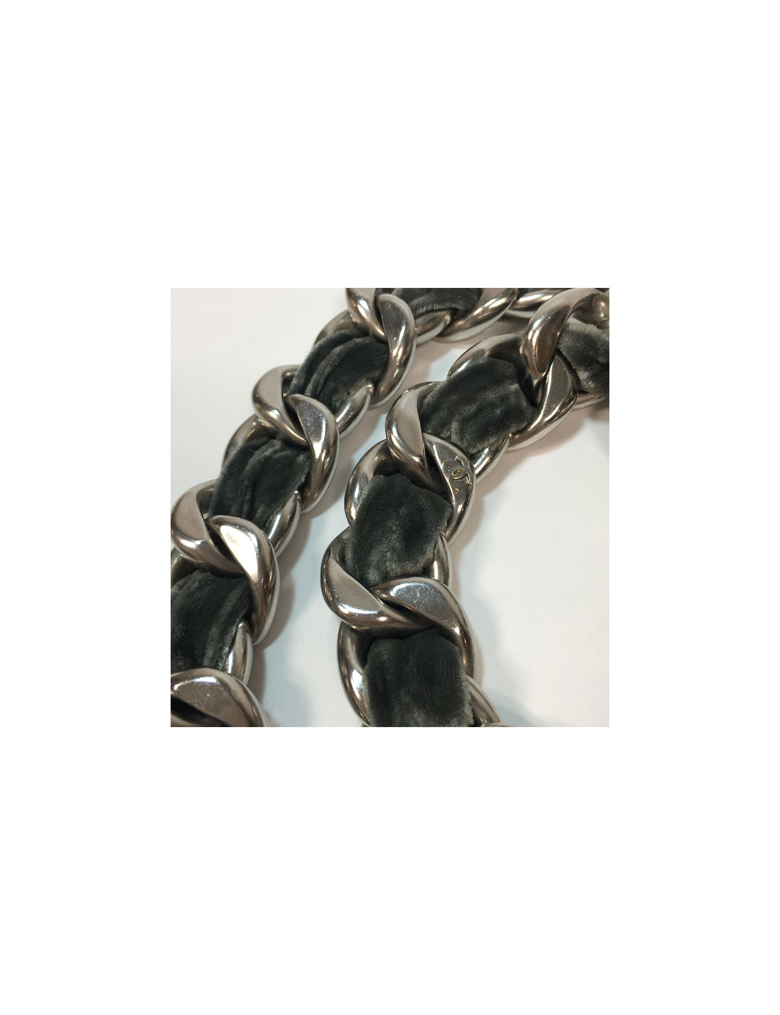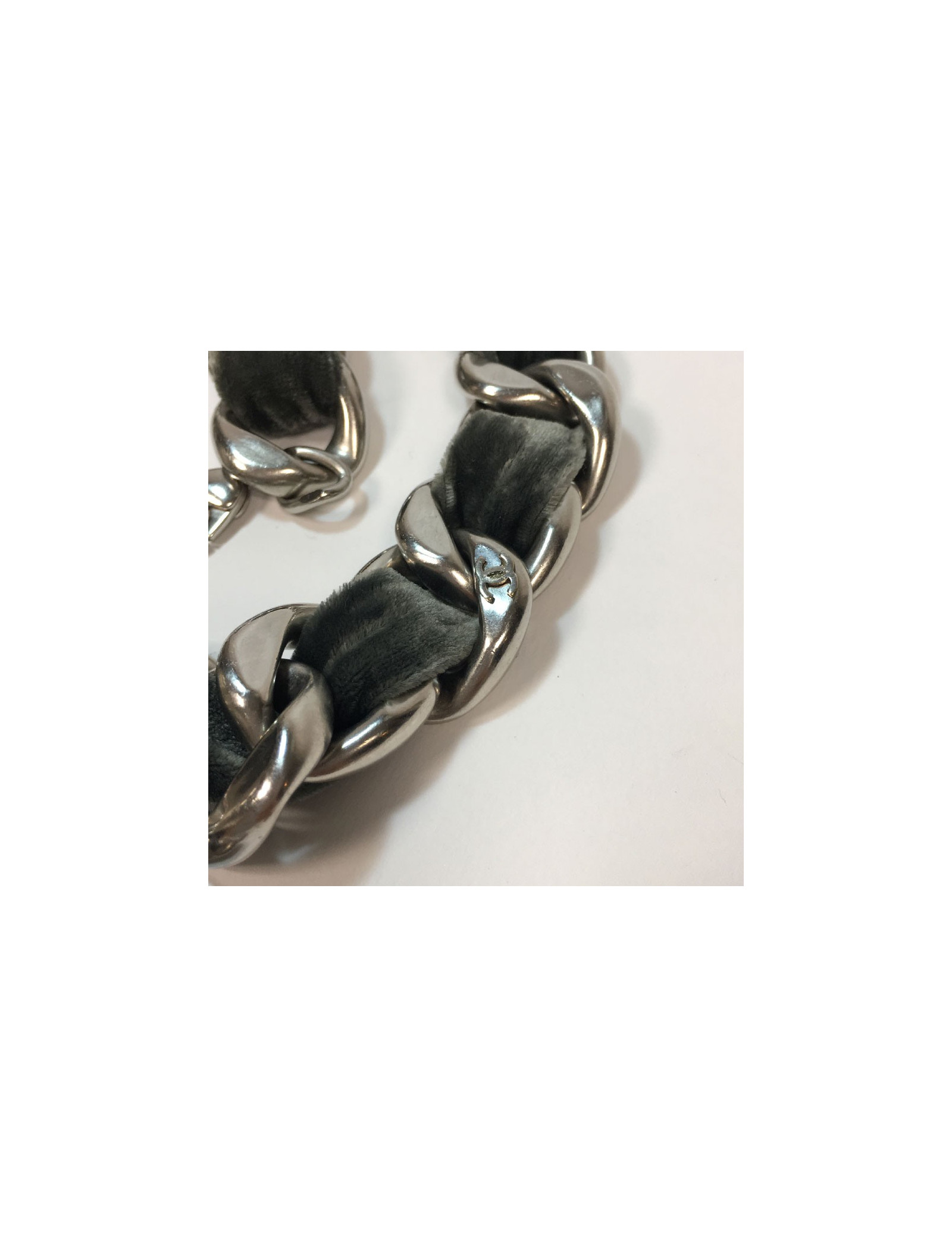 Chanel belt in chain and gray velvet. A pendant CC at the end of the chain. In very good condition.