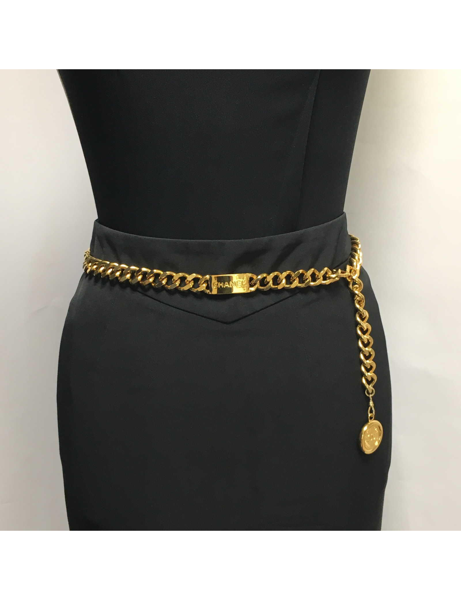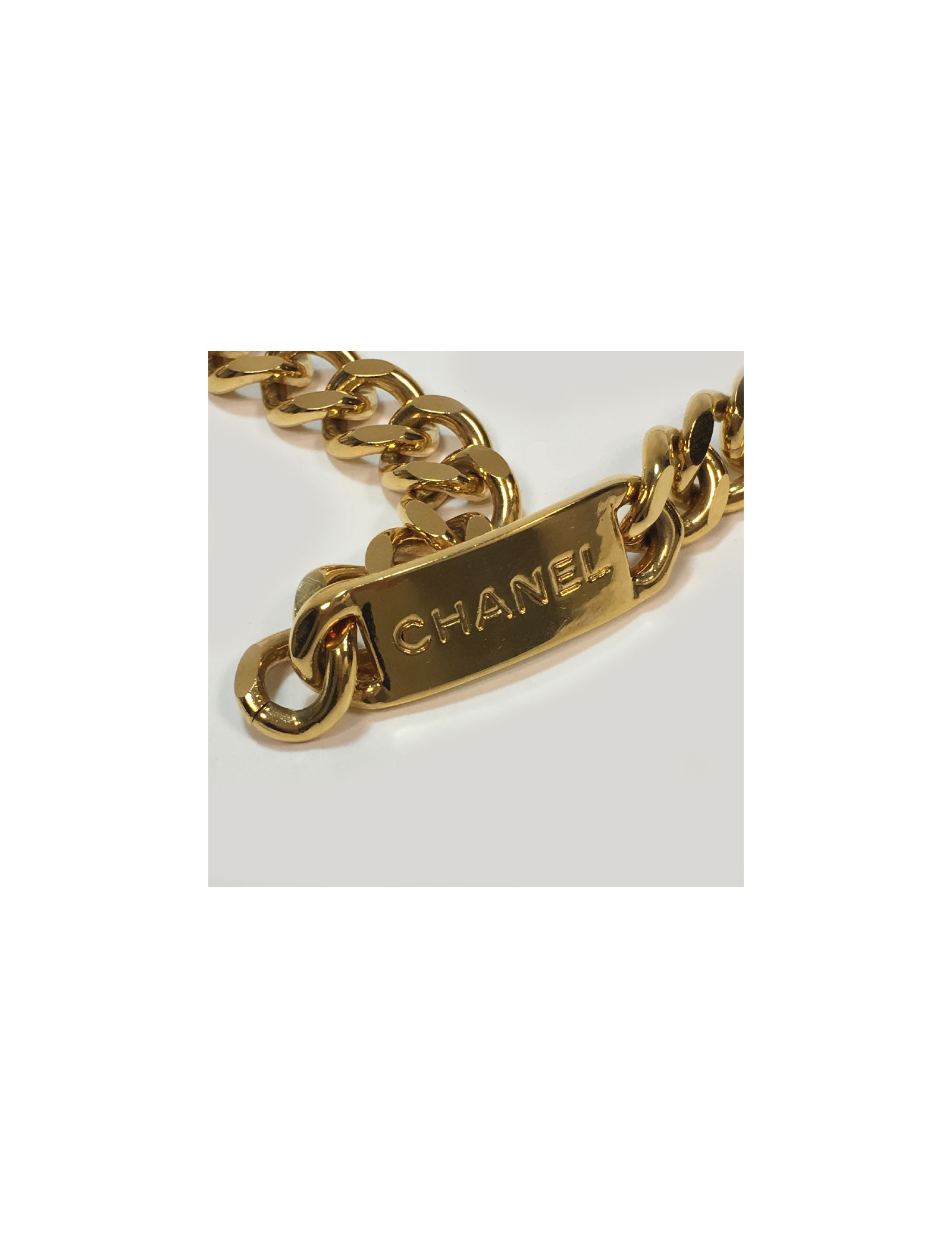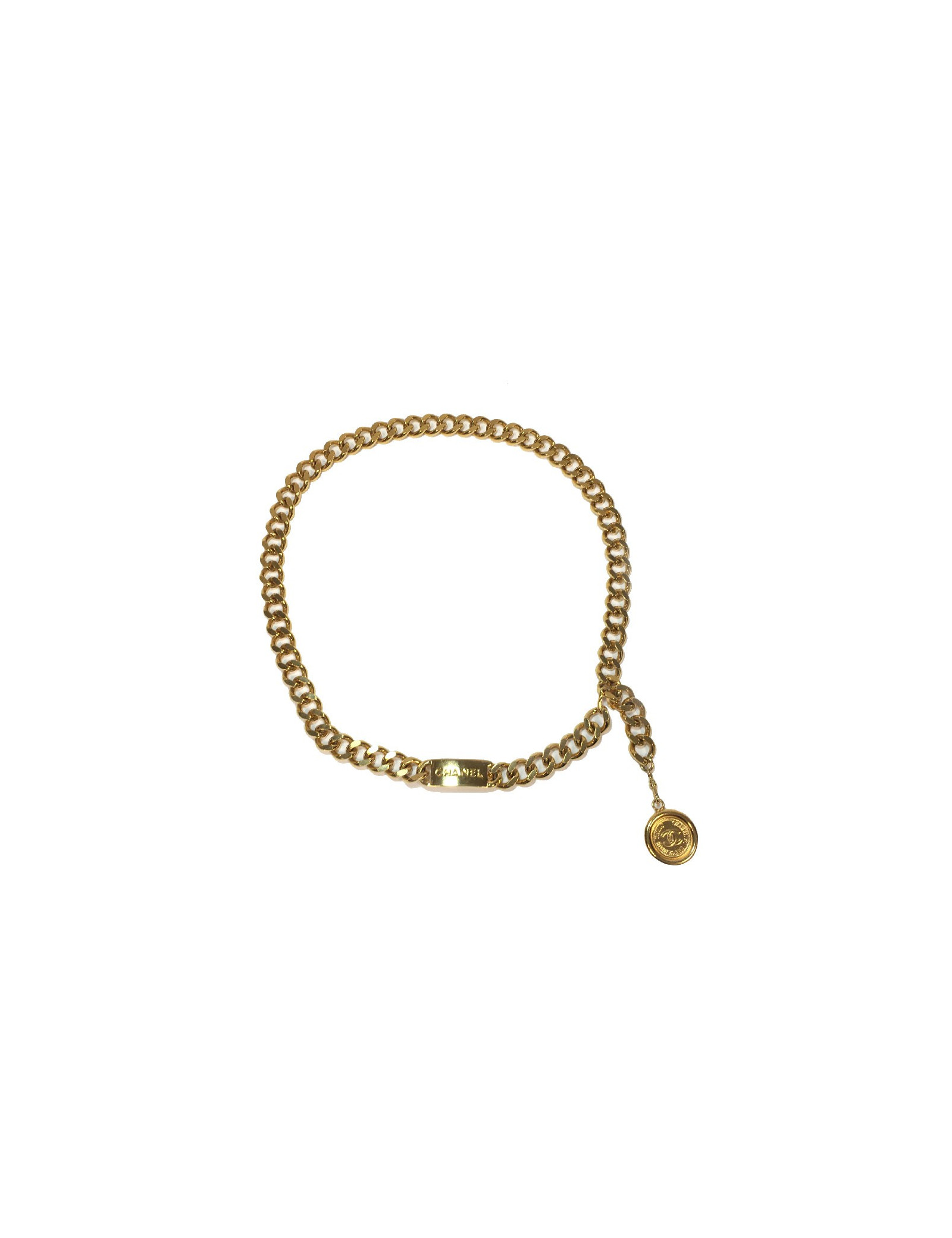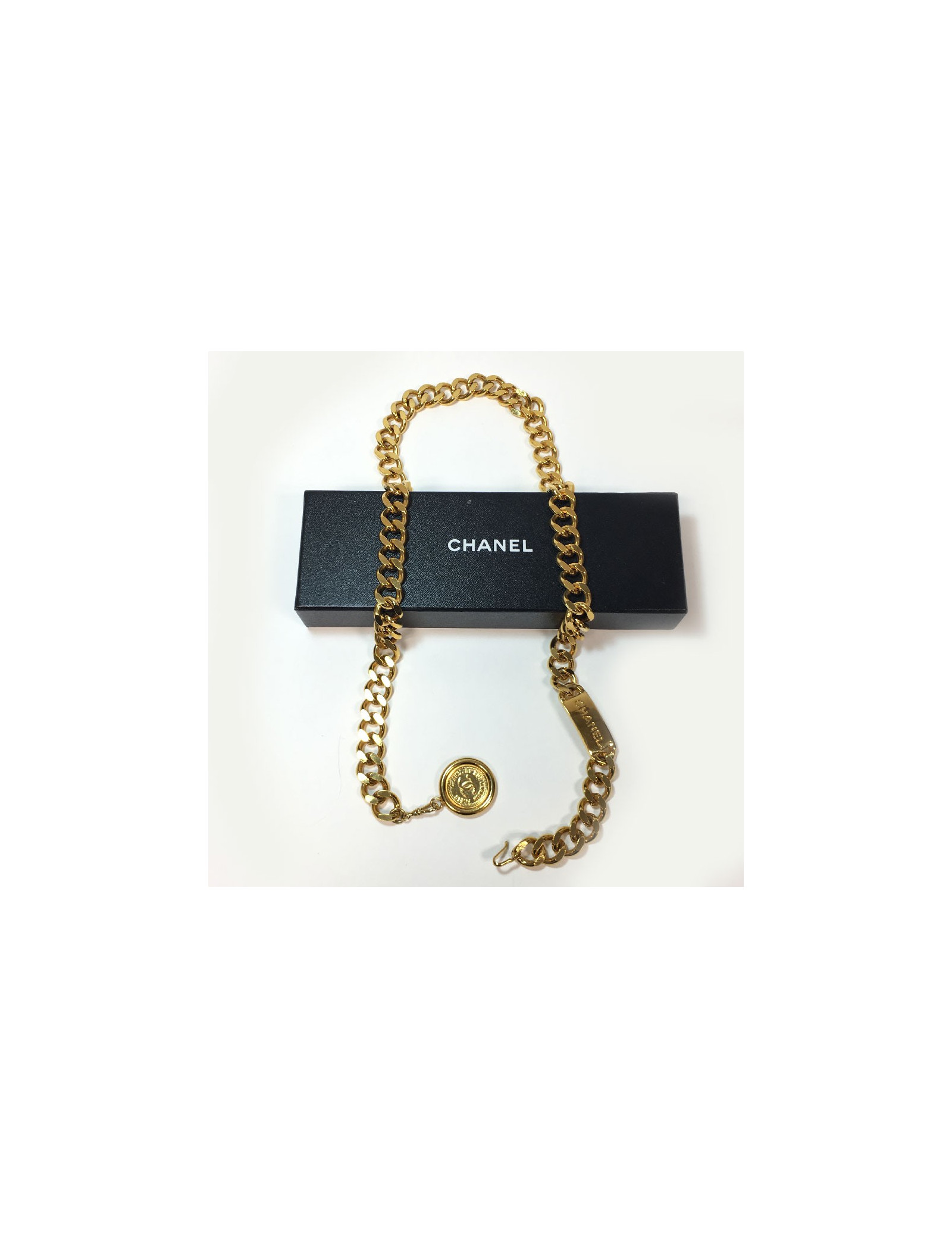 Chanel vintage chain belt, plate and medal in gold metal