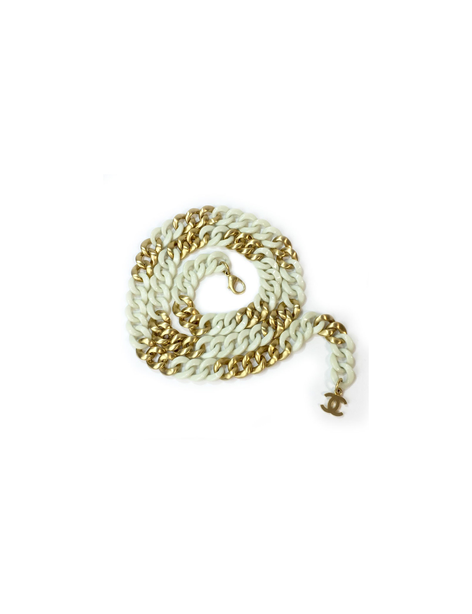 Last items in stock BELTS CHANEL Vintage gilded metal and pearly beads belt CHANEL 25174 2,550.00 € CHANEL vintage belt Materials: metal, pearly beadsColors : gold, mother-of-pearlCondition: very good condition metal, good condition beadsSerial number : 6059From the brand's sale (S)Advantage Valois Vintage Paris : delivered in its CHANEL box Add to cart
