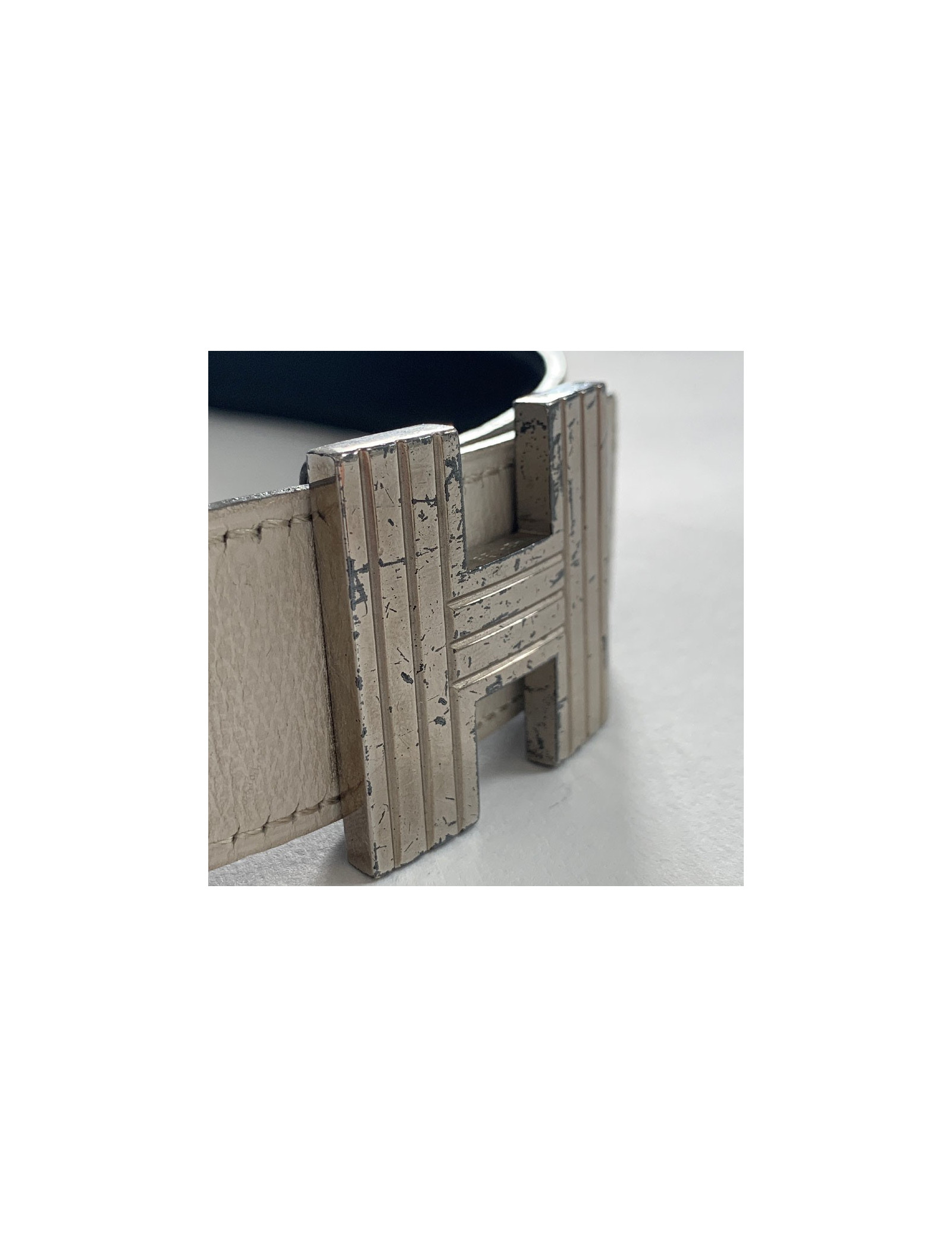 New Last items in stock BELTS Belt H vintage Hermès golden HERMES 40009 490.00 € Hermès reversible H belt from 2011, combining timeless style with everyday versatility. Crafted from quality leather, it offers two distinct looks: a clean white side for a classic feel, and a vibrant blue side for a bolder touch.The iconic gold-tone "H" buckle instantly defines the piece. Simple yet unmistakable, it reflects the craftsmanship and strong... Add to cart