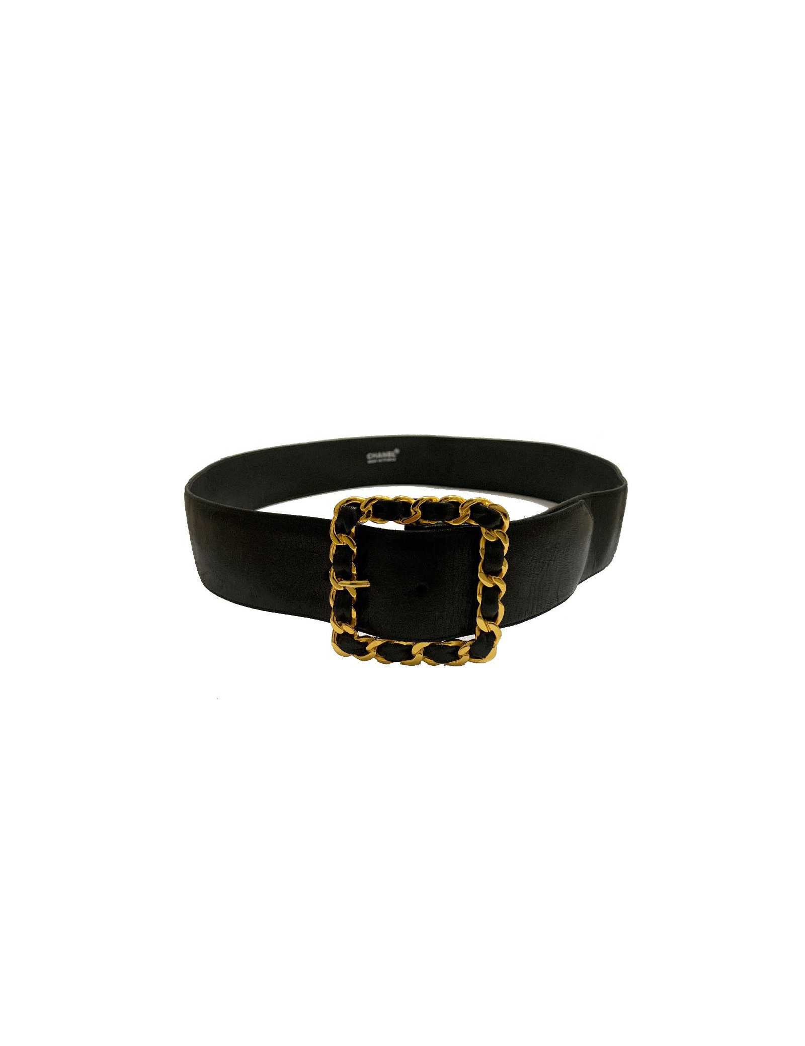 Last items in stock BELTS CHANEL Couture molten glass belt CHANEL 32686 2,570.00 € CHANEL Couture handmade belt Condition : very goodMade in FranceGender : womanMaterials : metal mesh, molten glassColors : gold, amethyst, emeraldSize: 75FRMeasurements : total length 75 cm (non-adjustable) x height 5 cm, molten glass brooch : 5 x 5 cmStamp : yesYear : 1996Hardware : gold finish metalDetails : hook clasp, large two-tone molten glass... Add to cart