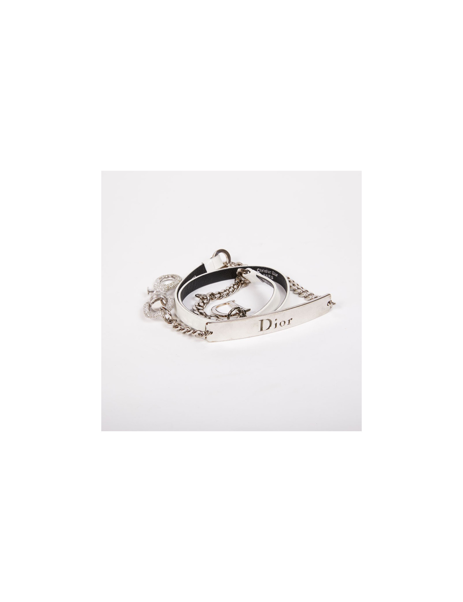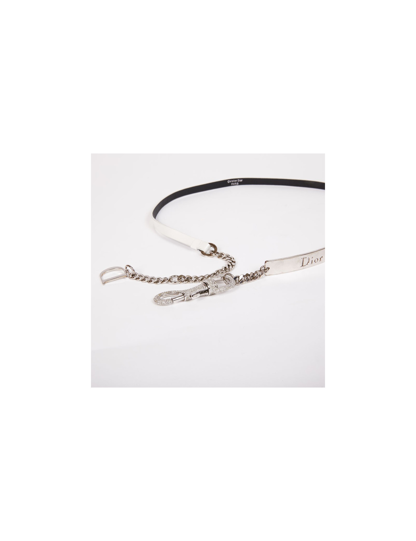 Last items in stock BELTS DIOR rhinestones belt CHANEL 33974 1,400.00 € DIOR rhinestones belt Condition : very goodMade in FranceMaterials : metal, rhinestonesColor : silverTotal length : 100 cmHardware : palladium silver finish metalStamp : yesDetails : The belt is adjustable and there is no missing rhinestone. Can also be worn as a necklace Add to cart