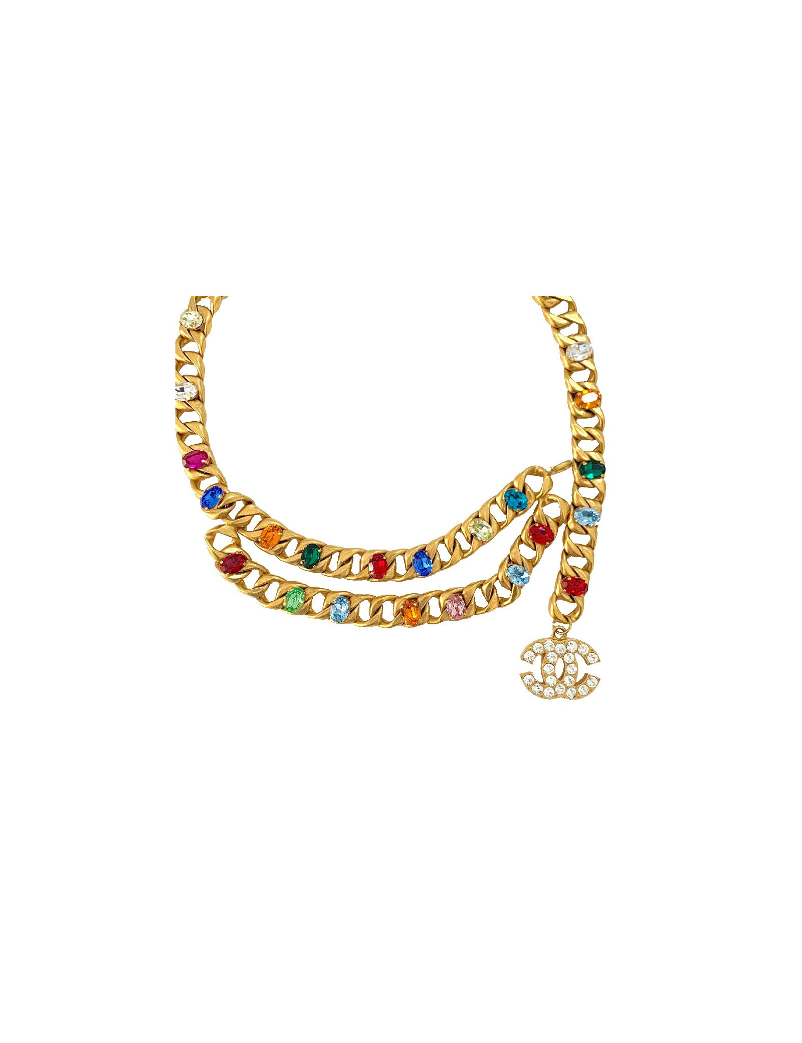 Last items in stock BELTS CHANEL Molten Glass Flower Belt CHANEL 32008 2,100.00 € CHANEL Molten Glass Flower Belt Condition: very goodMade in FranceMaterial: metal, molten glassColor: gold, amethystMeasurements: total length: 80 cmStamp: yesHardware: gold finish metalVintageWill be delivered in a pouch Add to cart