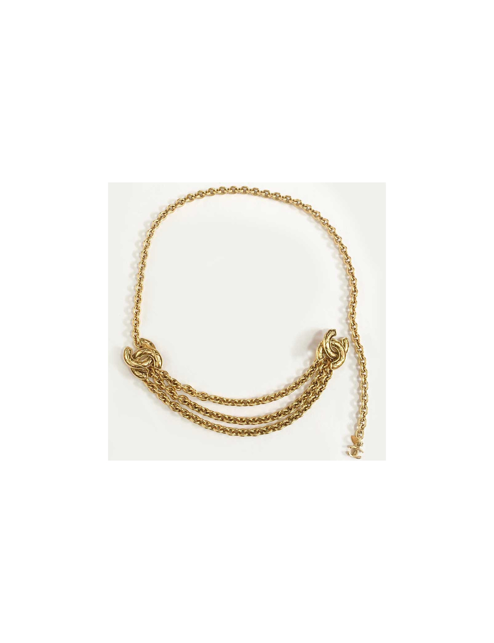 New Last items in stock BELTS Ceinture Chanel triple chaînes dorées à médaillons CC CHANEL 43108 1,850.00 € Step back in time to the glamorous era of 1984 with this exquisite Chanel triple chain belt. A testament to Gabrielle 'Coco' Chanel's enduring legacy, this stunning accessory features three elegant gold-toned chains, meticulously crafted to drape gracefully around the waist or hips. The design is punctuated by two iconic circular medallions embossed with... Add to cart