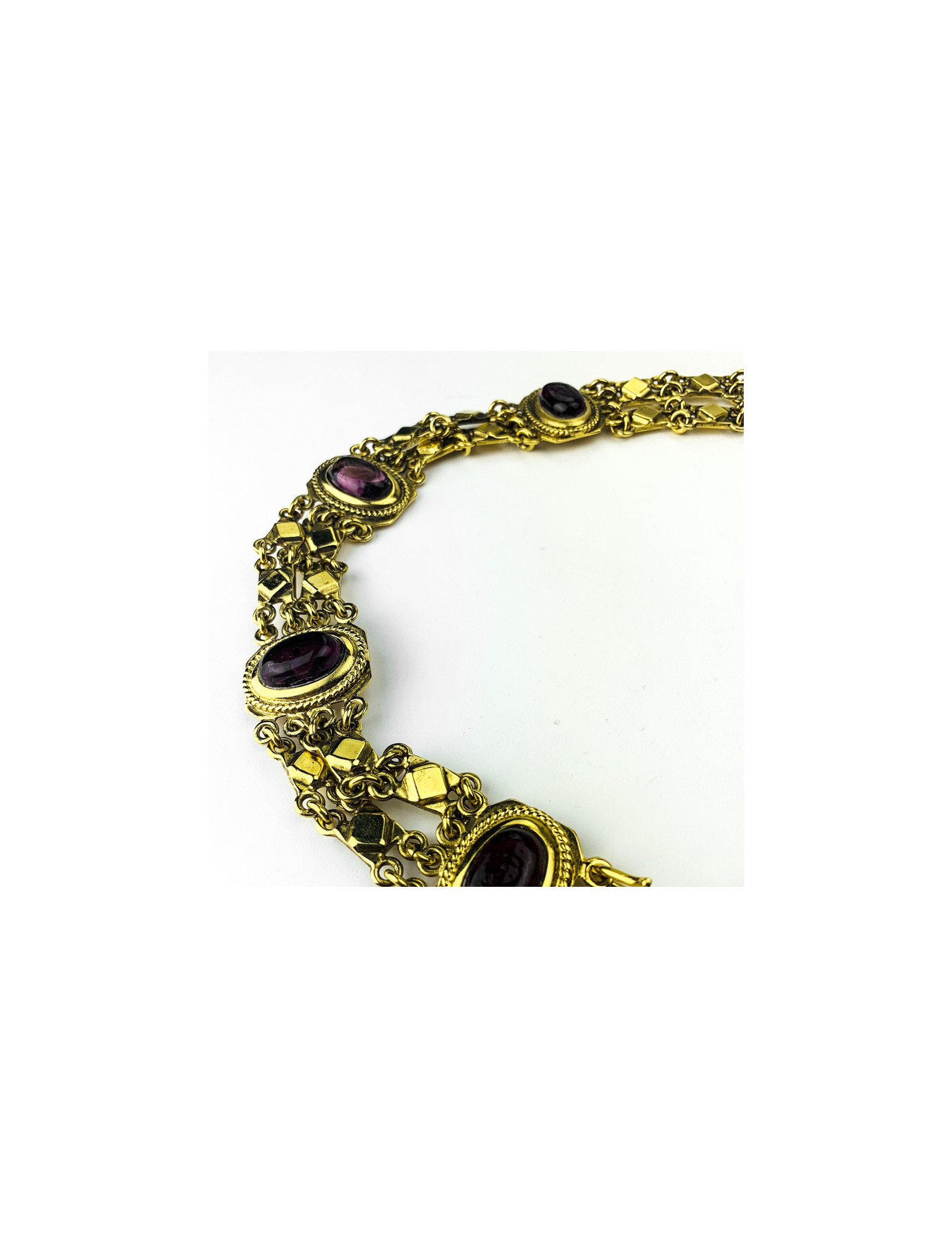 Last items in stock BELTS CHANEL Vintage couture belt CHANEL 32692 1,250.00 € CHANEL Vintage couture belt Condition : goodMade in FranceGender : womanMaterials : metal, resinColors : gold, light pinkMeasurements : length 69 cm, width 1,5 cm, chain 9 cm, pendant diameter 2,5 cmStamp : noyear : 80'sDetail : Couture collection, small round pendant in pink resin with lion's head, metal clasp slightly oxidized Add to cart