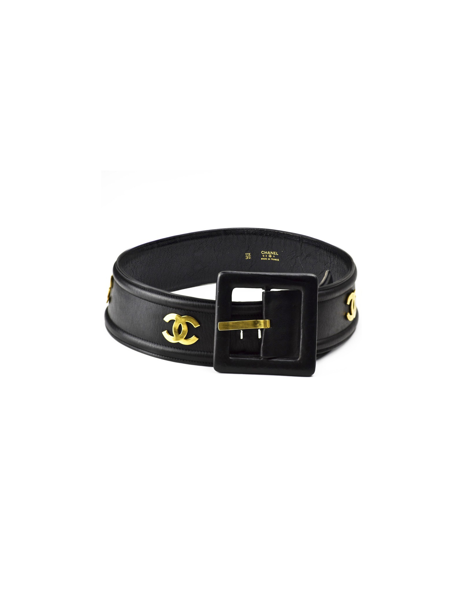 BELTS CHANEL vintage gilded metal and plaited brown leather belt CHANEL 20950 790.00 € CHANEL vintage gilded metal and plaited brown leather belt Condition: goodMaterials: leather, metalColors: gold, brownHardware: gold finish metalMeasurements: total length: 82.5cm, width: 2cmDetails: Beautiful Chanel belt in gilded metal interlaced with brown braided leather. Vintage belt. Good condition. The gilding has faded on the rings. Hook clasp. CC... Add to cart