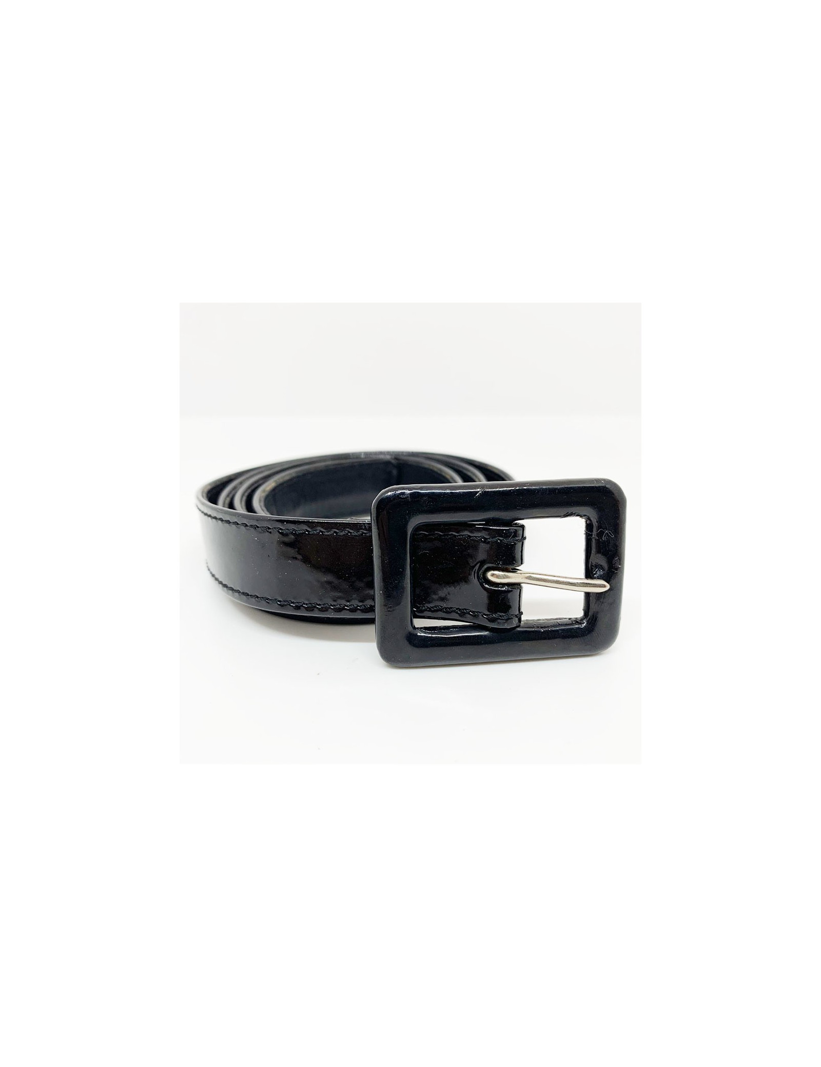 Last items in stock BELTS CHANEL silver glitter belt CHANEL 36839 600.00 € CHANEL narrow glitter belt size 36FR Condition : very goodMade in ItalyMaterials : leather, glitterColors : silver, redSize : 36FR/ 70cmHardware: palladium silver finish metalStamp : yesYear: Spring 2011Details : narrow belt with five holes, square buckle. Silver glitter on a red background Add to cart