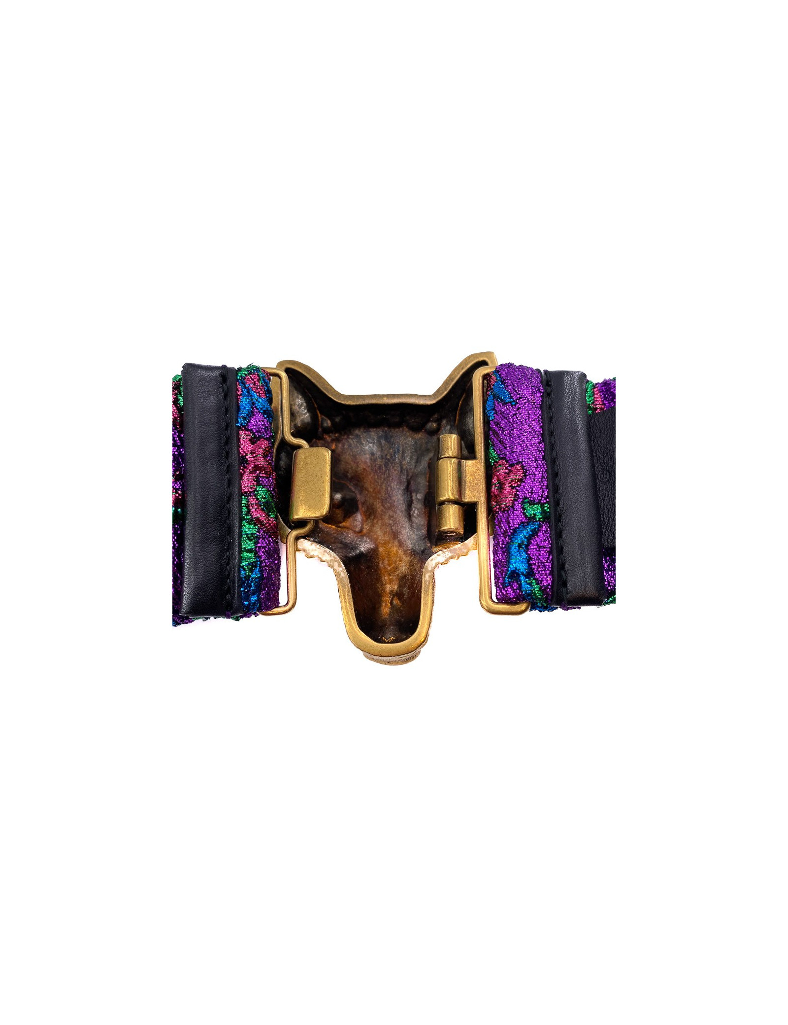 Last items in stock BELTS CHANEL Couture molten glass belt CHANEL 32686 2,570.00 € CHANEL Couture handmade belt Condition : very goodMade in FranceGender : womanMaterials : metal mesh, molten glassColors : gold, amethyst, emeraldSize: 75FRMeasurements : total length 75 cm (non-adjustable) x height 5 cm, molten glass brooch : 5 x 5 cmStamp : yesYear : 1996Hardware : gold finish metalDetails : hook clasp, large two-tone molten glass... Add to cart
