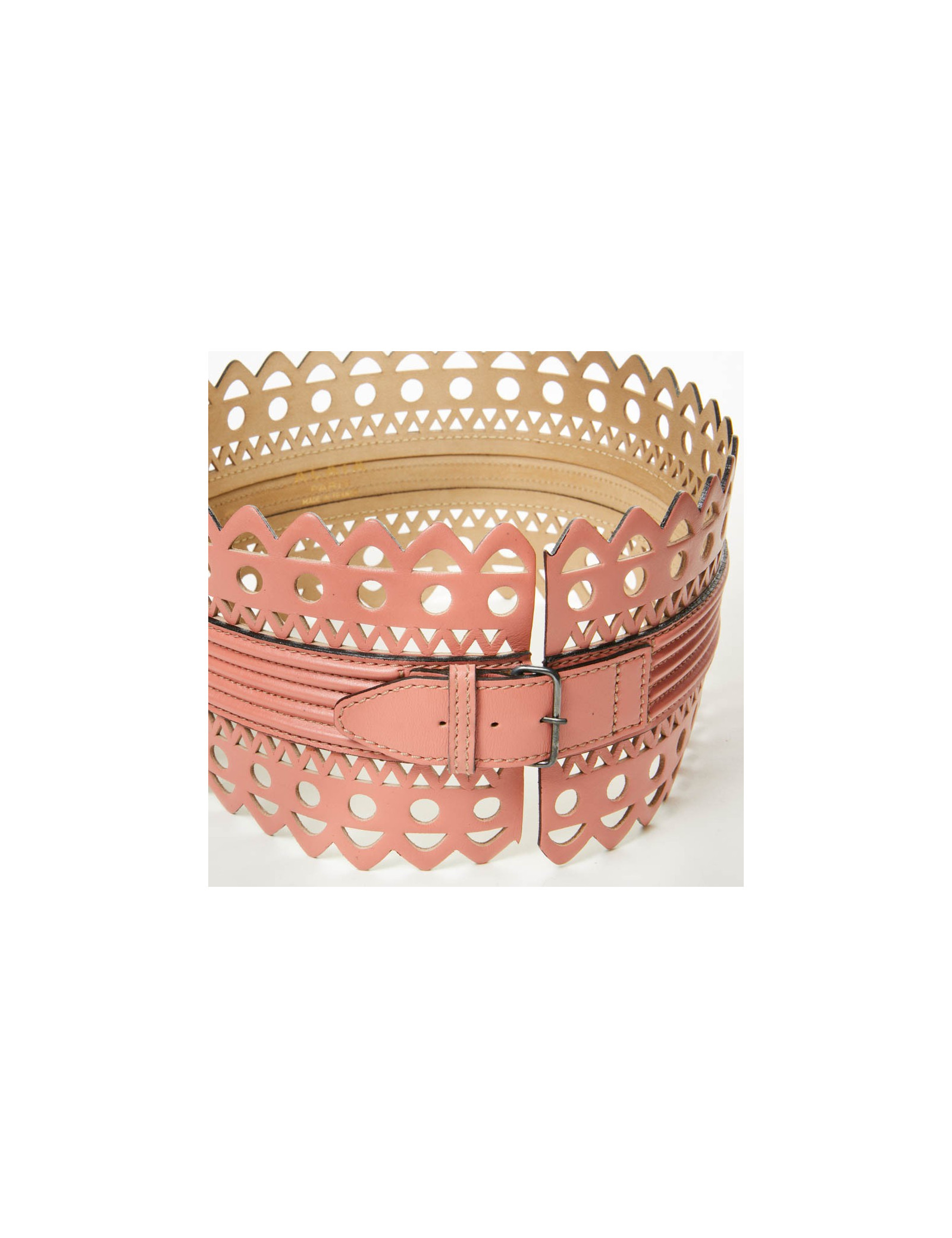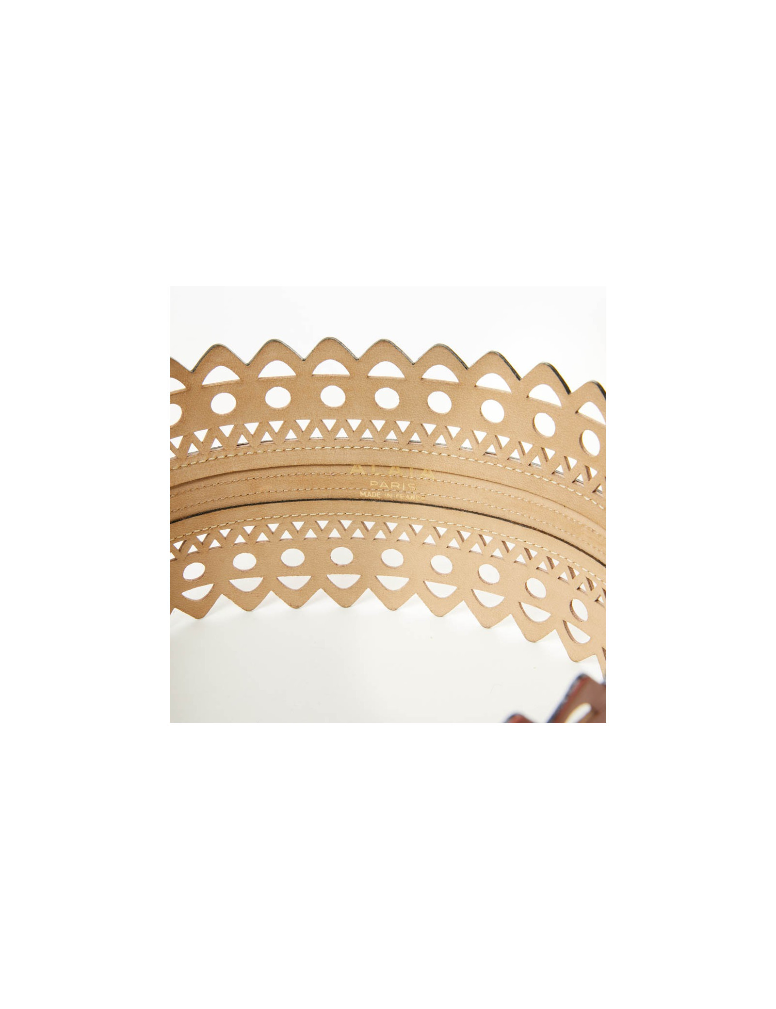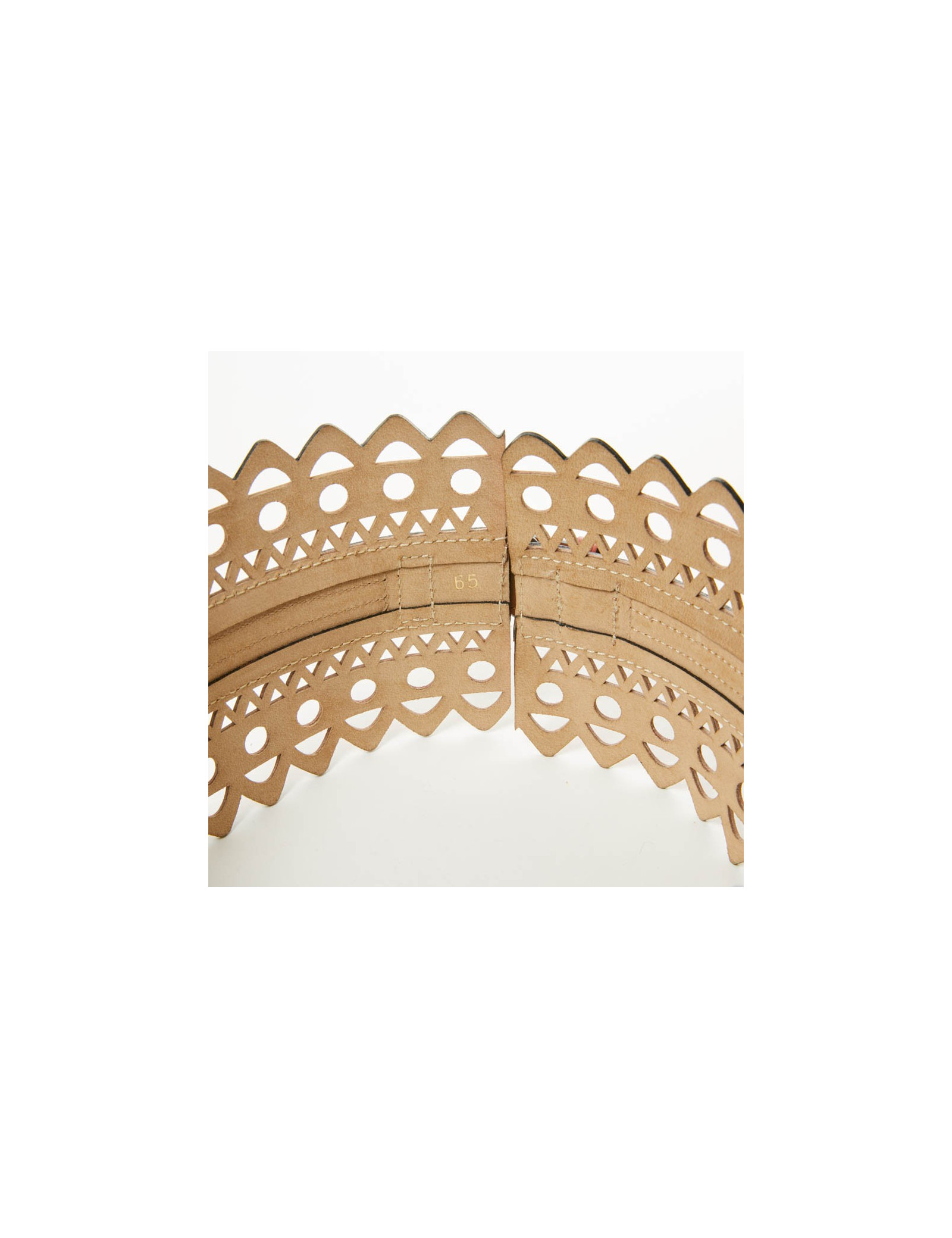 Sold BELTS Belt ALAïA T80 calf-black velvet ALAIA 15380 790.00 € Beautiful! Belt Azzedine Alaïa's black color, in suede covering a beige leather leaving white pea - size 80- In perfect condition Length: 89.5 cm, height: 7 cm This article will be delivered with his dustbag as well as in its original box. View