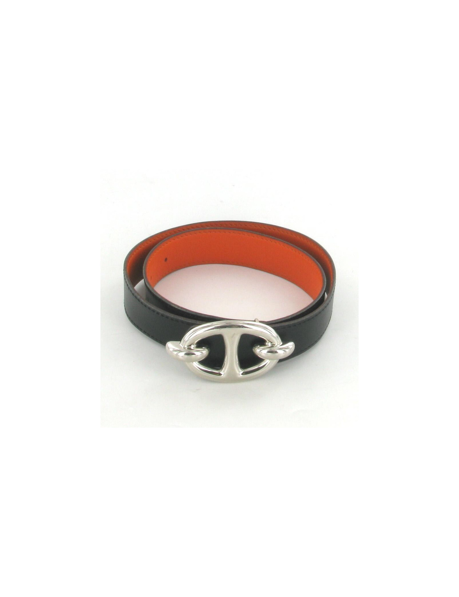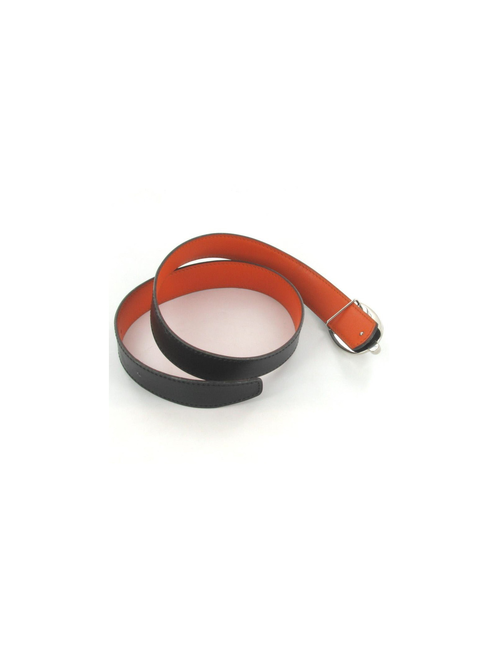 Belt HERMES closing GRANVILLE leather black/orange T 80
