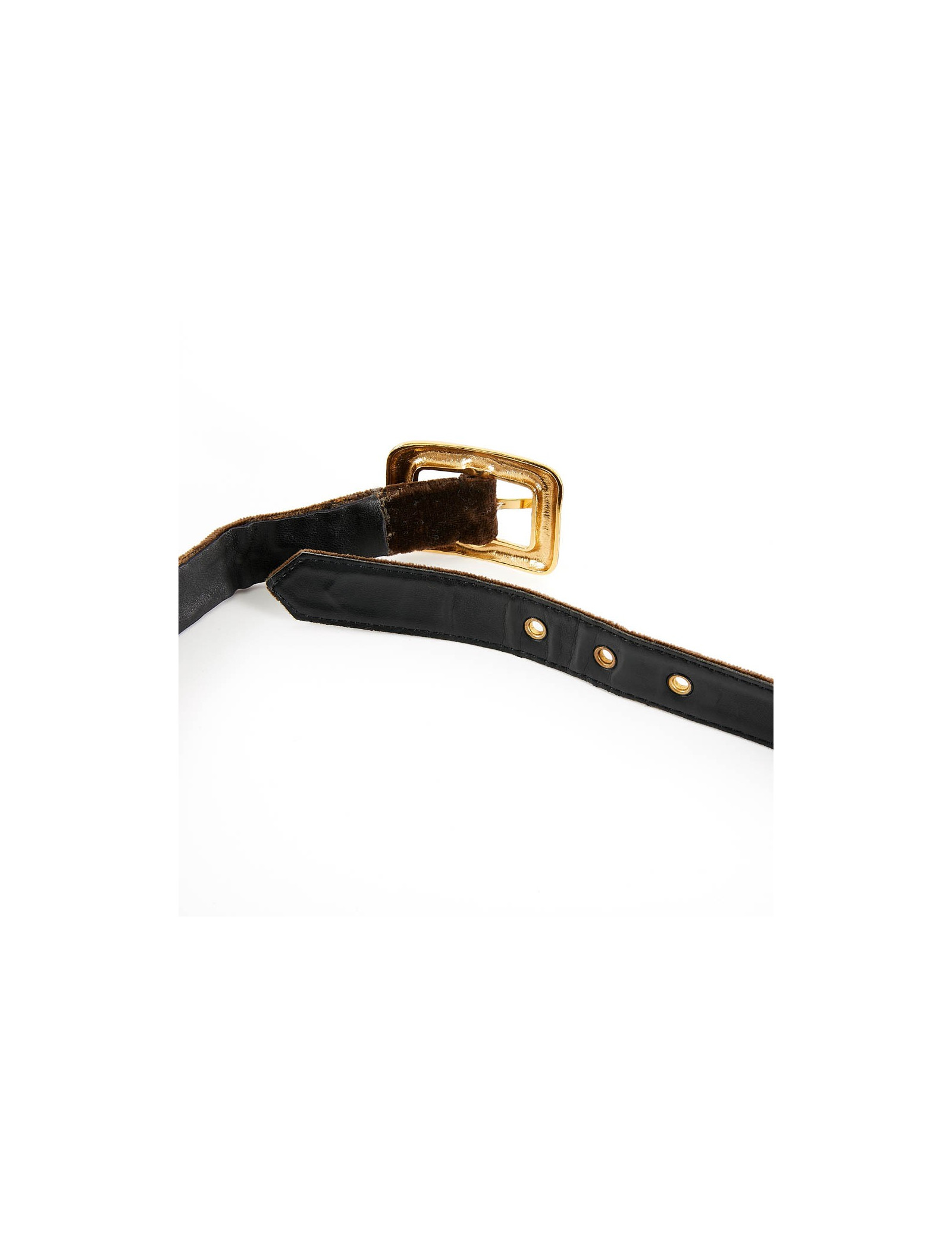 Last items in stock BELTS CLAUDE MONTANA black belt size 75FR CLAUDE MONTANA 34668 350.00 € CLAUDE MONTANA Vacher belt size 75FR Condition : very goodMaterial : suedeLining : leatherColor : blackMeasurements : length at the last hole 76 cm x width 7.5 cmSize : 75Hardware : gold finish metalStamp : yesDetails : 3 double holes, a series of gilded studs. Add to cart