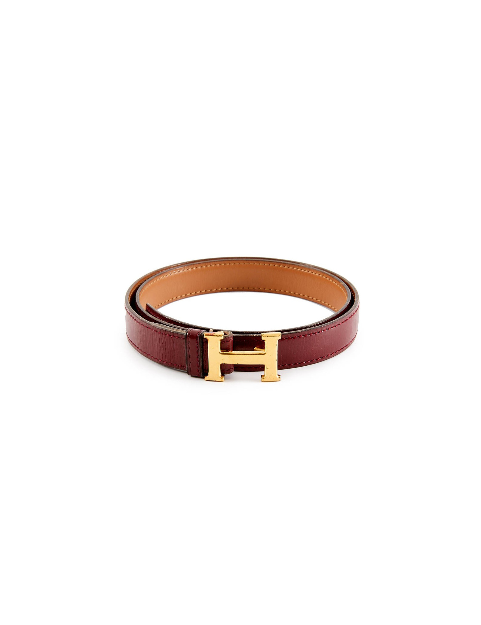 New Last items in stock BELTS Belt H vintage Hermès golden HERMES 40009 490.00 € Hermès reversible H belt from 2011, combining timeless style with everyday versatility. Crafted from quality leather, it offers two distinct looks: a clean white side for a classic feel, and a vibrant blue side for a bolder touch.The iconic gold-tone "H" buckle instantly defines the piece. Simple yet unmistakable, it reflects the craftsmanship and strong... Add to cart