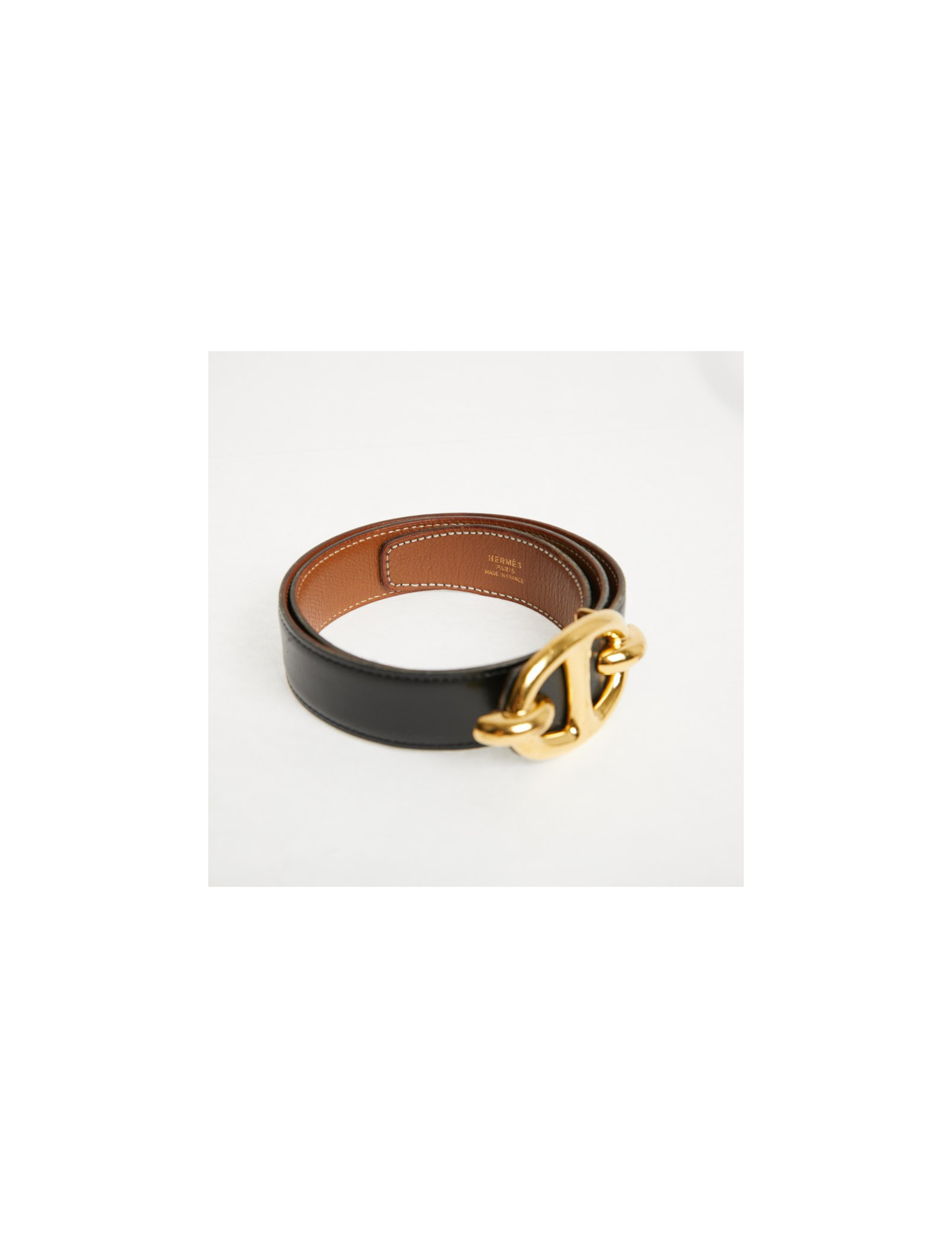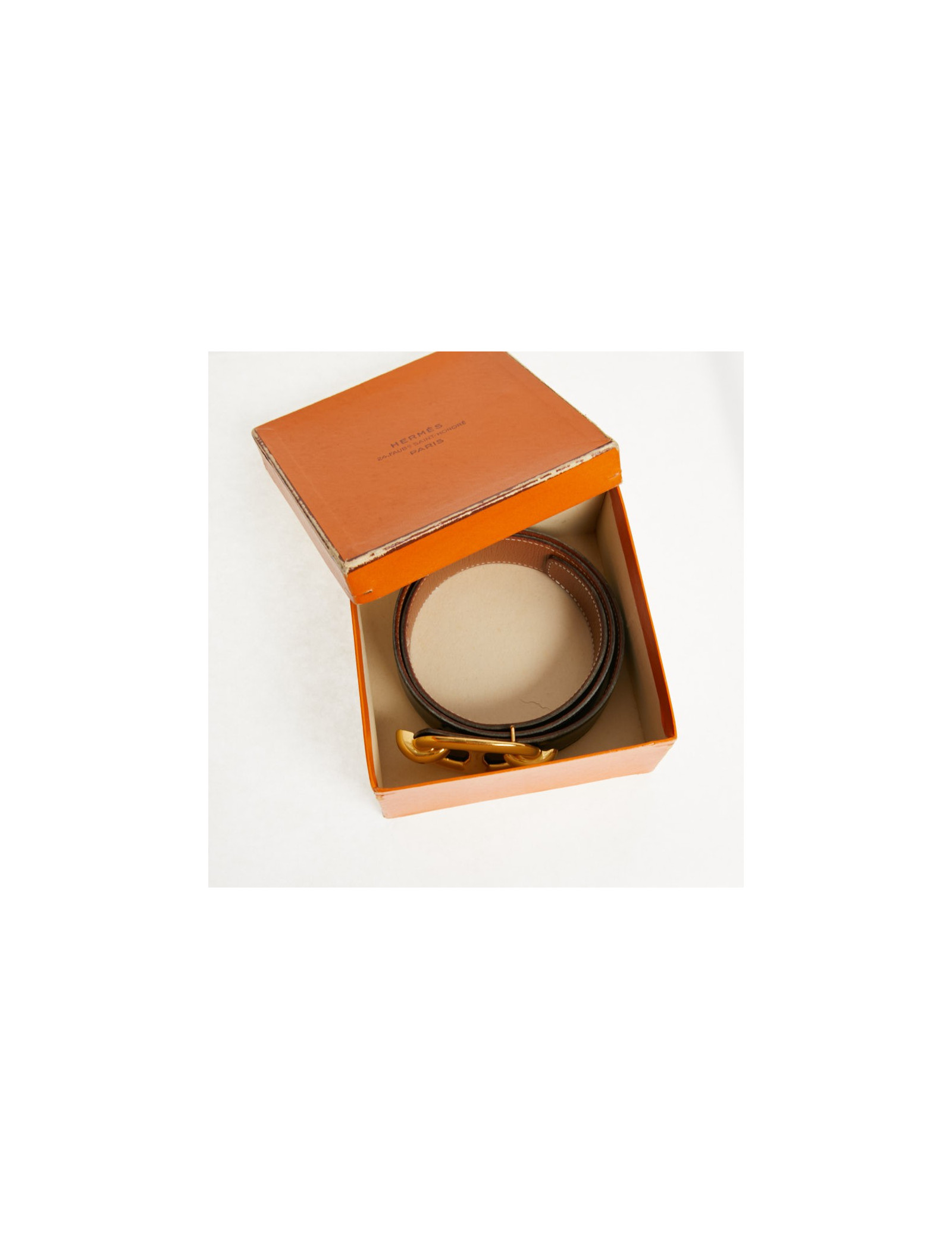 Last items in stock BELTS HERMES reversible 'H' belt in black box leather size 65 HERMES 19842 300.00 € HERMES reversible belt in black box leather and grained leather. Size 65. Buckle H in brushed silver metal. Never worn. S from private sales, stamp C in a square. Protective film on loop. Dimensions: width: 3,3 cm - length: at the first hole: 62,5 - middle: 65 - at the last hole: 67,5 cm Will be delivered in a HERMES pouch Add to cart