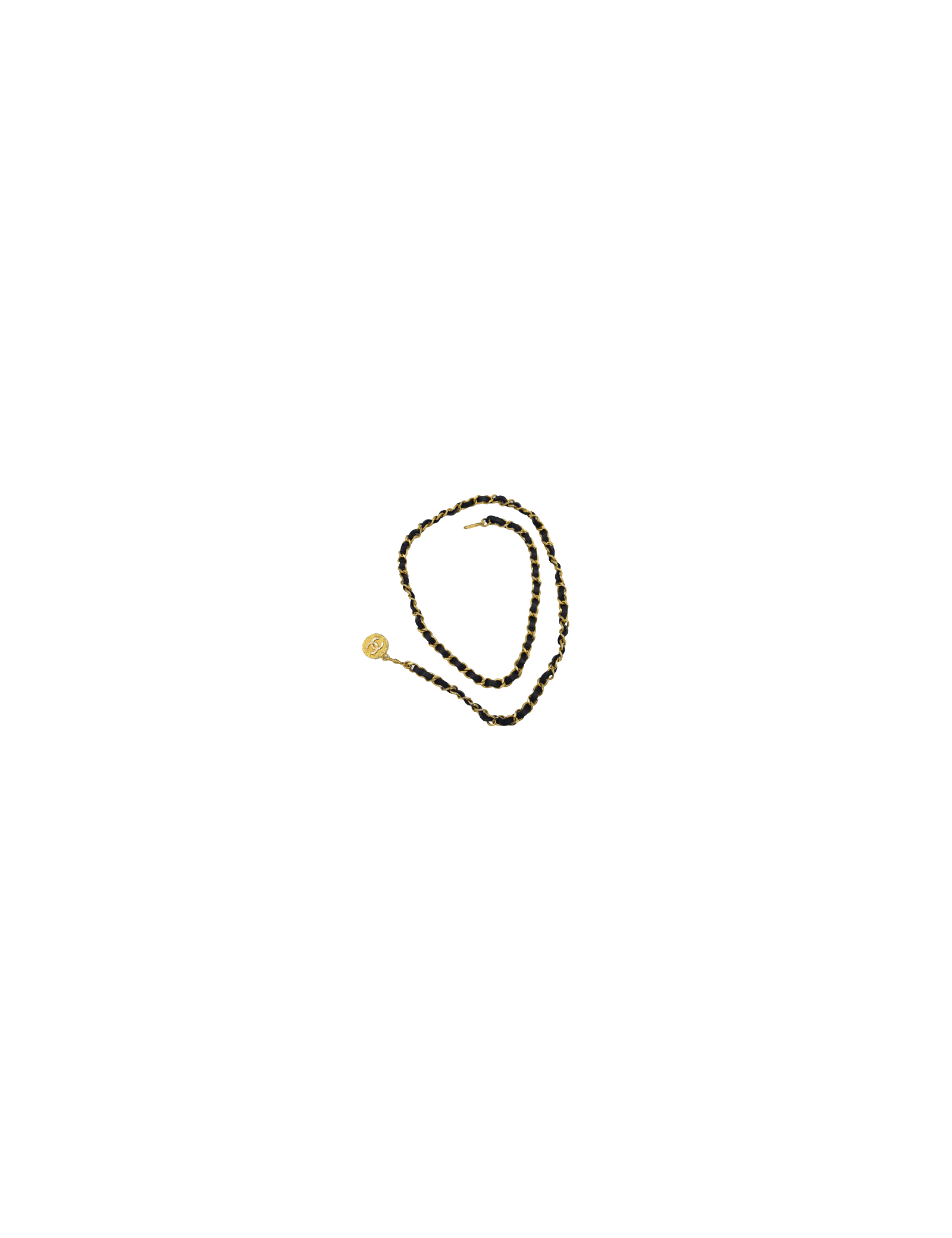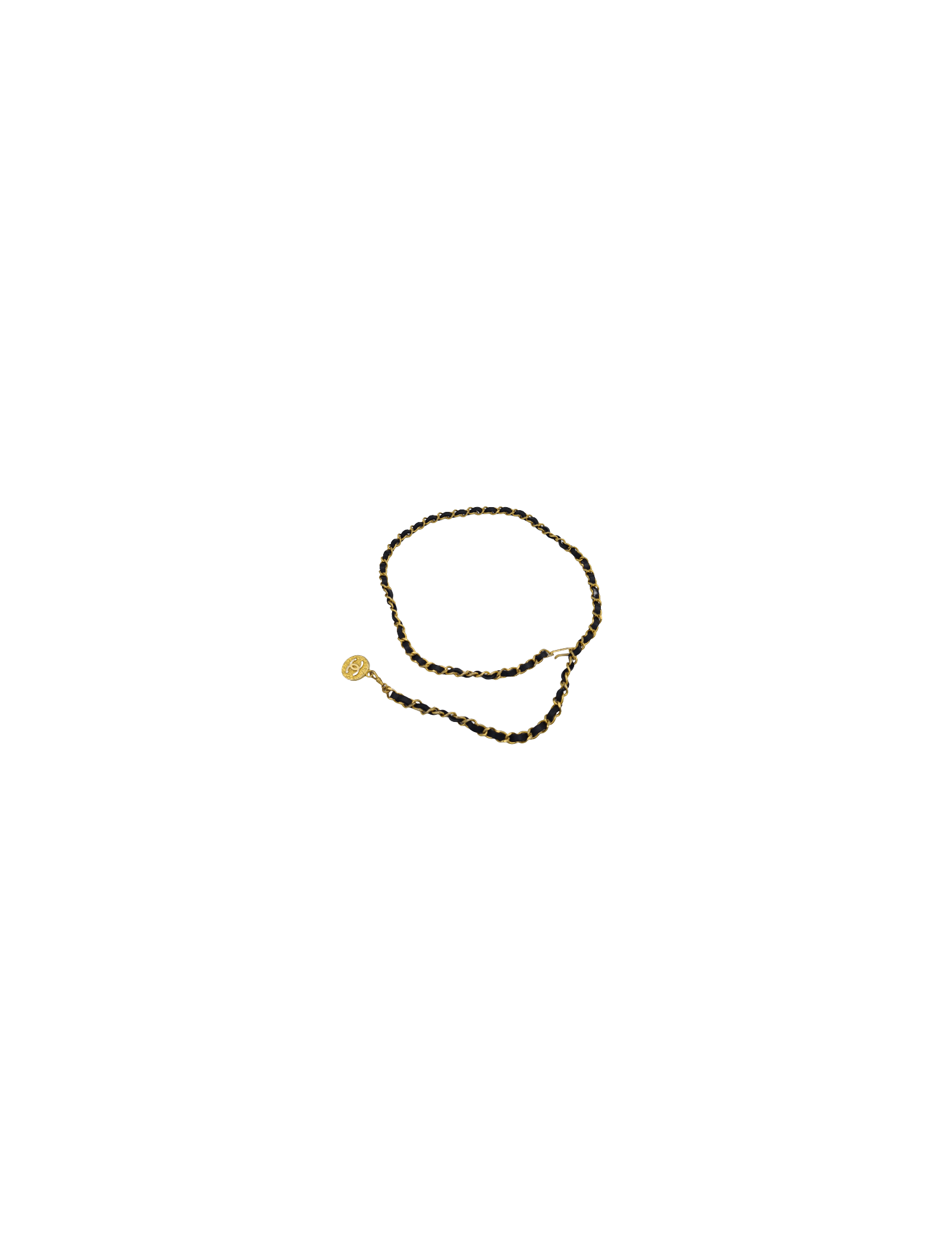 BELTS Vintage black and gold belt CHANEL 36127 150.00 € Vintage gilded belt Condition : very goodMaterials : grosgrain fabric covered with velvet panels and gold embroideryColors : gold, blackSize : 75FRMeasurements : width 5 cmHardware: palladium silver finish metalStamp : unsigned pieceYear : vintageDetails : palladium silver finish buckle Add to cart