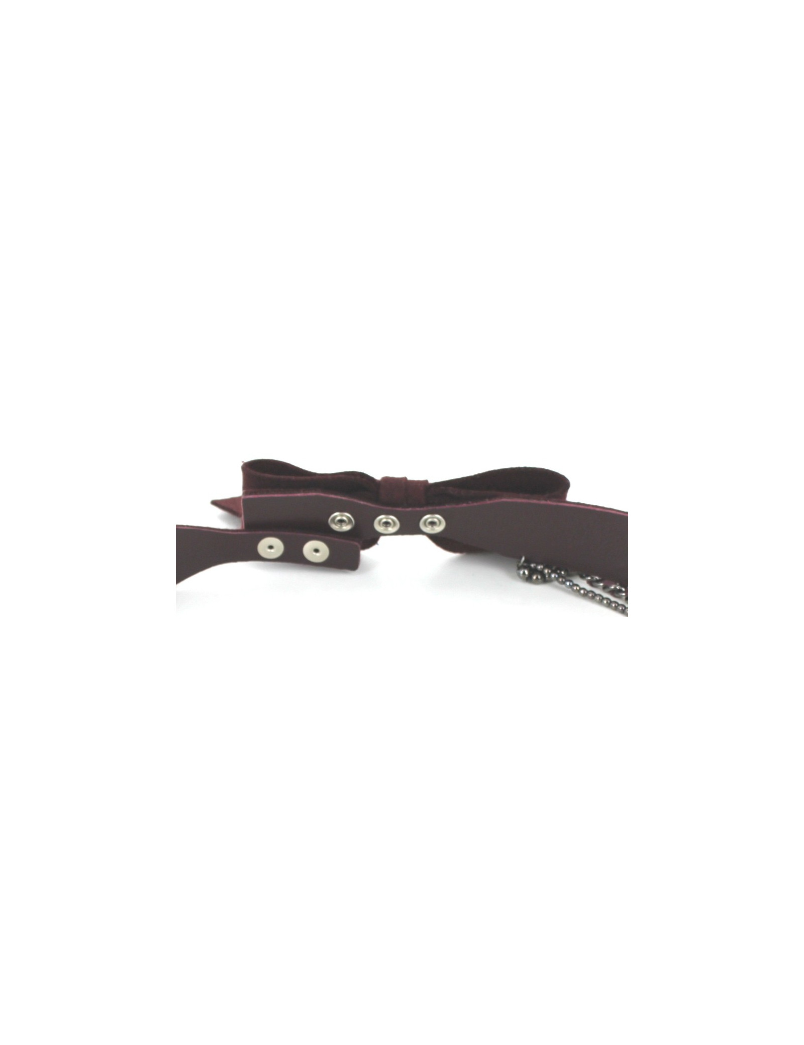 Belt CHANEL felt plum color. Collection autumn-winter 2002. Very elegant, this belt is embellished a lovely knot and chains: two black silver metal beads and a plum satin interlaced chain. Three notches adjustment length by snaps. Made in France.