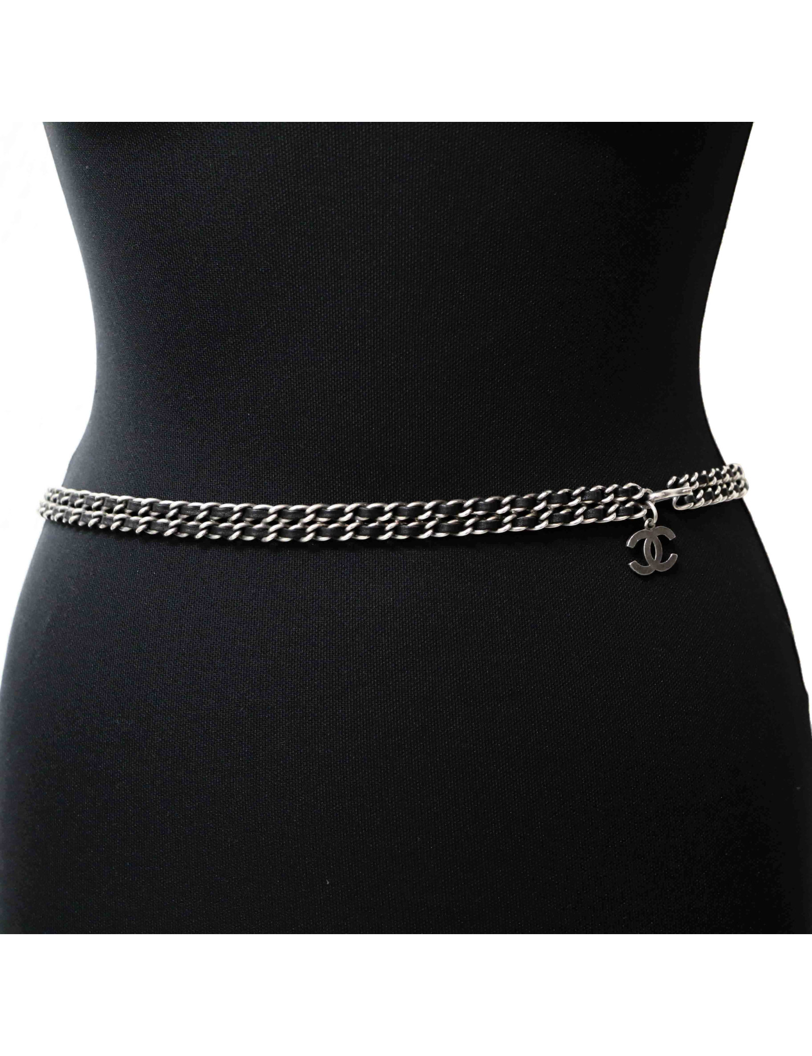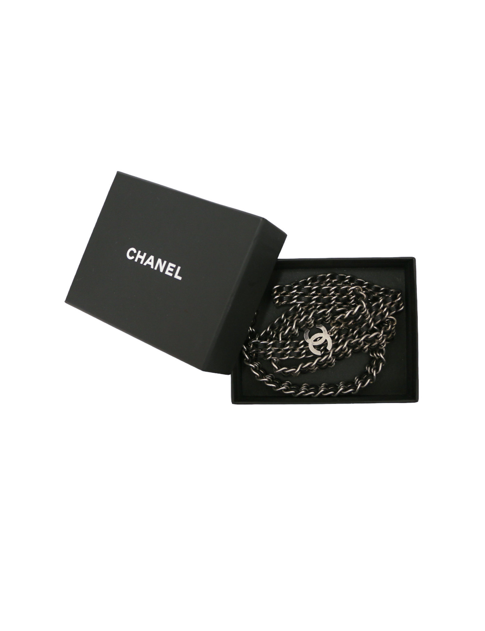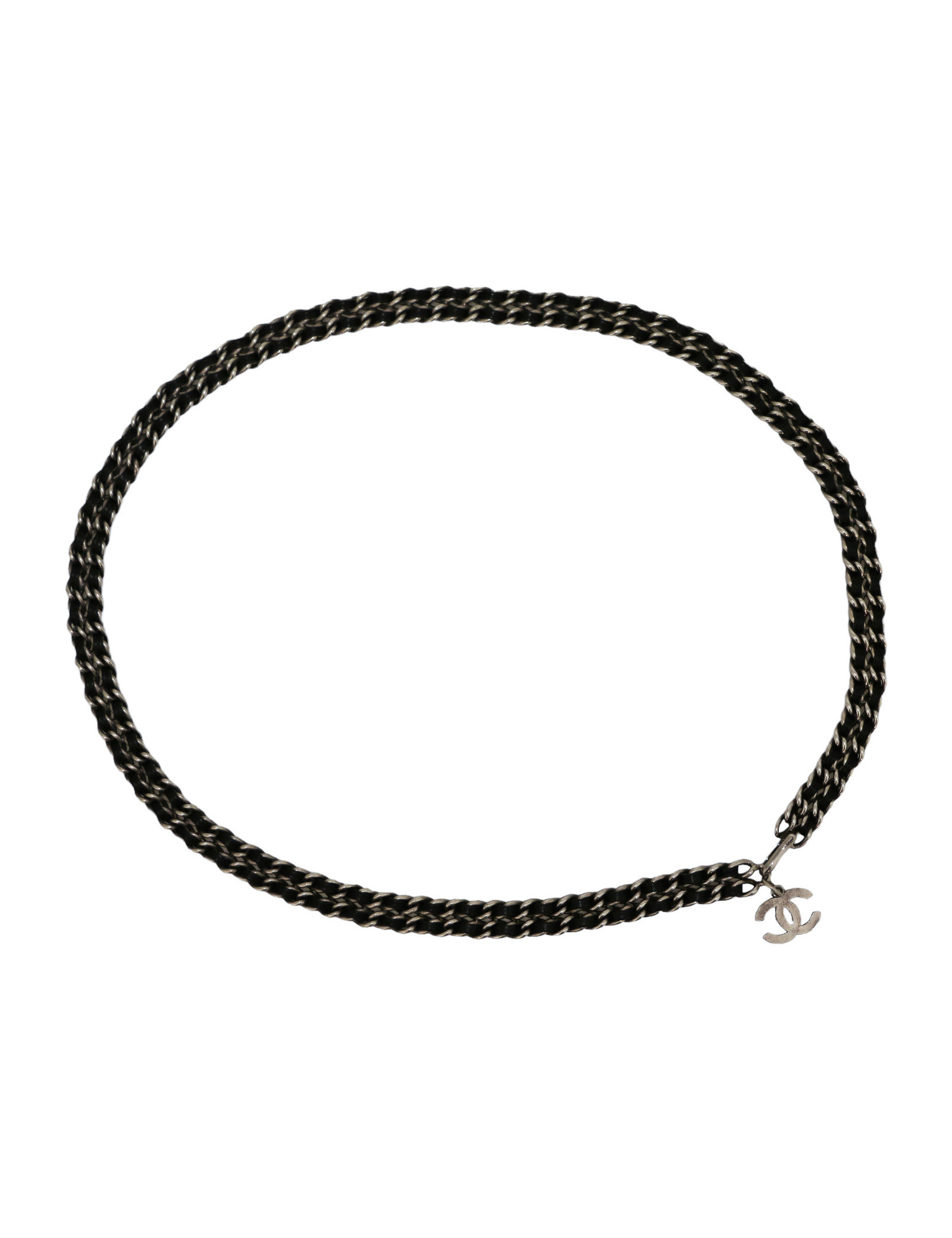 Details : metal belt interlaced with leather. Hook clasp and CC charm.