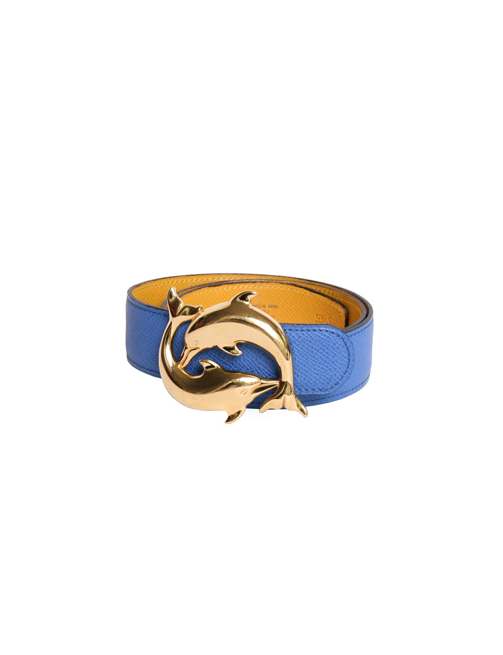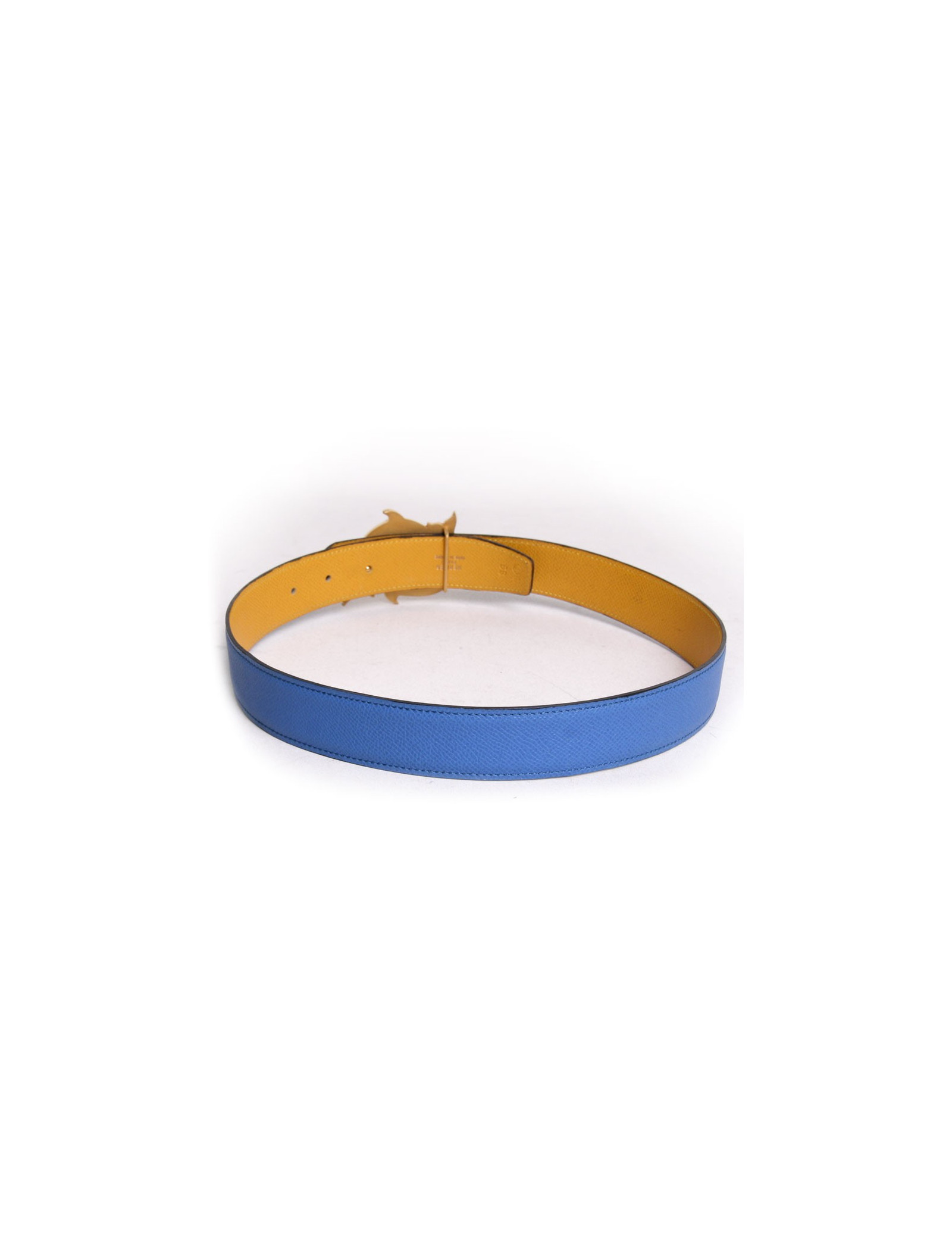 Belt HERMES t 68 "Dolphins" reversible blue and yellow vintage