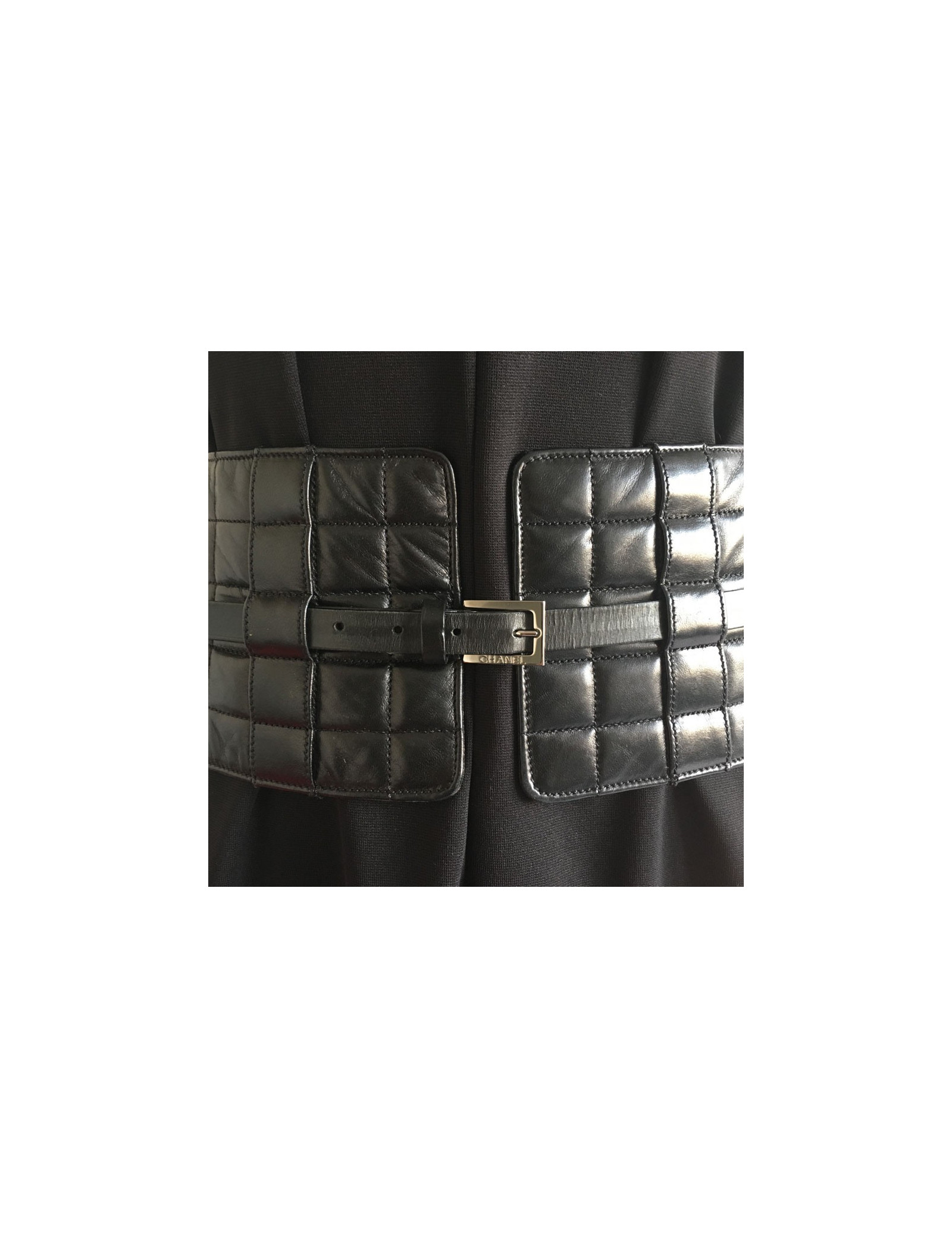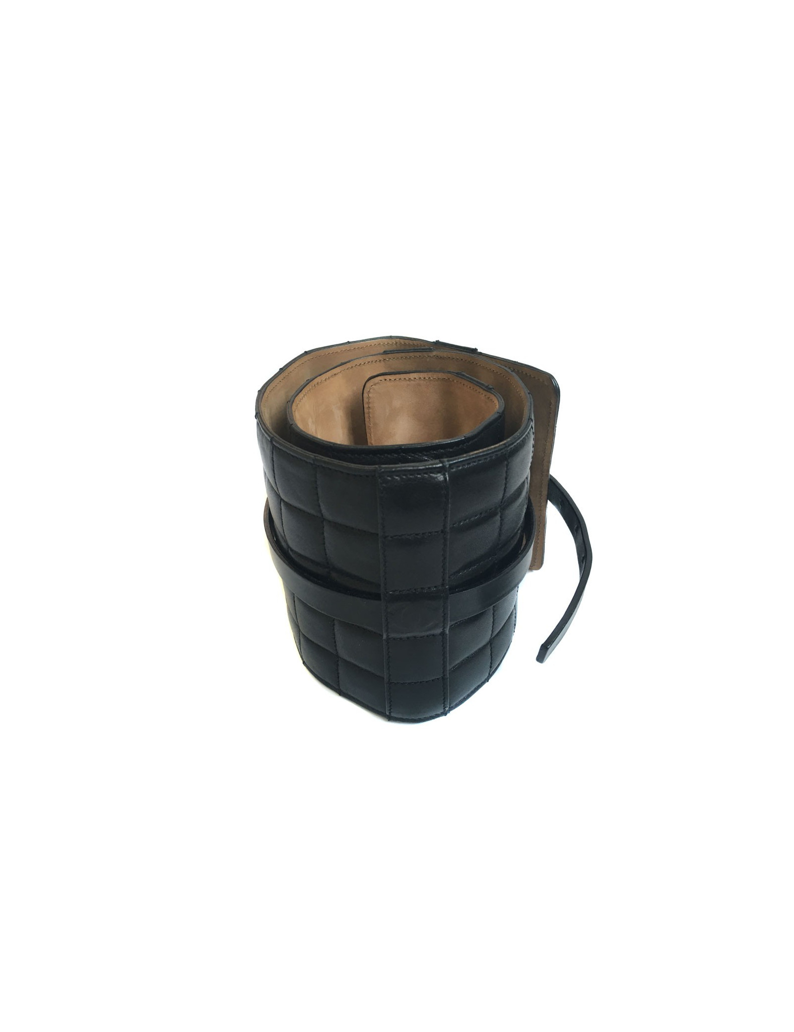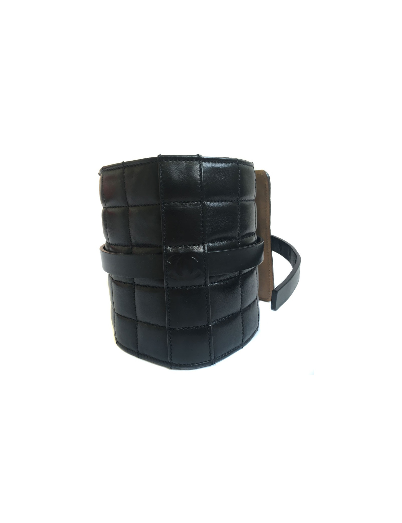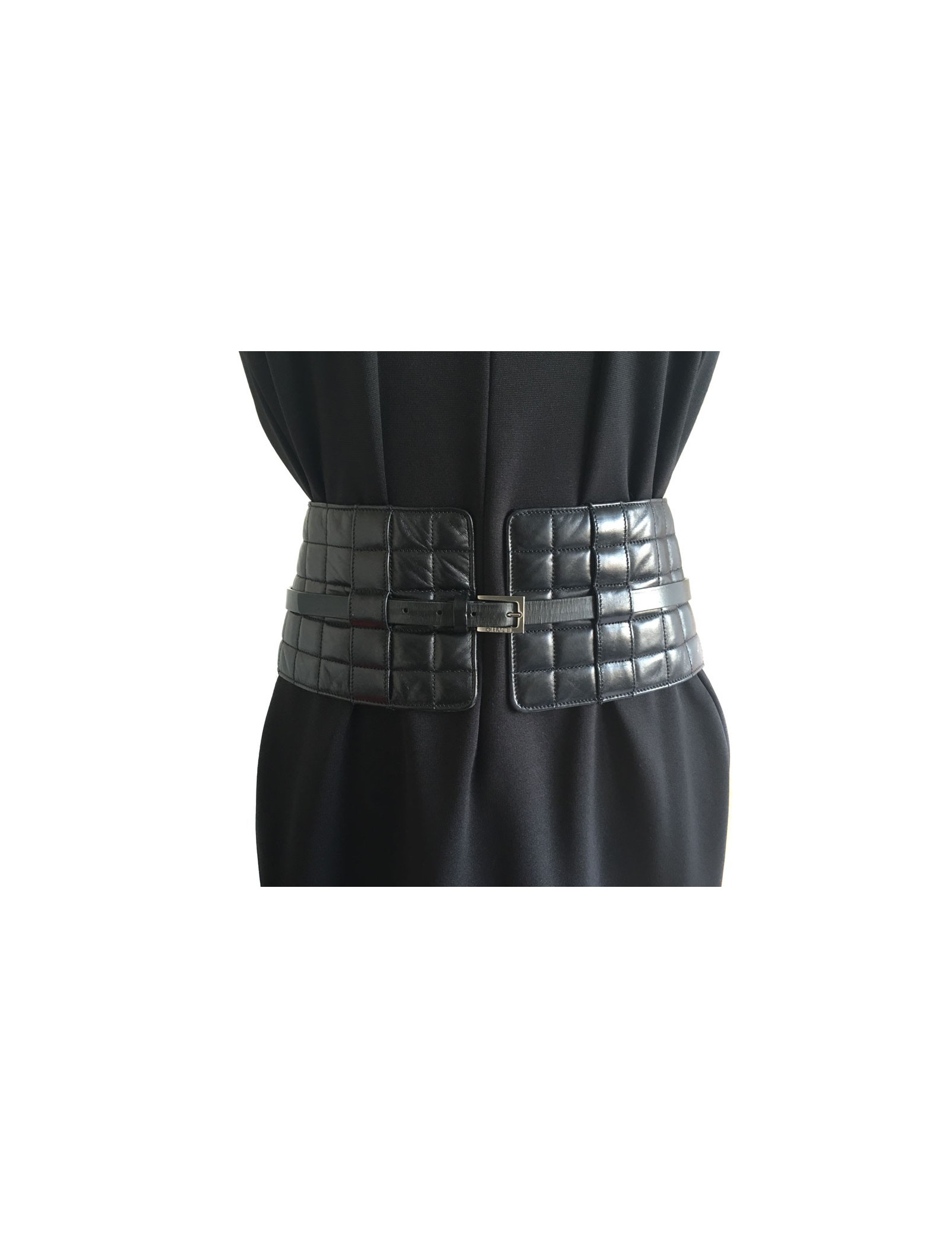 CHANEL black quilted leather belt