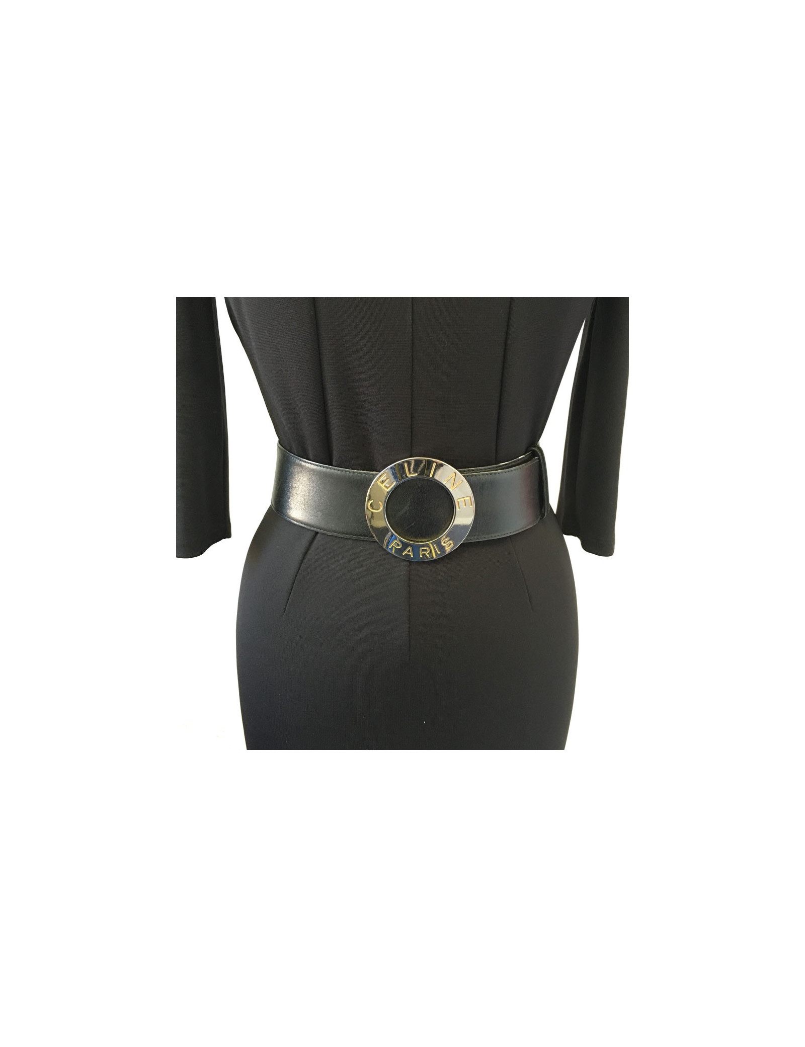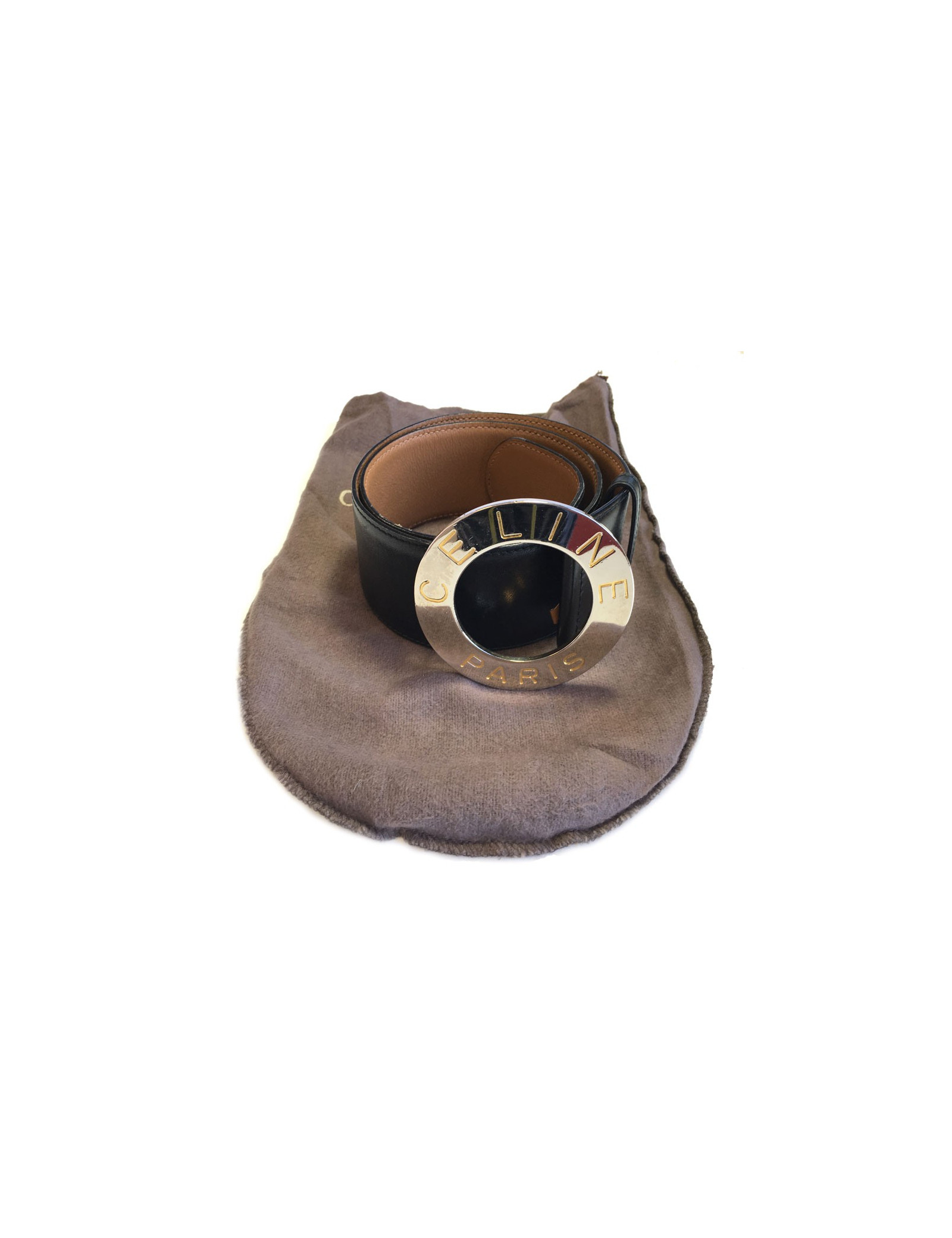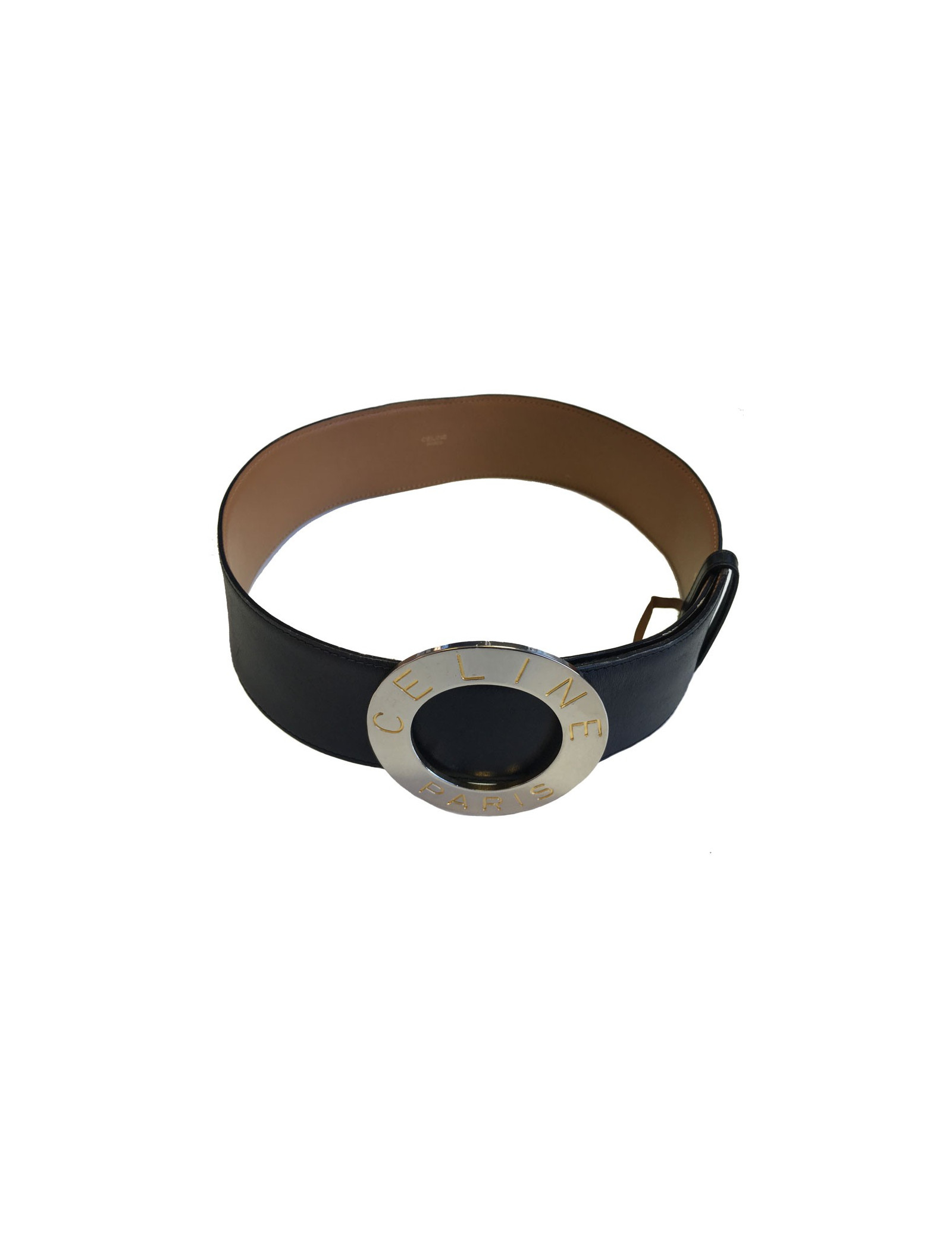 Very beautiful CELINE black leather belt and silver metal buckle. Size 65