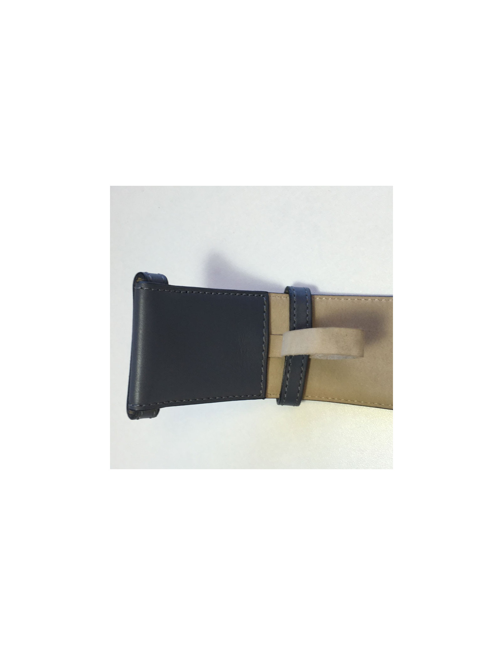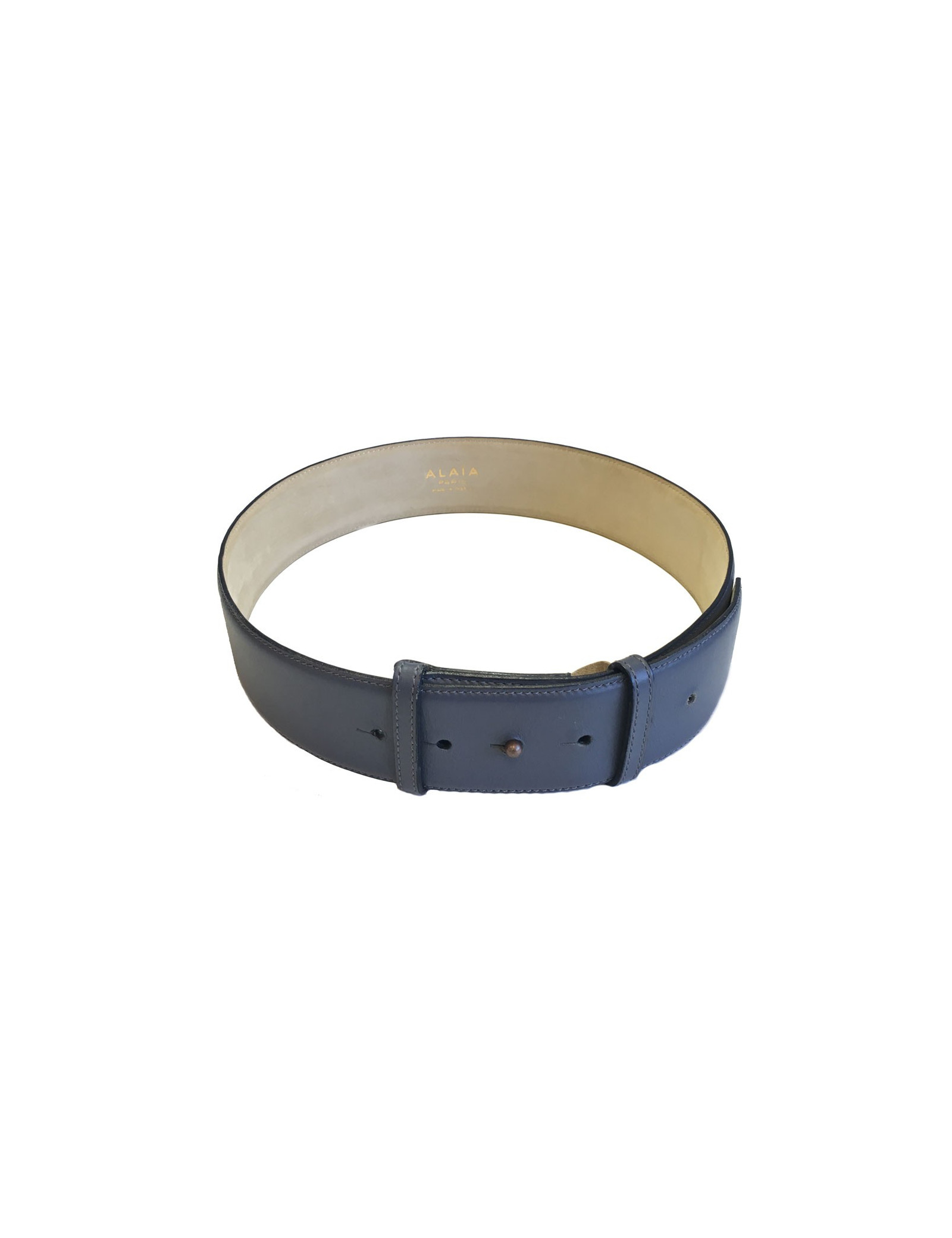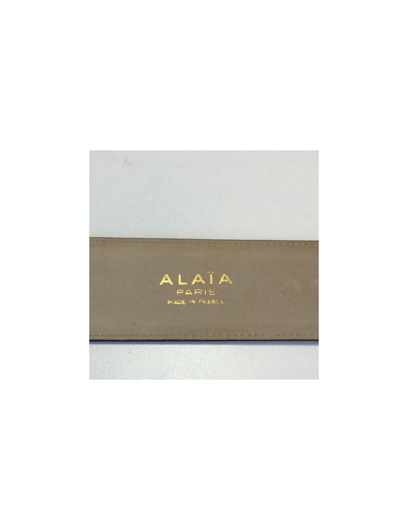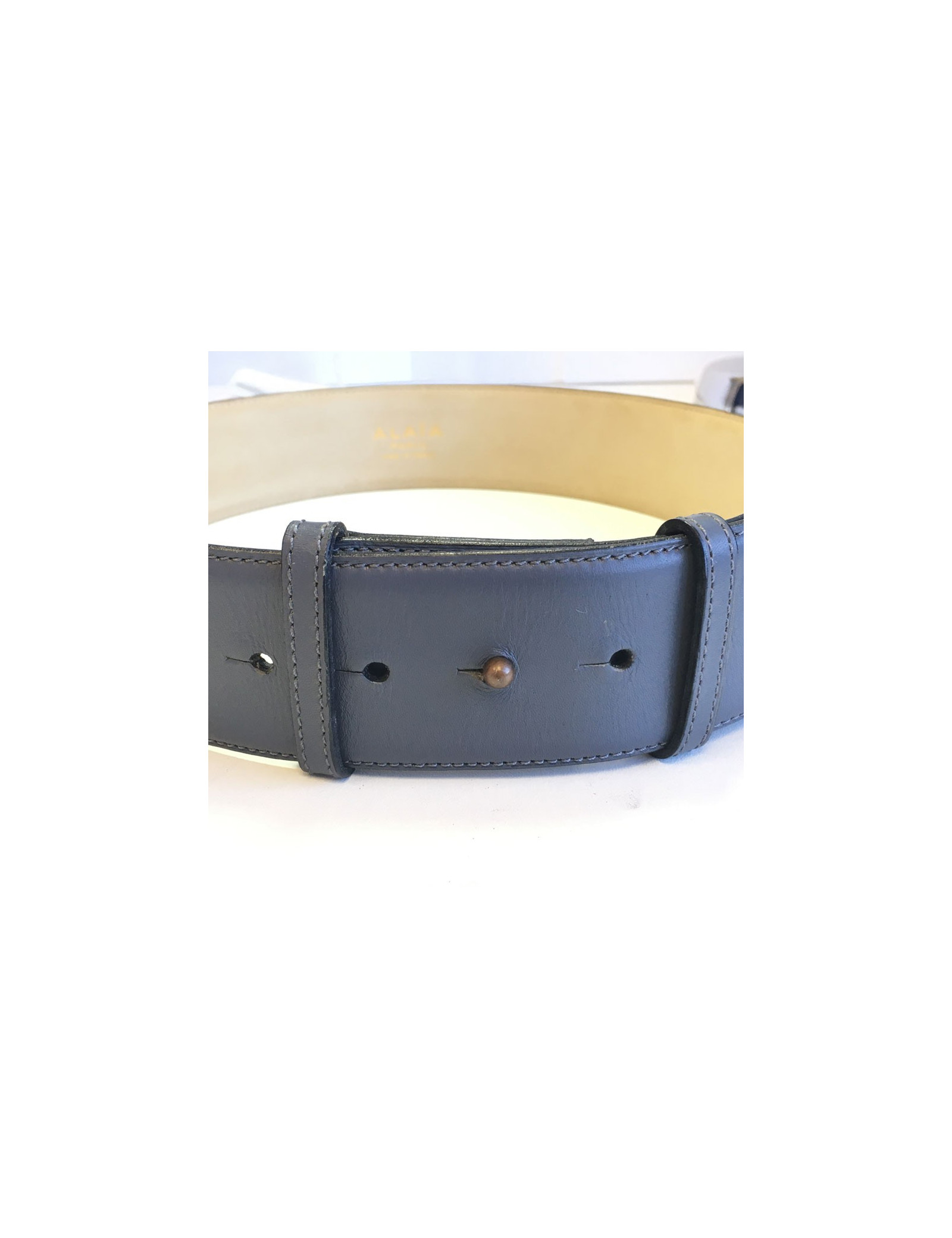 ALAÏA belt in dark gray leather, beige suede interior. Size 75FR. In very good condition. A tiny scratch on the gray leather (see photo).