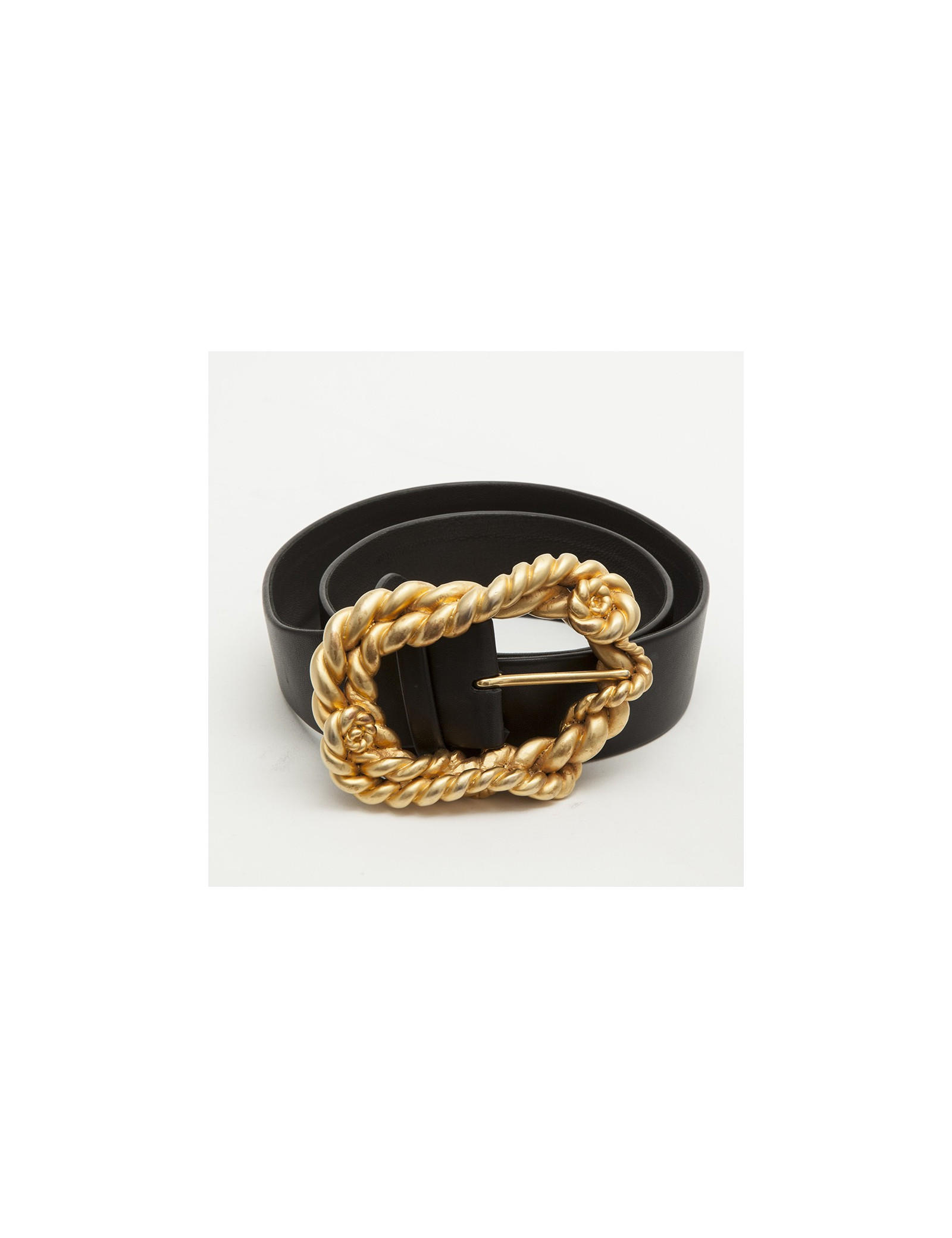 Last items in stock BELTS CHANEL black and gold belt MOSCHINO 25227 199.00 € MOSCHINO black and gold belt, size 65 Condition: goodMaterials: leather, metalColors: black, goldMeasurements: Length at the first hole (tightest): 63 cmLength at the second hole: 65 cmLength at the last hole:68 cmHeight: 5.5 cmSize: 65 AUTHENTICITY CERTIFIED by our expert team since 1998. Add to cart