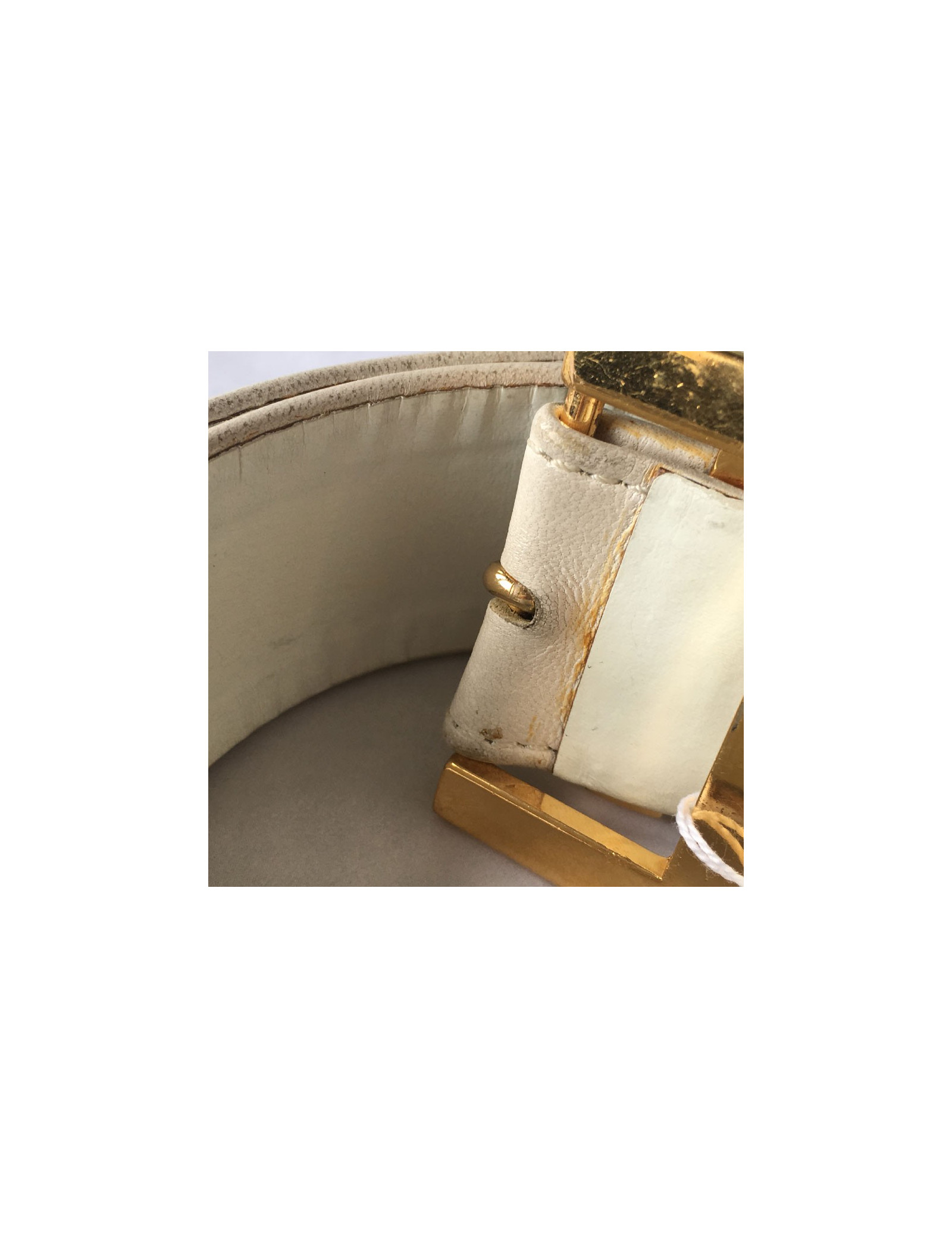 CHANEL vintage belt in white leather and gilded metal chain