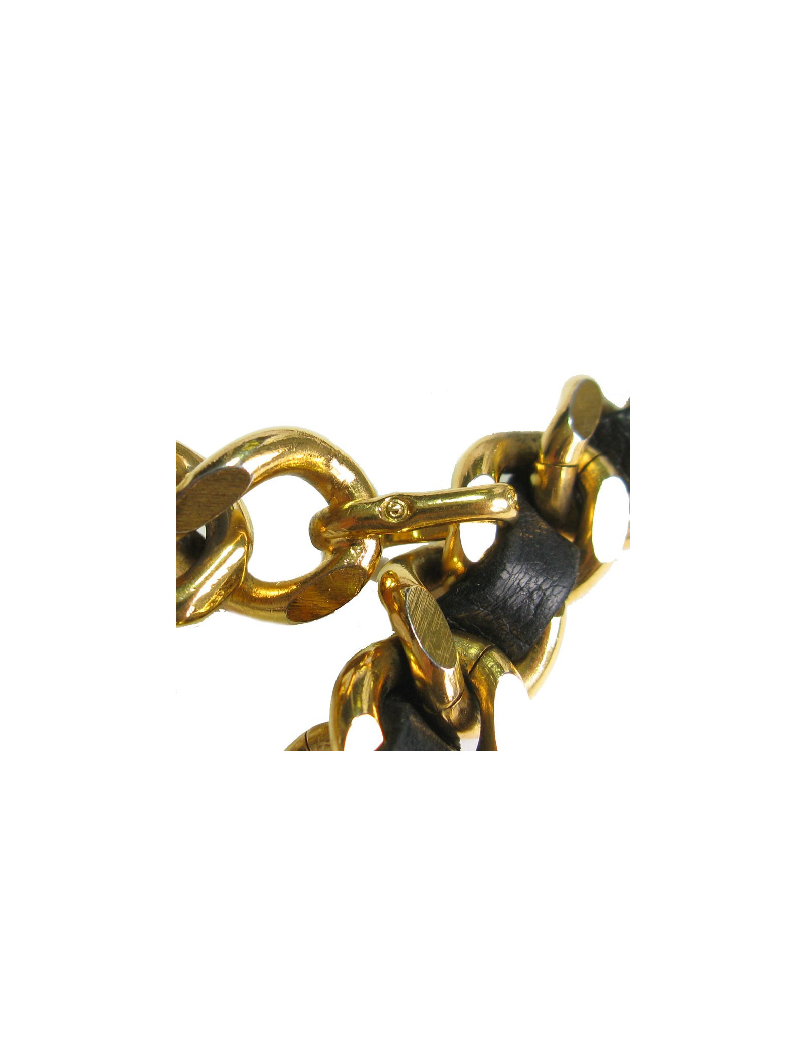 xxx Ceinture CHANEL en chaine dorée et cuir noir vintage