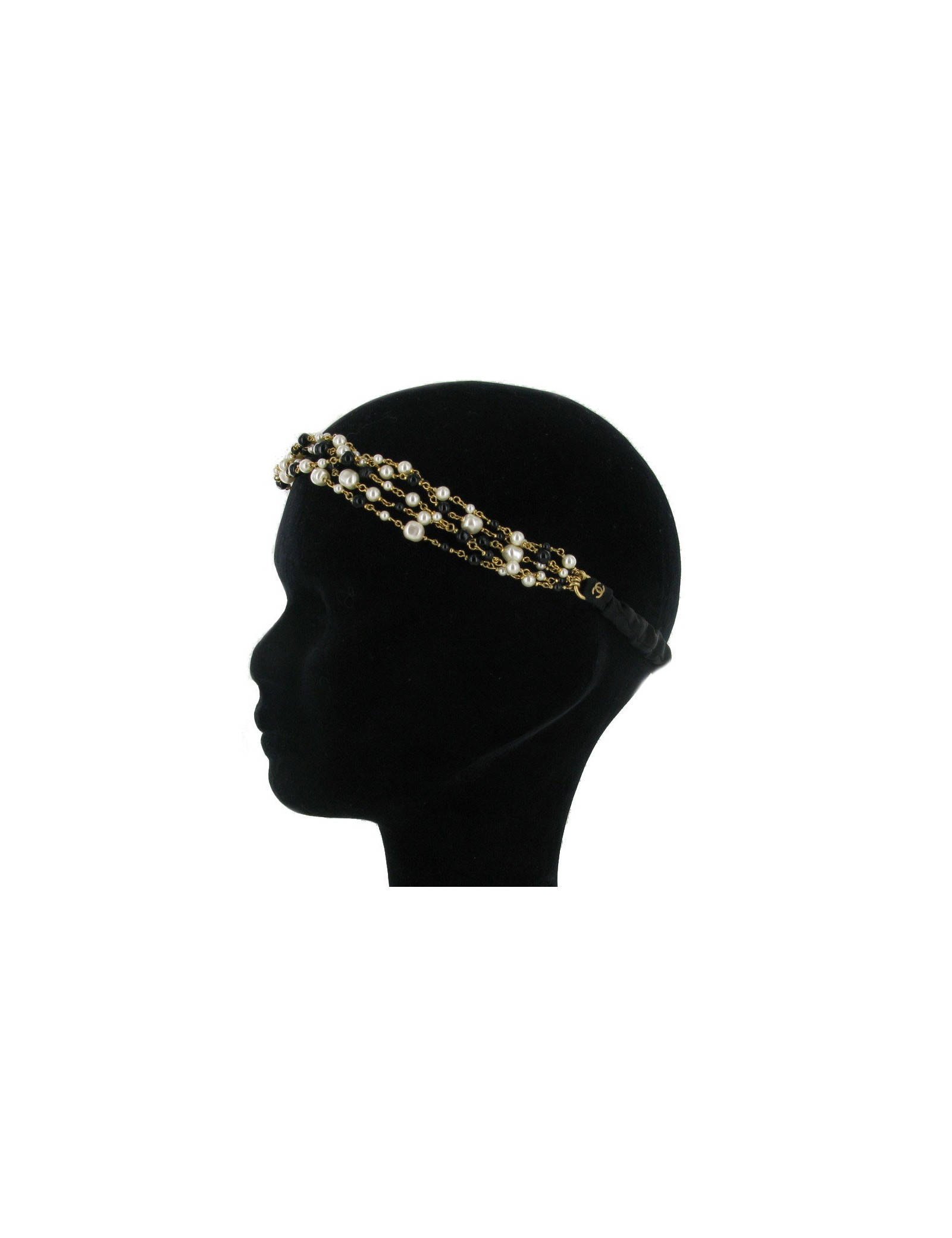 Headband CHANEL with 5 rows of pearls black and Pearly