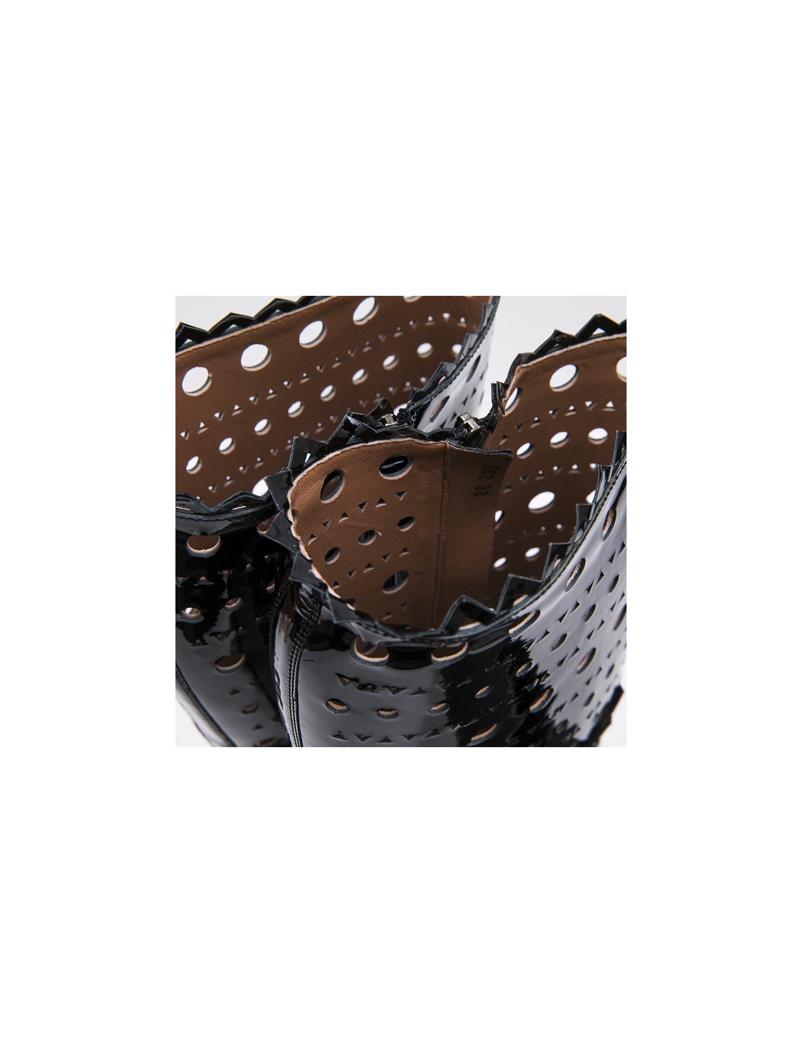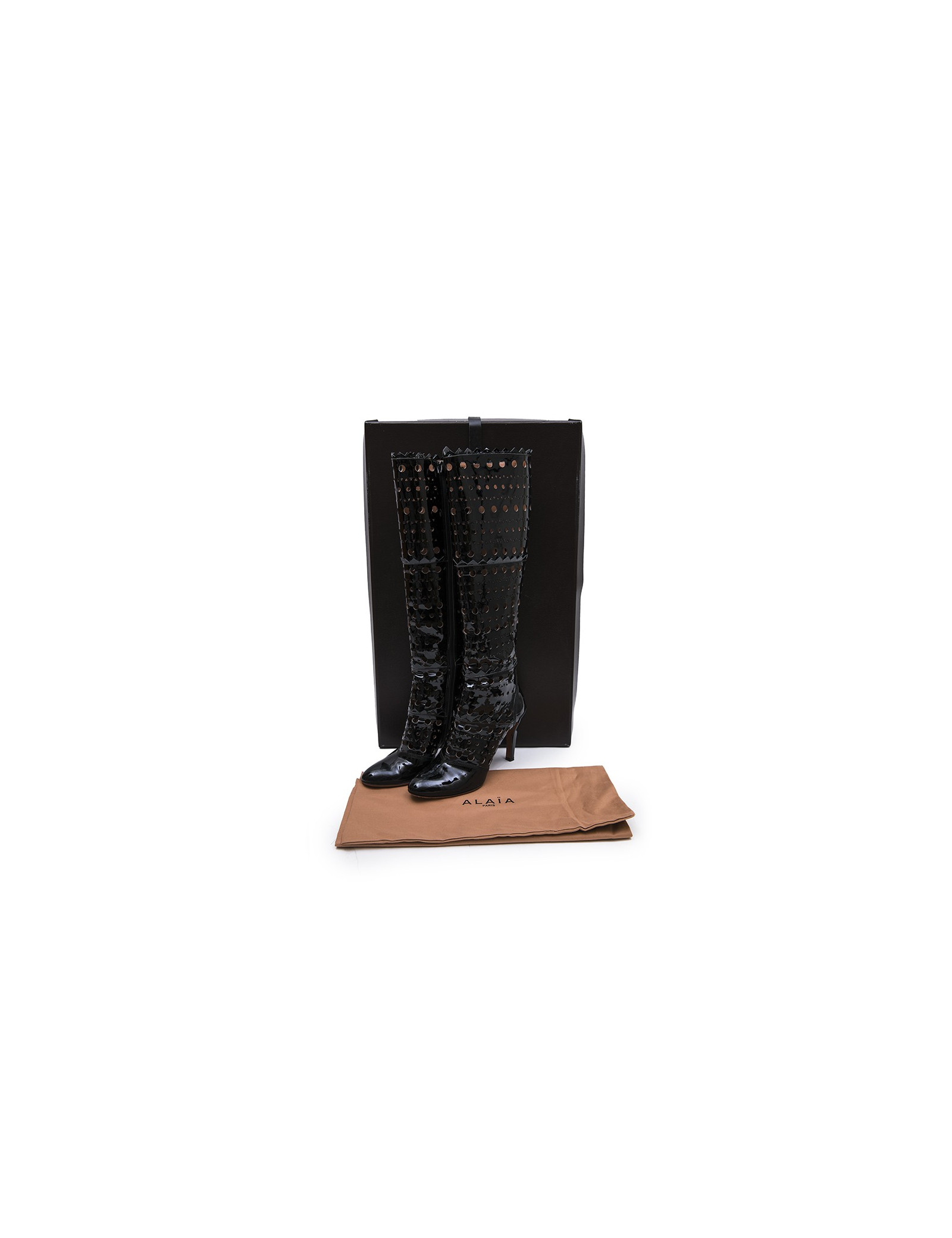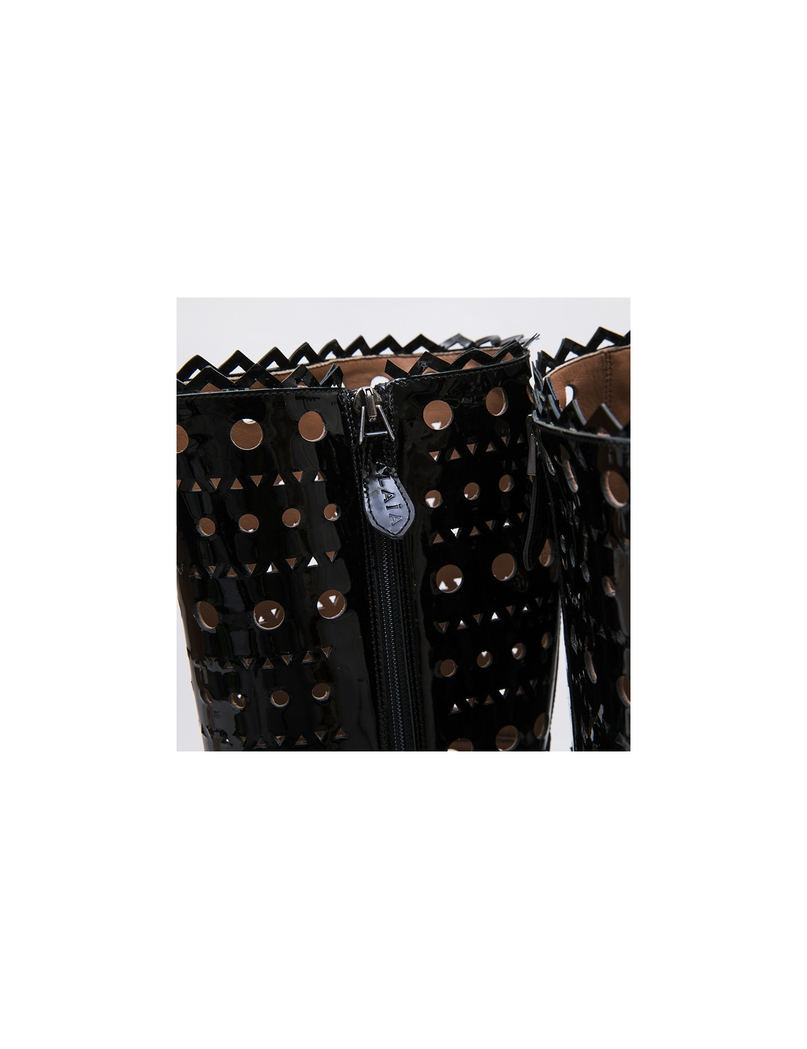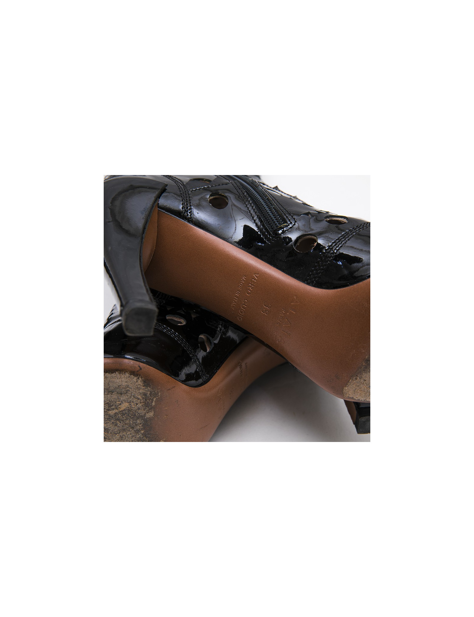 Alaïa boots in black patent perforated leather. Size 38. Zip closure inside the boot.