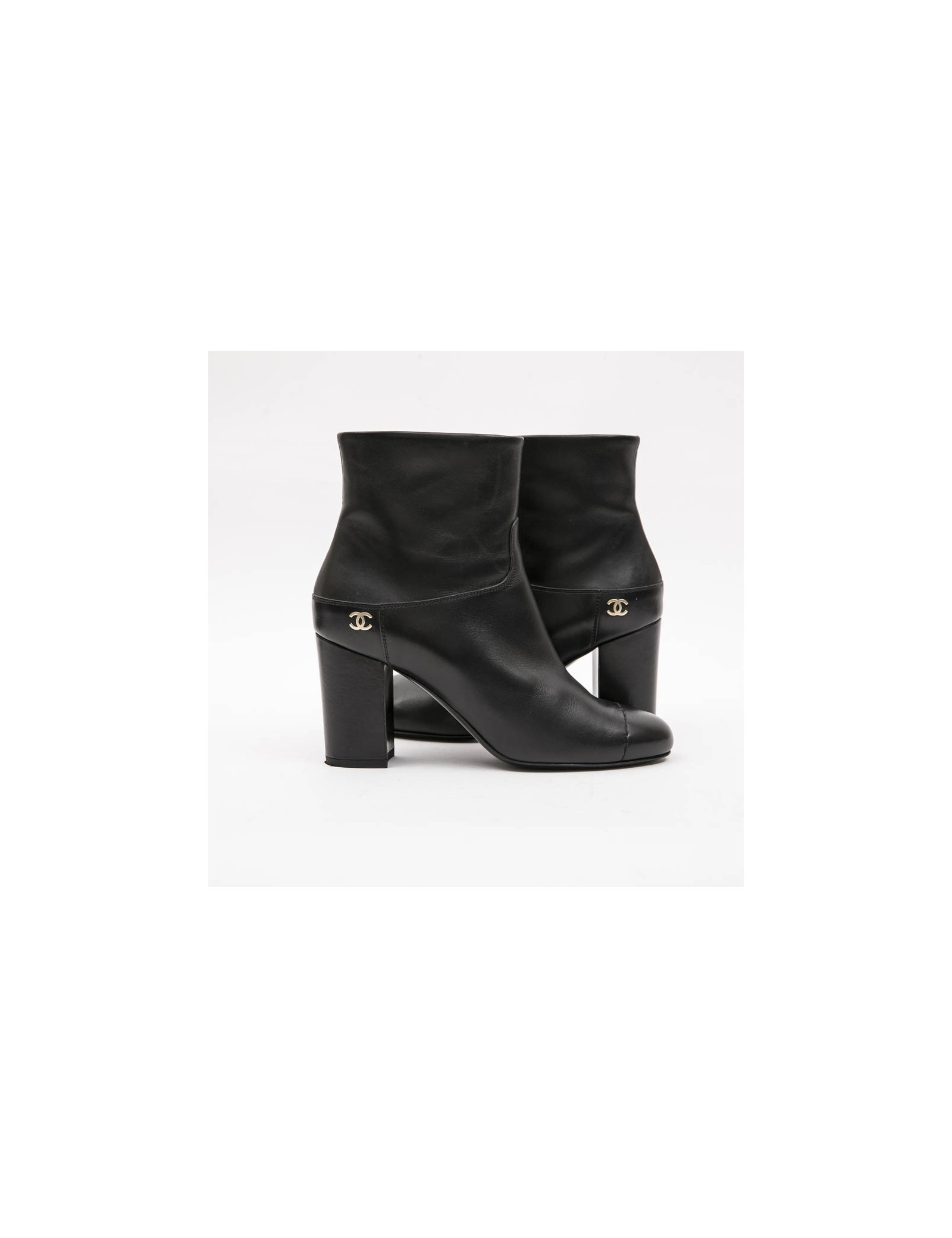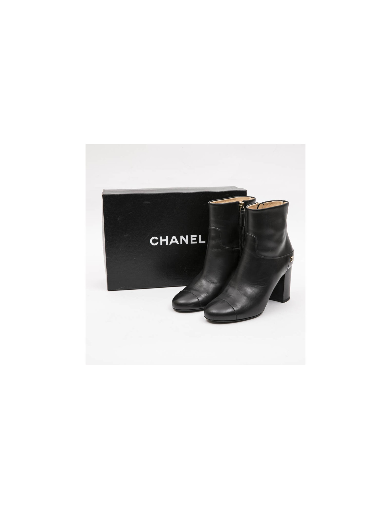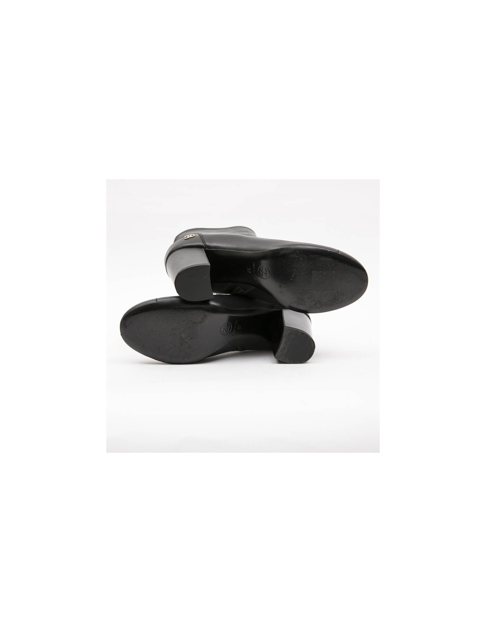 Chanel boots in black lamb leather. They are lined in beige leather.