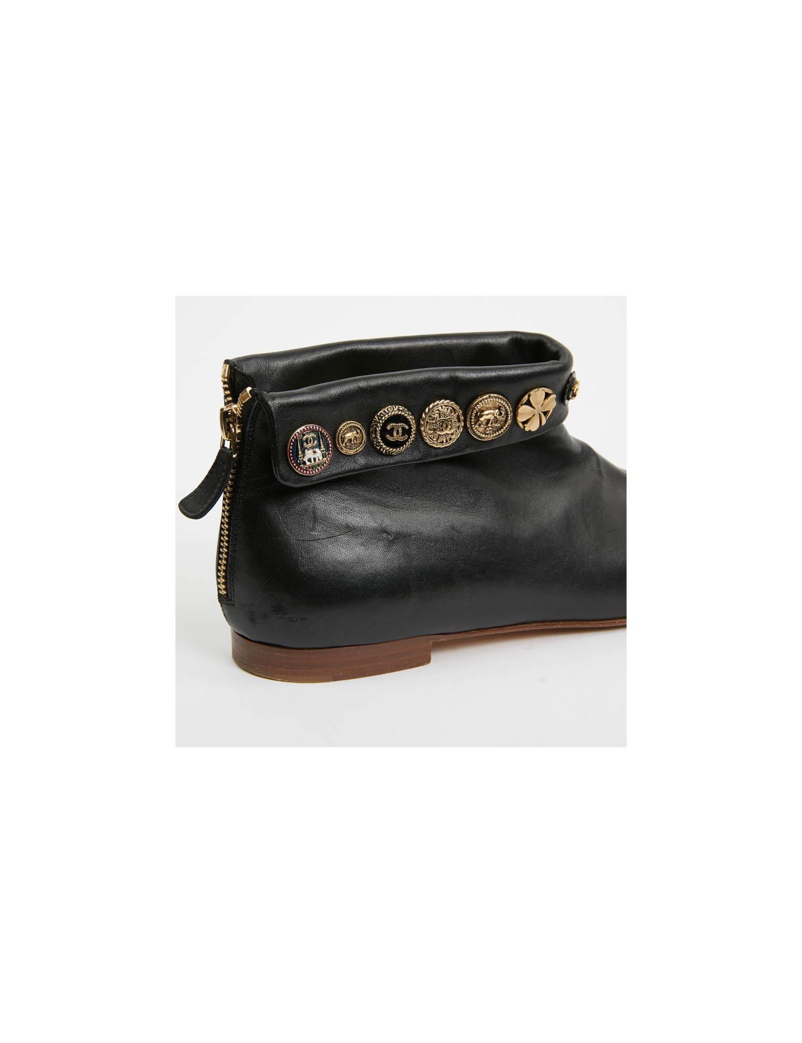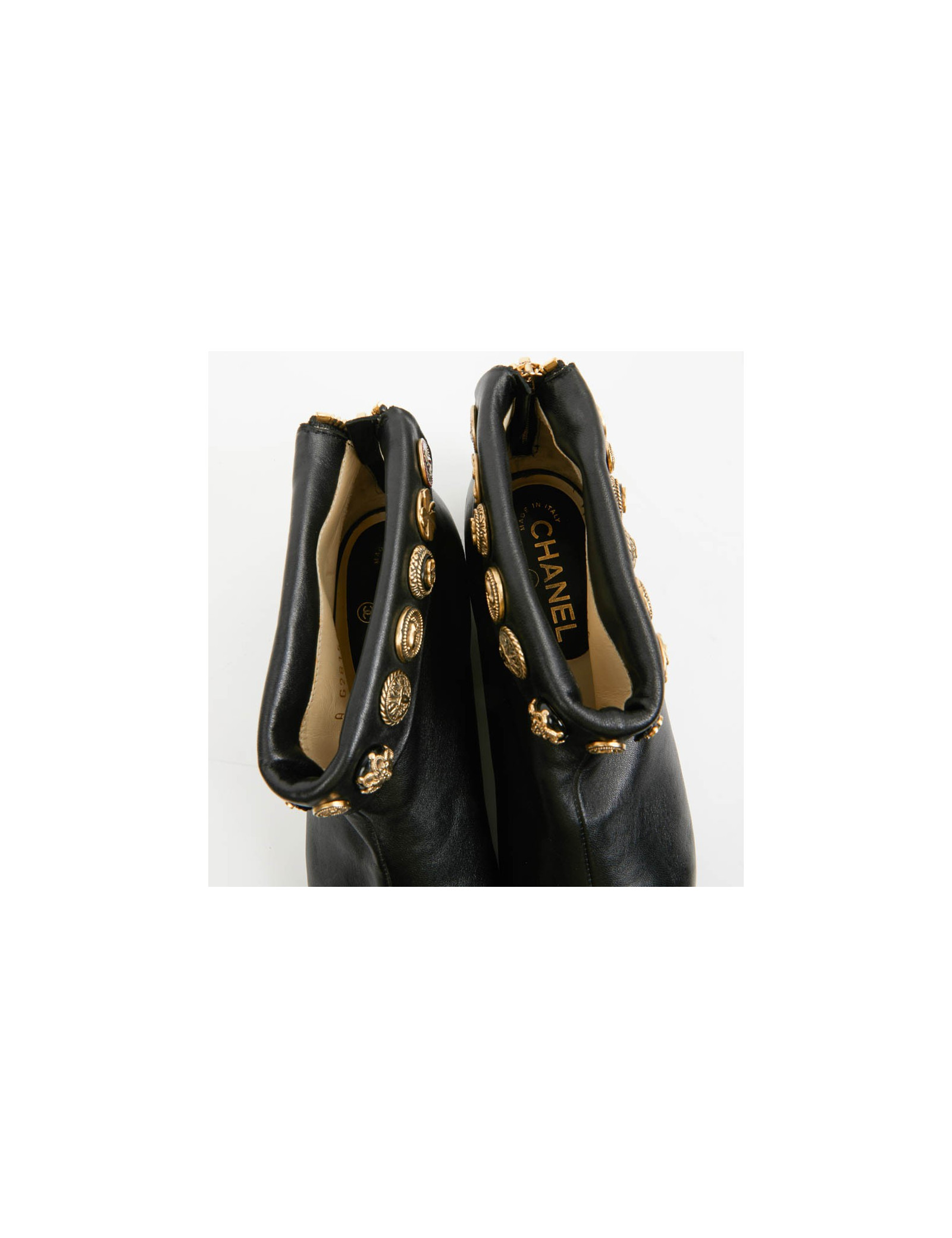 BOOTS CHANEL black patent leather mid-length boots size 36,5 CHANEL 16926 490.00 € CHANEL black patent leather mid-length boots size 36,5 Condition: goodModel: low bootsMaterials: patent leatherLining: turquoise blue leatherColor: blackMeasurements: heel 8.5 cm, outsole: 7 cm Details: Lovely Chanel mid-boots, size 36.5, in black patent leather. They are in good condition (despite a topy and at the instep crease the patent is cut), the... Add to cart