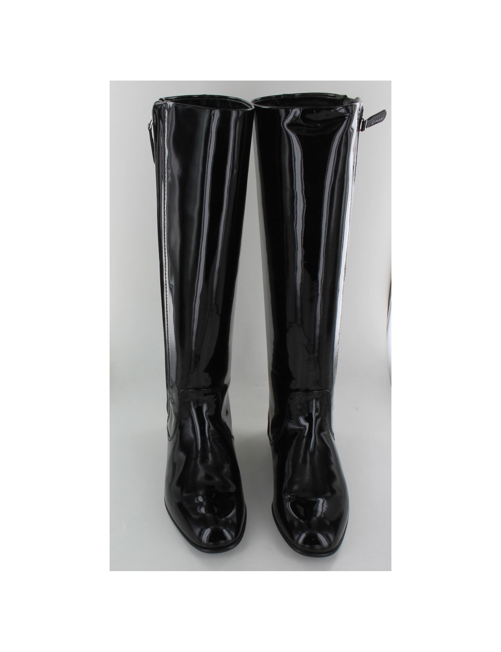 Elegant black varnished boots CHANEL, T36.