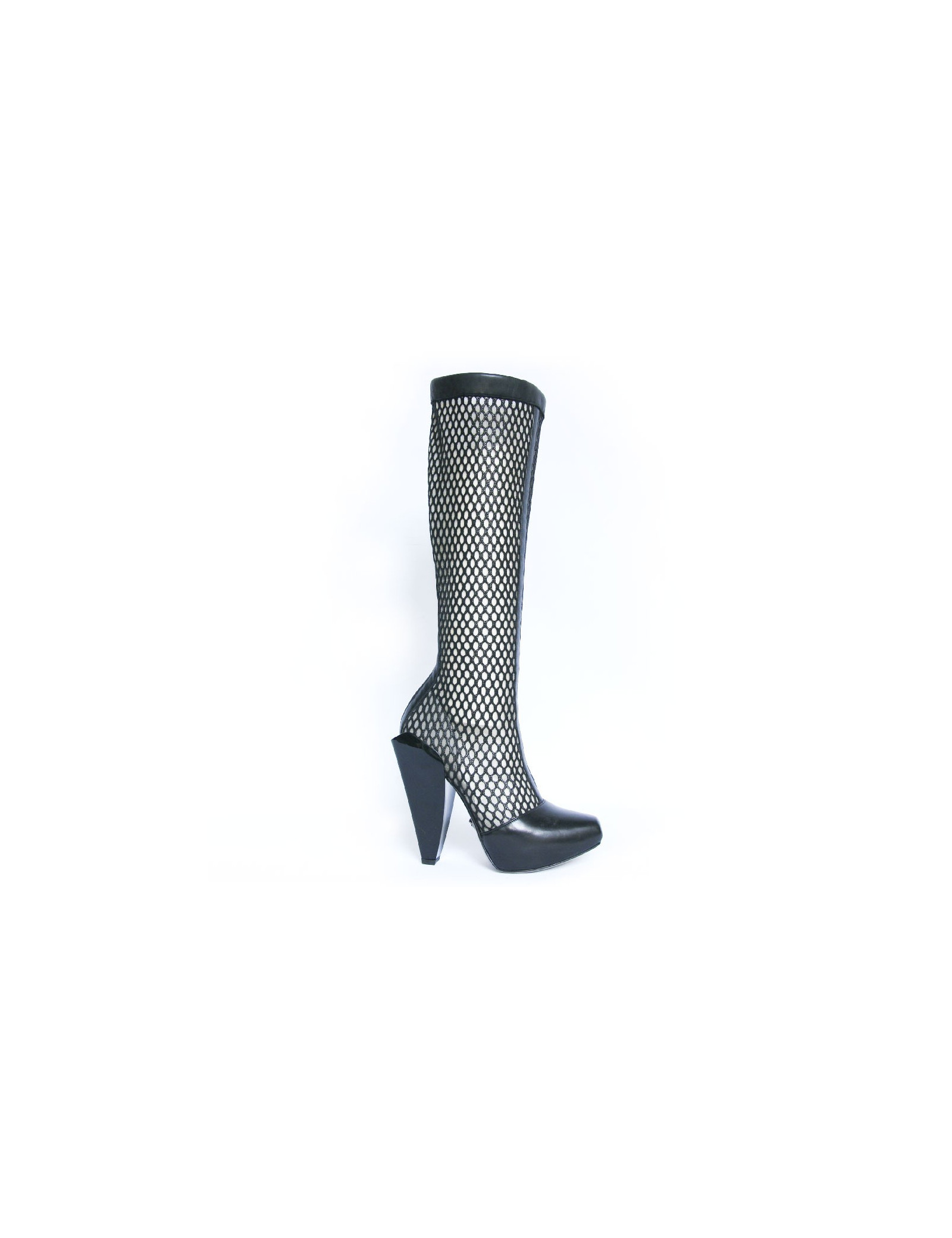Very trendy! Versace leather boots and lace plastic honeycomb size 38, in very good condition. They would not close a zipper leaving heel calf, in the back.
