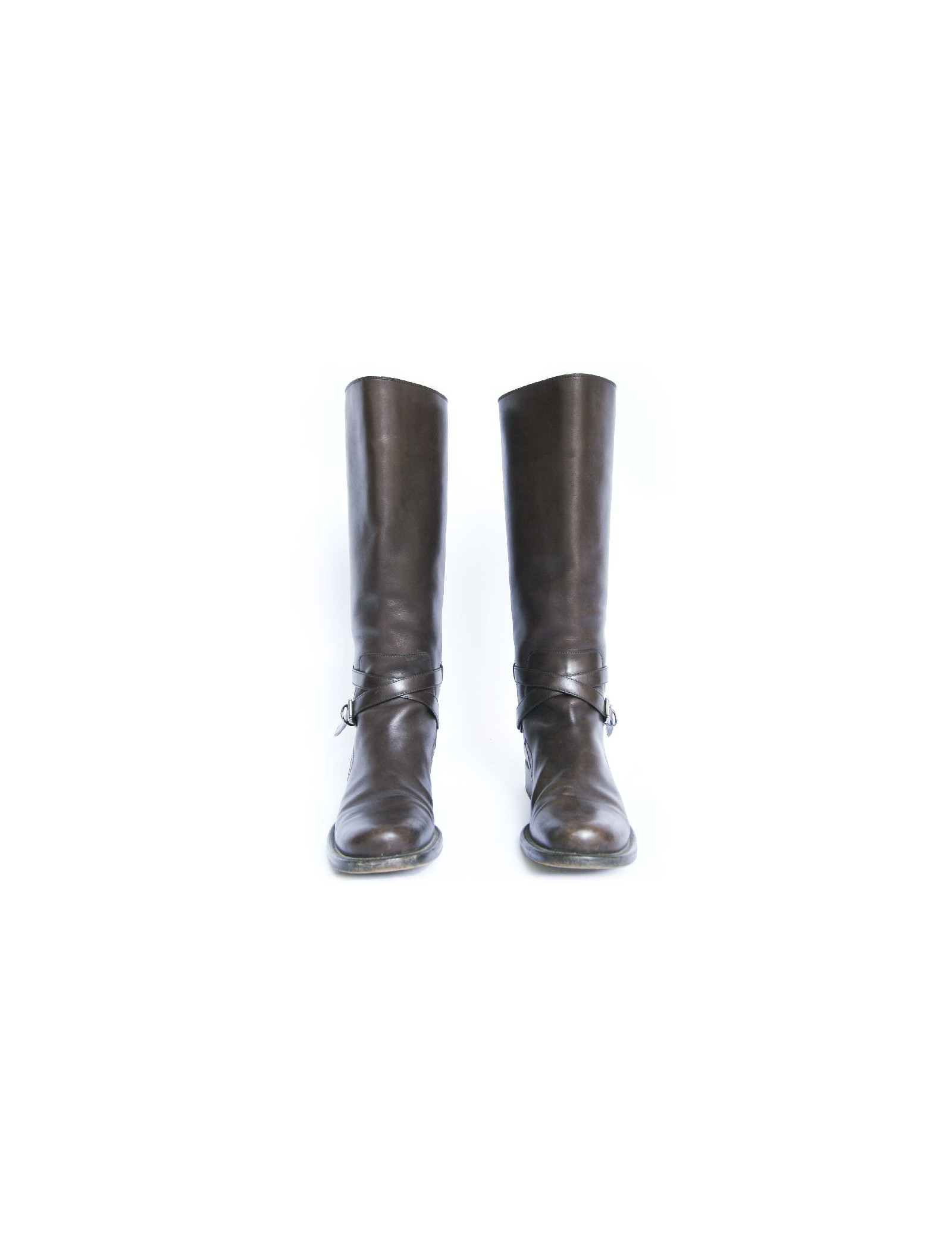Pair of Prada brown leather flat boots. Size 37.5. Very good condition. Very slight wear of the leather on the end of both boots as well as a few light scratches very little visible on boot.