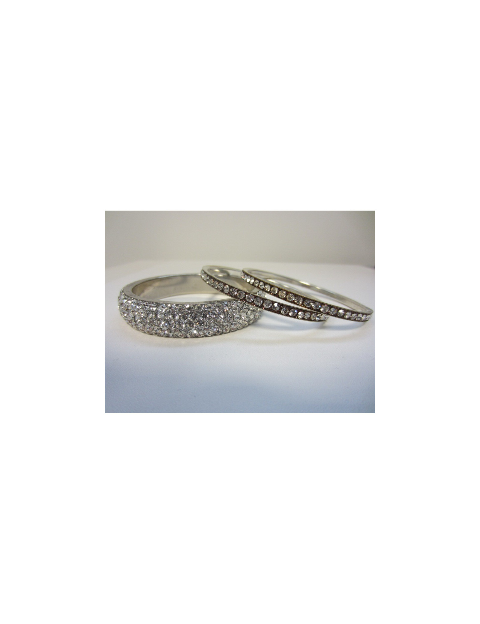 Details: Three lovely THALITE bangles/bracelets in white rhinestones and topaz sequins. The largest bracelet is made of white rhinestones. The other 2 bracelets are made of round rhinestones.