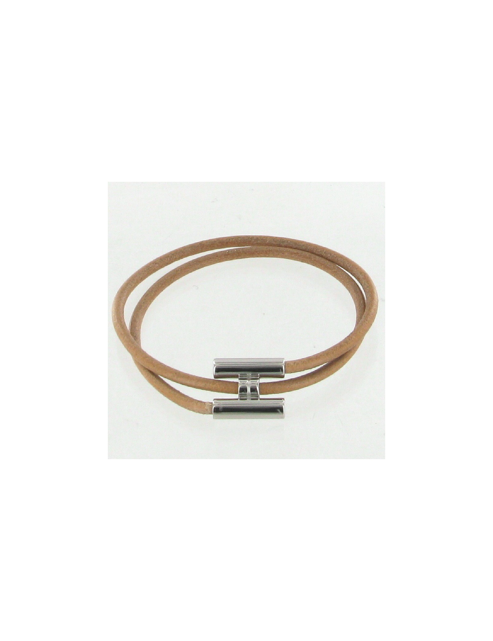Pretty dizzy HERMES bracelet. The link is beige leather, H is in silver ring.