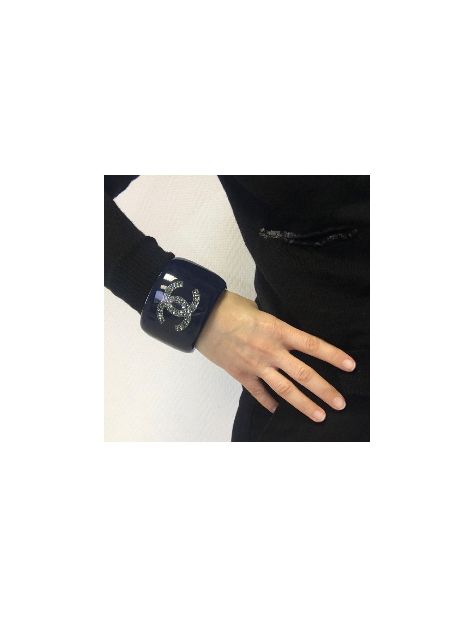 CHANEL cuff bracelet in blue lacquered resin and inclusion of rhinestones
