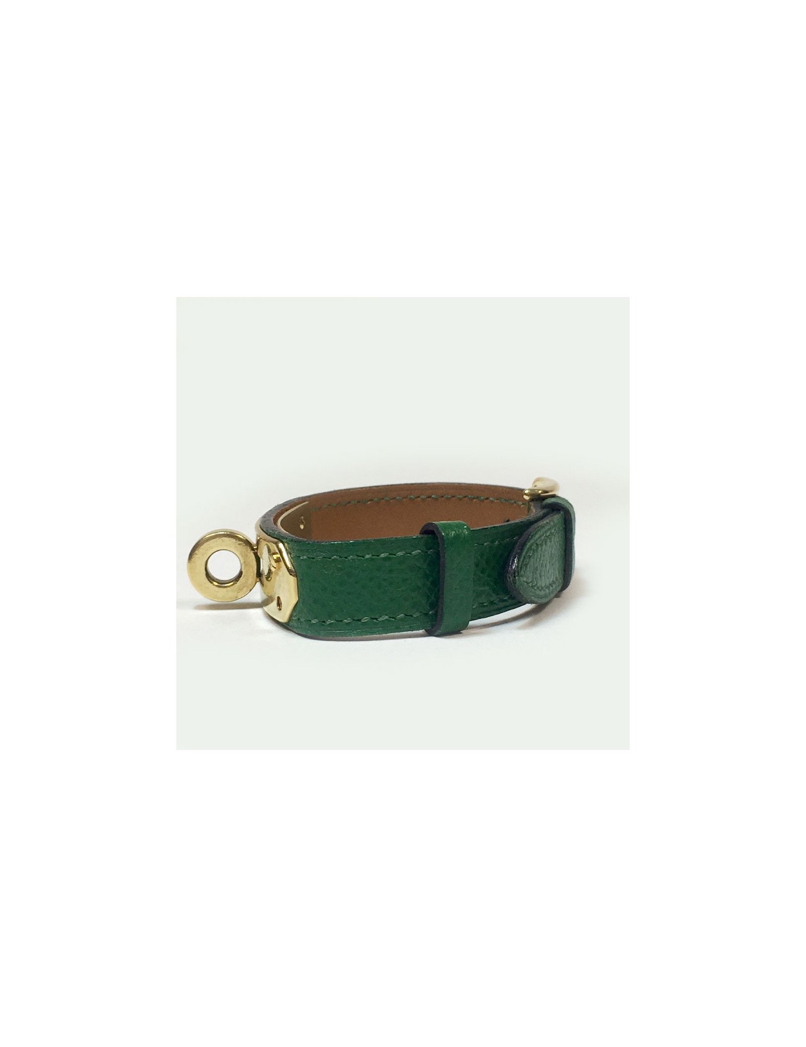 -151.00 € Last items in stock BRACELETS HERMES CDC cuff bracelet in blood color tadelakt calfskin HERMES 21231 699.00 € 850.00 € Hermès Médor cuff bracelet in blood color tadelakt calfskin. Palladium silver hardware. New condition. Stamp R in a square, year 2014. Stamp S from private sales. Made in France. Protection is still on the hardware. Dimensions: width 4 cm, total length 22 cm, clasp at the first hole 16 cm, middle 18 cm, last hole 19 cm. Will be delivered in a new,... Add to cart