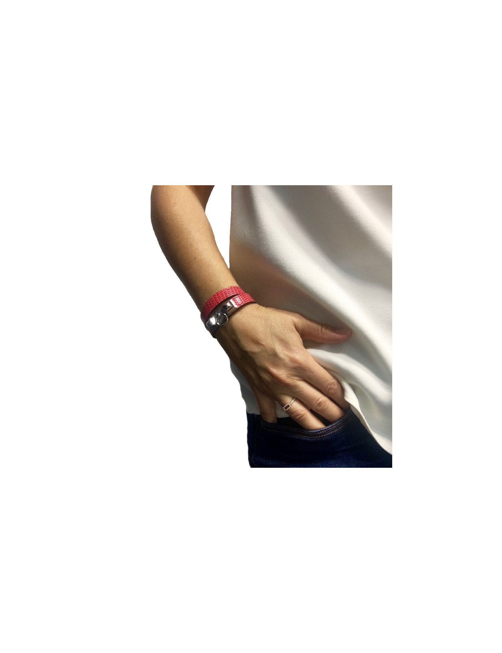 Last items in stock BRACELETS Unbranded leather and 18 k gold bracelet AUTRES MARQUES 16575 880.00 € Unbranded leather and 18 k gold bracelet Condition: good (the gold parts have patina)Matrials: leather, 18 carats goldColors: brown, goldMeasurements: length: 16cm, height: 1cmDetails: Lovely rigid bracelet in aged brown leather with beige saddle stitching. The corners are in solid 18-carat gold, set with 2 aged coins, in the spirit of Bulgari jewelry. It... Add to cart